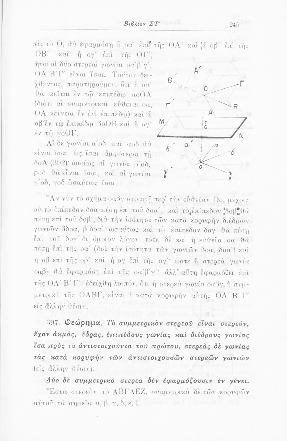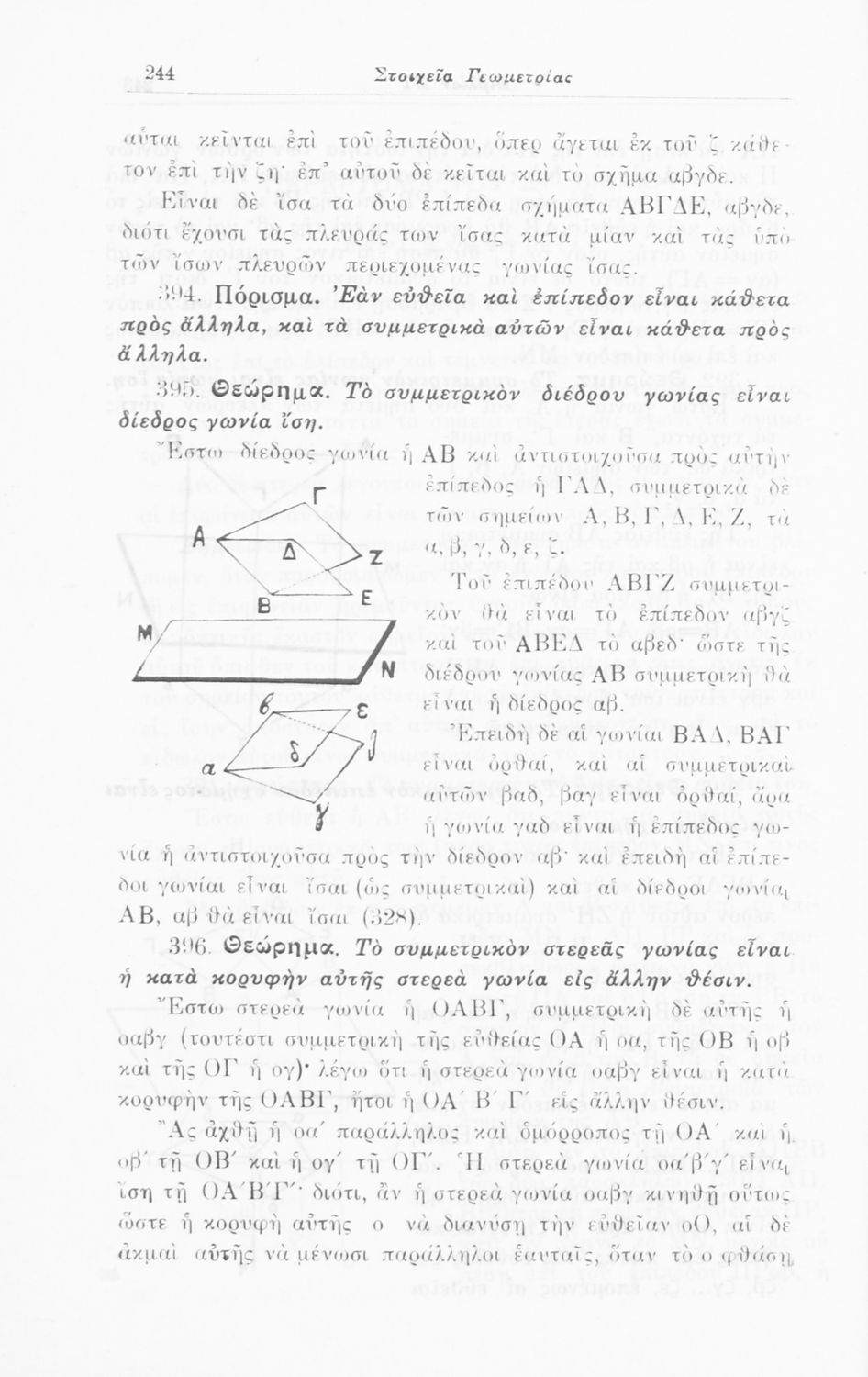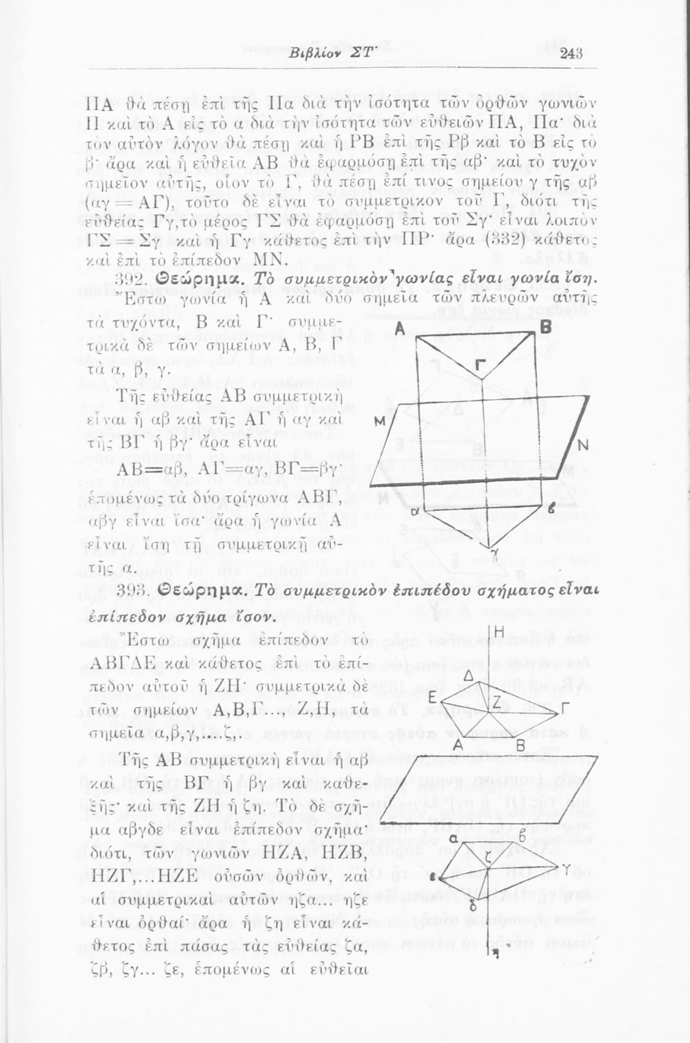 Σχολικό εγχειρίδιο Γεωμετρίας Γυμνασίου χωρισμένο σε ορισμούς, θεωρήματα, πορίσματα και ασκήσεις που εστιάζει στην Επιπεδομετρία και τη Στερεομετρία. Διαθέτει και παράρτημα εφαρμογής της Άλγεβρας στη Γεωμετρία.