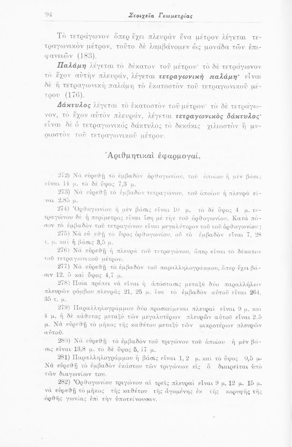Σχολικό εγχειρίδιο Γεωμετρίας για τα Γυμνάσια και τα Λύκεια που είναι χωρισμένο σε Επιπεδομετρία και Στερεομετρία. Περιλαμβάνει θεωρήματα, πορίσματα και ασκήσεις. Περιέχει στοιχεία Αναλυτικής Γεωμετρίας και ...