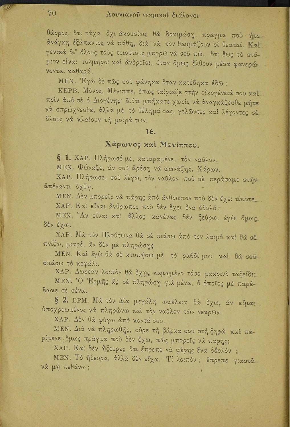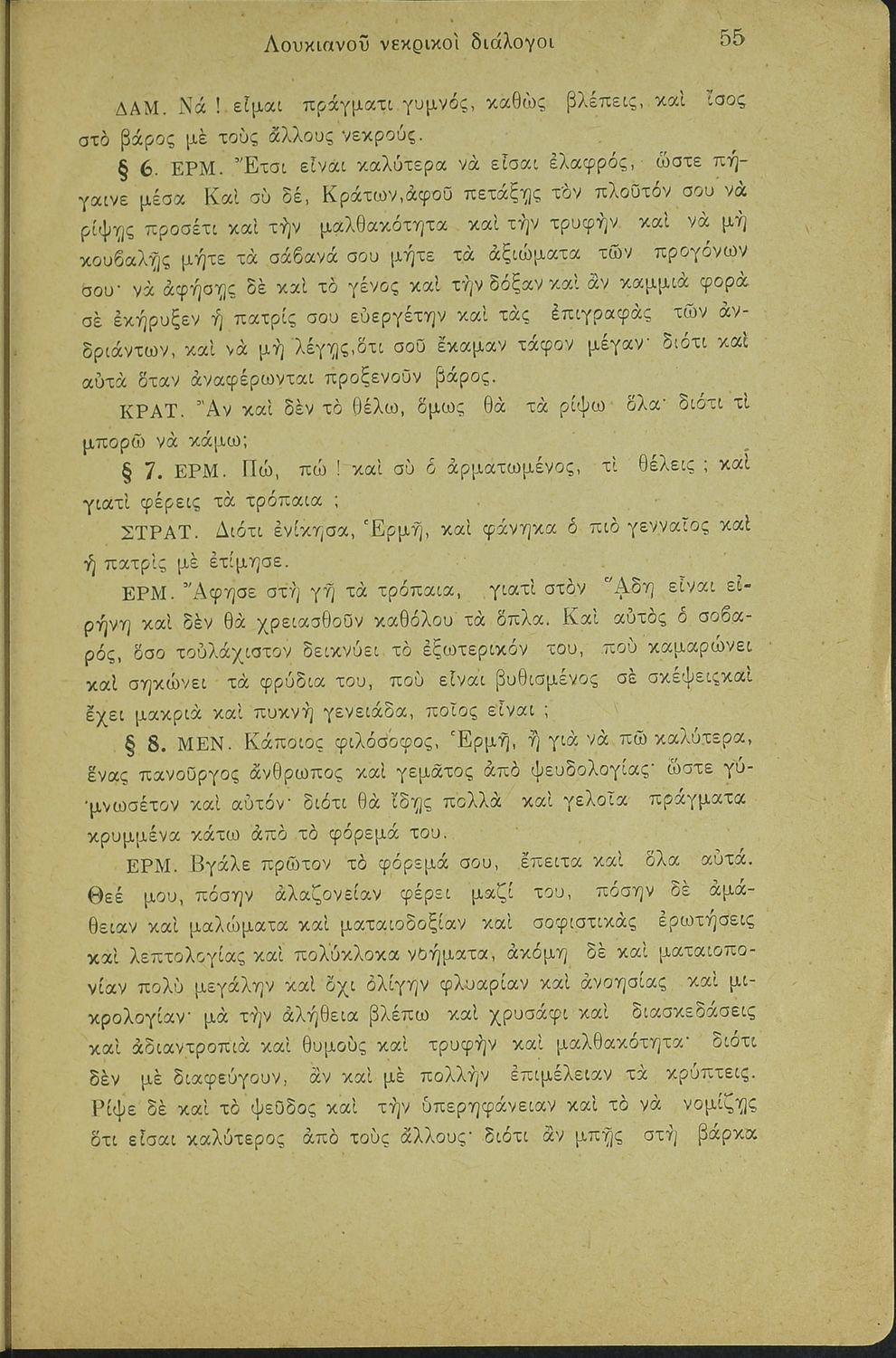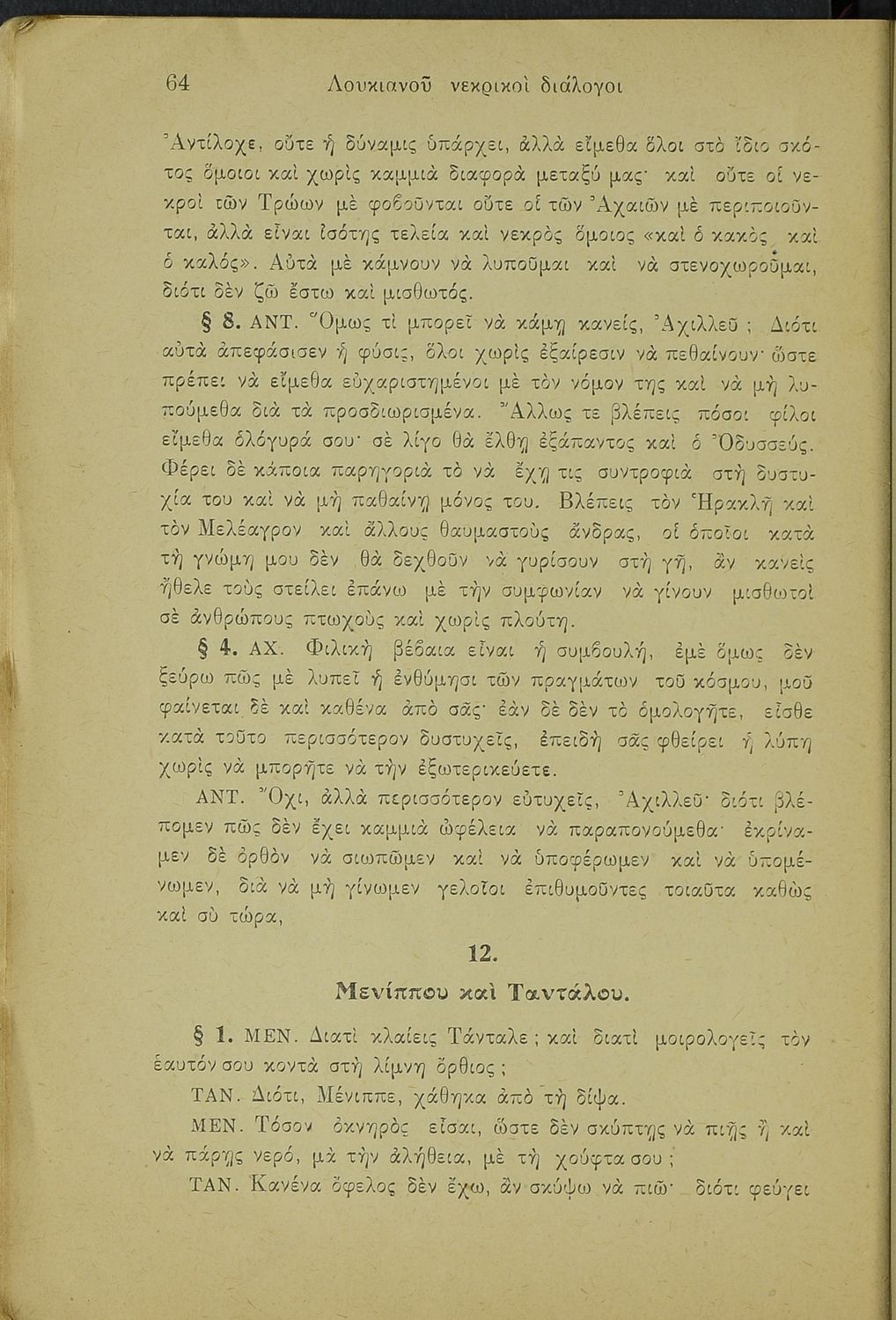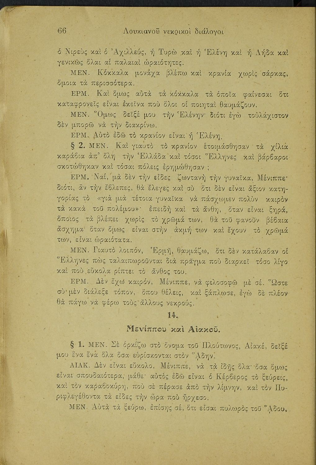 Μαθητικό βοήθημα Αρχαίων Ελληνικών για τα Αστικά Σχολεία και Παρθεναγωγεία που περιέχει μετάφραση αποσπασμάτων από το έργο του Αρριανού Αλέξανδρου Ανάβασις και του Λουκιανού Νεκρικοί Διάλογοι, ερμηνευτικά και πραγματολογικά σχόλια.