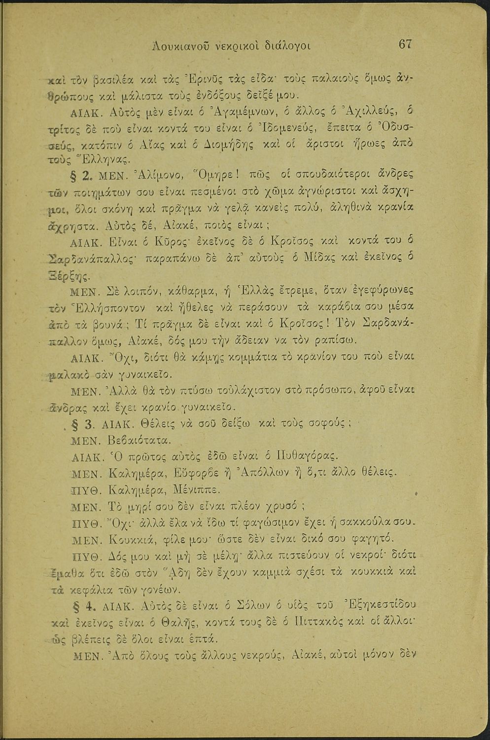 Μαθητικό βοήθημα Αρχαίων Ελληνικών για τα Αστικά Σχολεία και Παρθεναγωγεία που περιέχει μετάφραση αποσπασμάτων από το έργο του Αρριανού Αλέξανδρου Ανάβασις και του Λουκιανού Νεκρικοί Διάλογοι, ερμηνευτικά και ...