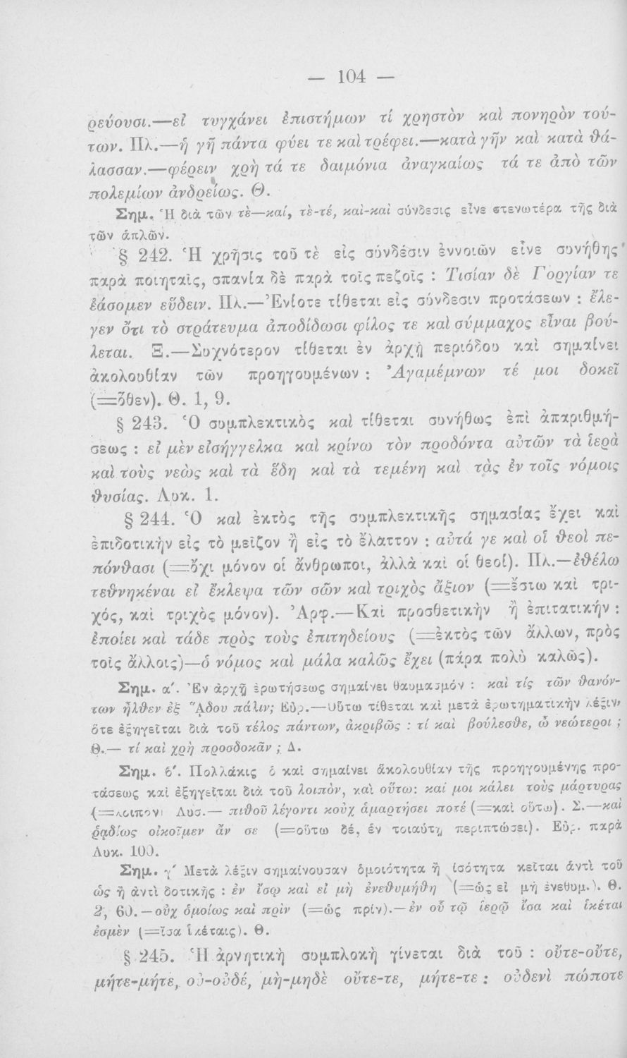Σχολικό εγχειρίδιο Αρχαίων Ελληνικών για τα Ελληνικά Σχολεία, Παρθεναγωγεία και Γυμνάσια που περιέχει τους κανόνες γραμματικής και είναι χωρισμένο σε φθογγολογικό, τυπολογικό και ετυμολογικό μέρος.