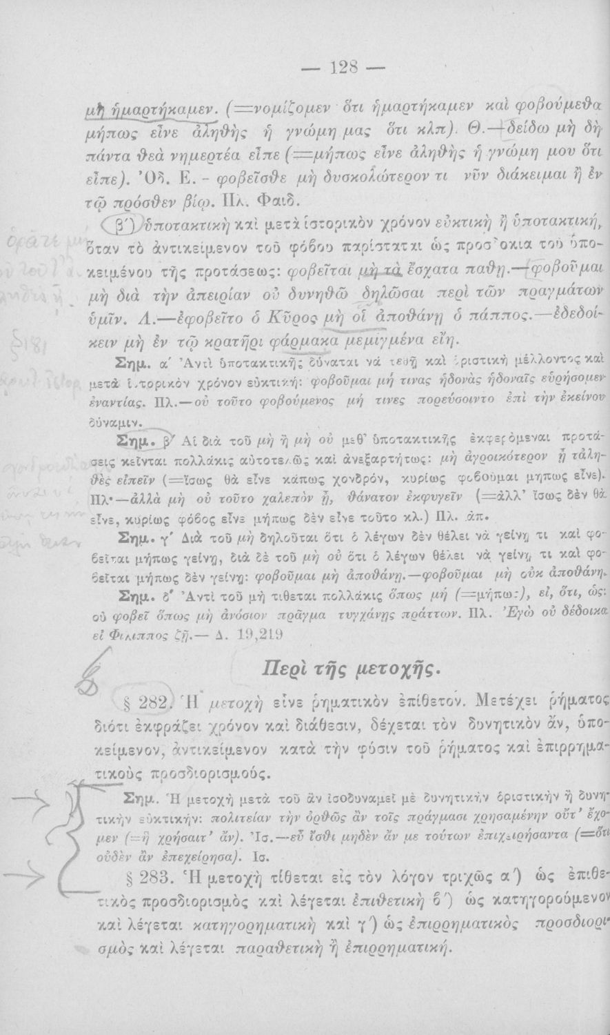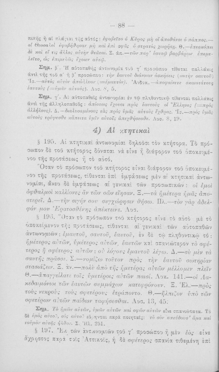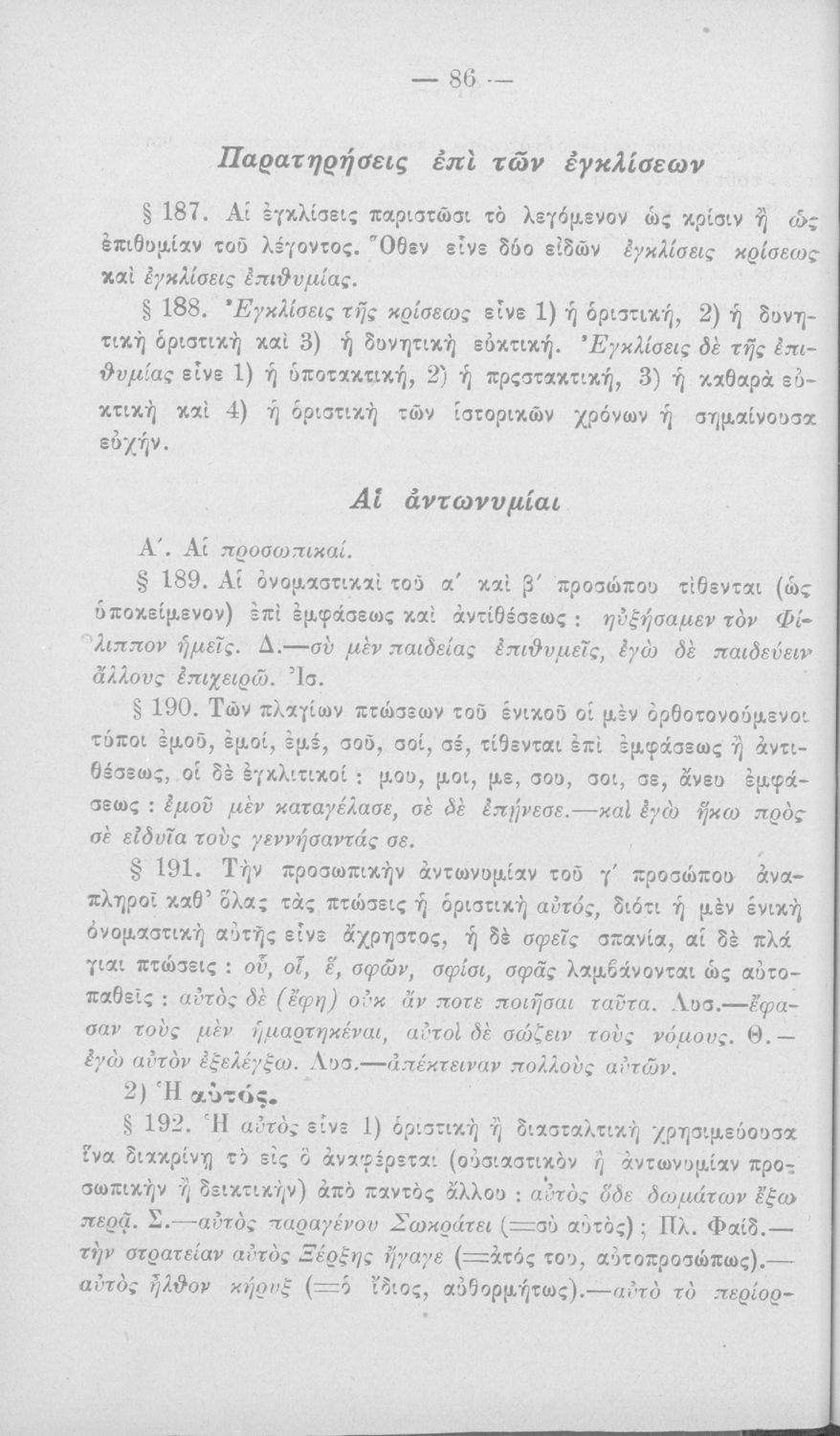Σχολικό εγχειρίδιο Αρχαίων Ελληνικών για τα Ελληνικά Σχολεία, Παρθεναγωγεία και Γυμνάσια που περιέχει τους κανόνες γραμματικής και είναι χωρισμένο σε φθογγολογικό, τυπολογικό και ετυμολογικό μέρος.