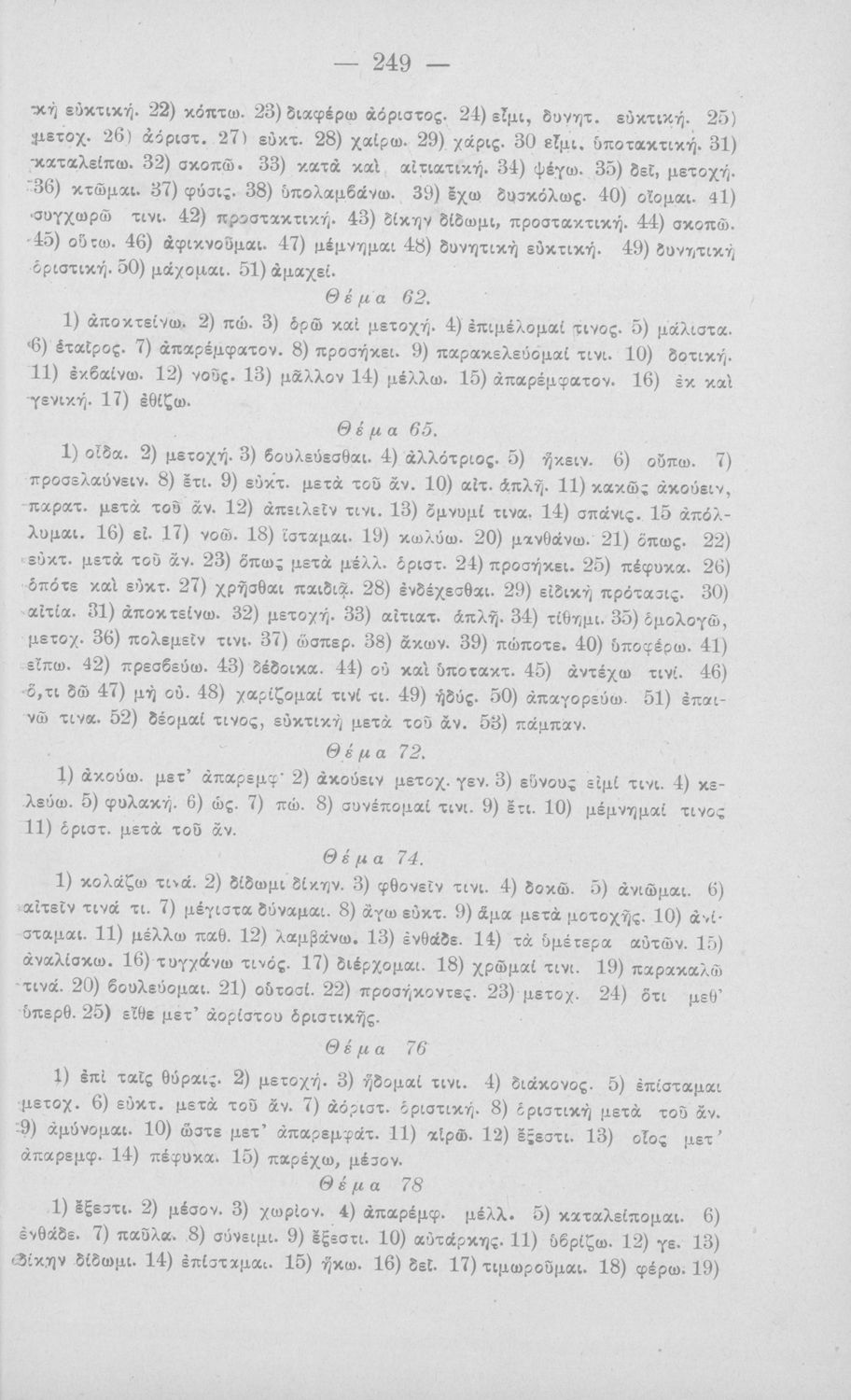 Μαθητικό βοήθημα Αρχαίων Ελληνικών για τα Ελληνικά Σχολεία, Παρθεναγωγεία και Γυμνάσια που περιλαμβάνει γραμματική της αρχαίας ελληνικής και κατάλογο ανωμάλων ρημάτων.