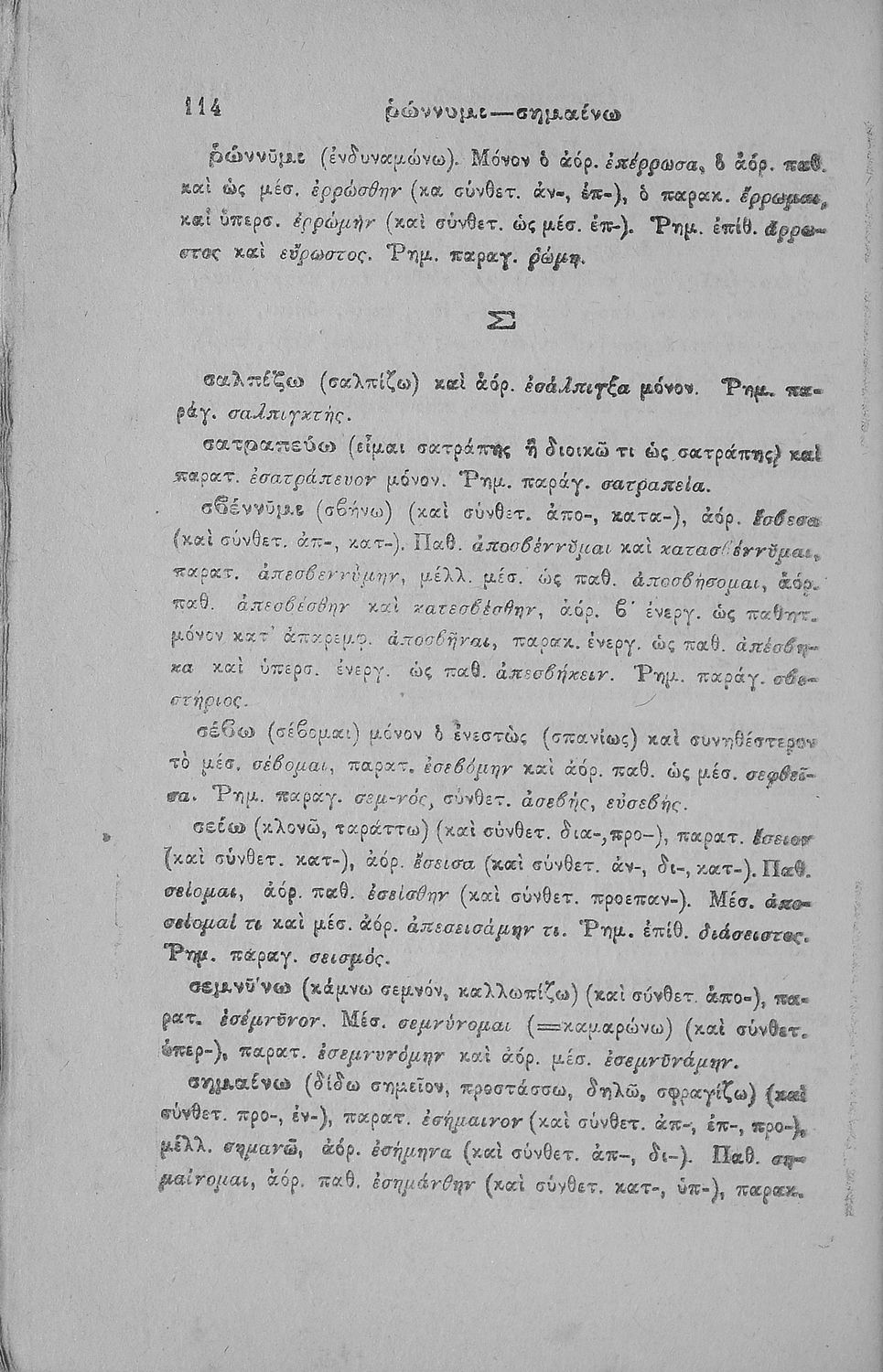 Μαθητικό βοήθημα Αρχαίων Ελληνικών Ελληνικού Σχολείου και Παρθεναγωγείου που περιέχει κατάλογο των ανώμαλων ρημάτων και ονομάτων της αρχαίας ελληνικής γραμματείας και ετυμολογικές, γραμματικές και σημασιολογικές παρατηρήσεις..