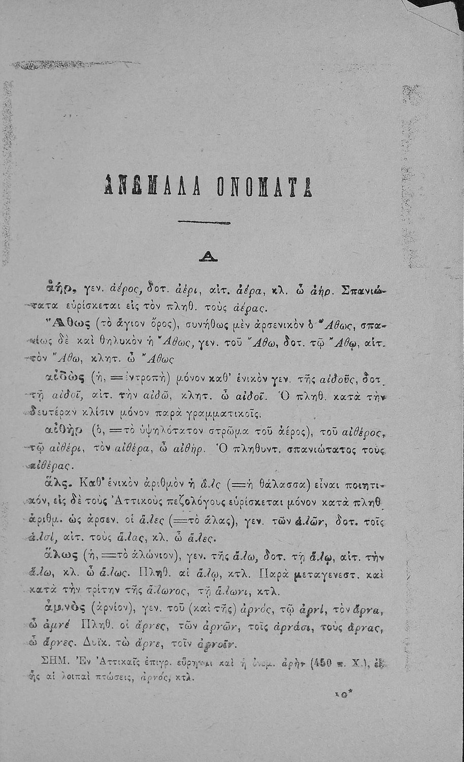 Μαθητικό βοήθημα Αρχαίων Ελληνικών Ελληνικού Σχολείου και Παρθεναγωγείου που περιέχει κατάλογο των ανώμαλων ρημάτων και ονομάτων της αρχαίας ελληνικής γραμματείας και ετυμολογικές, γραμματικές και σημασιολογικές παρατηρήσεις..