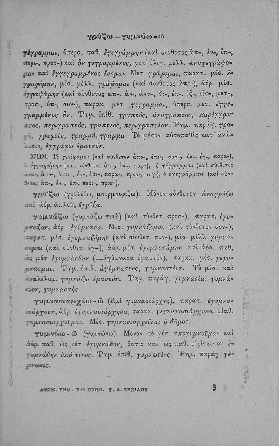 Μαθητικό βοήθημα Αρχαίων Ελληνικών για τις Α΄, Β΄, Γ' Ελληνικού Σχολείου και Παρθεναγωγείου για το μάθημα των Αρχαίων που περιλαμβάνει λεξικό ανωμάλων ρημάτων και γραμματικές σημειώσεις