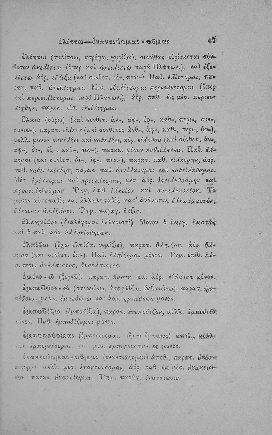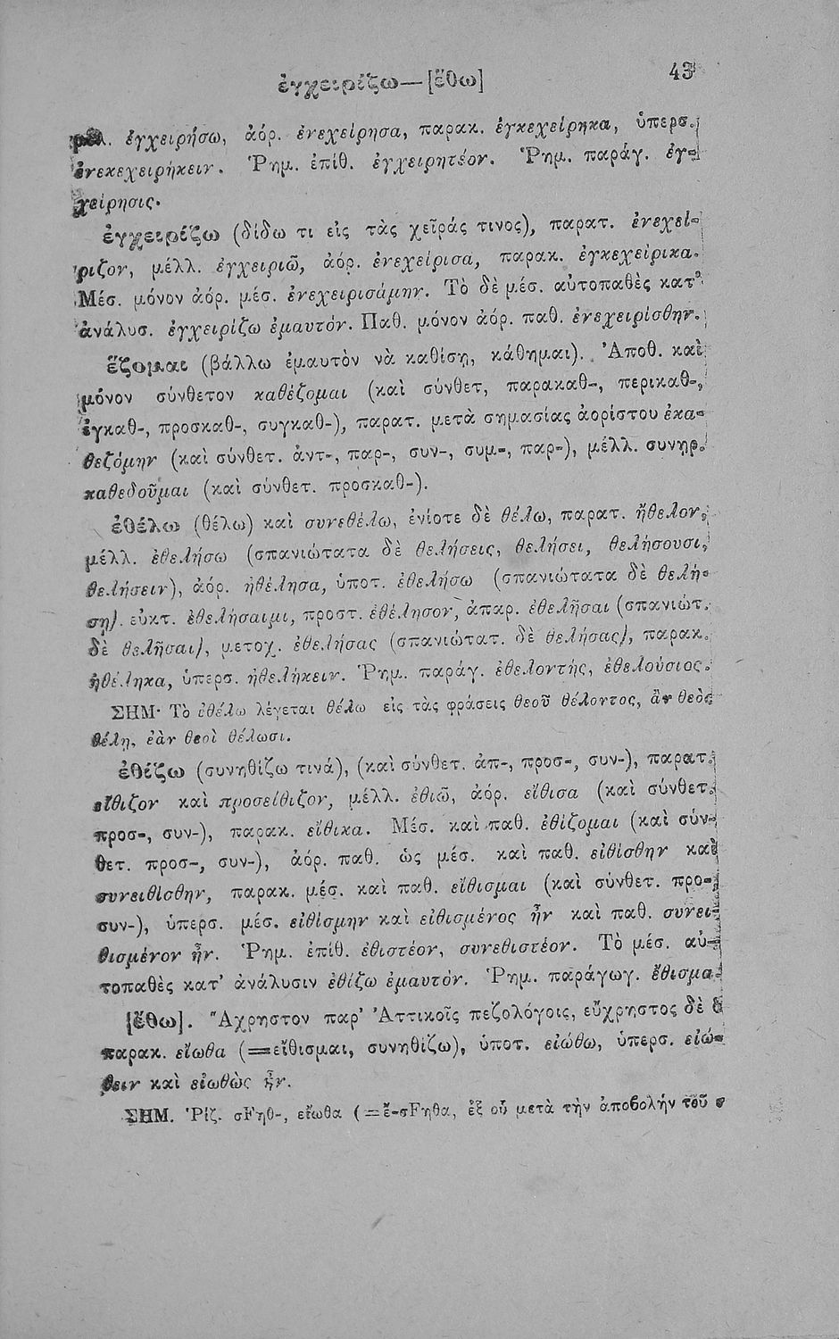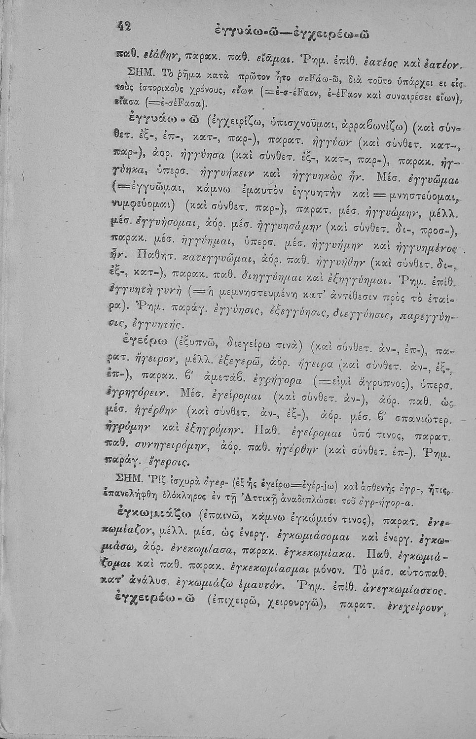 Παρουσίαση περιεχομένου: Μαθητικό βοήθημα Αρχαίων Ελληνικών Ελληνικού Σχολείου και Παρθεναγωγείου που περιέχει κατάλογο των ανώμαλων ρημάτων και ονομάτων της αρχαίας ελληνικής γραμματείας και ετυμολογικές, γραμματικές και σημασιολογικές παρατηρήσεις..