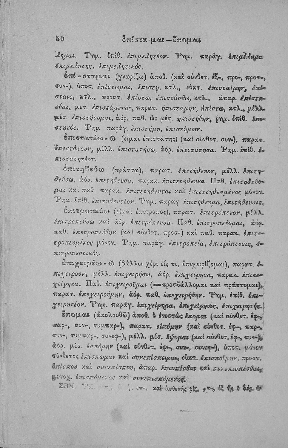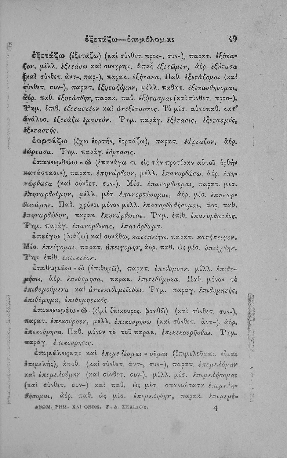 Μαθητικό βοήθημα Αρχαίων Ελληνικών Ελληνικού Σχολείου και Παρθεναγωγείου που περιέχει κατάλογο των ανώμαλων ρημάτων και ονομάτων της αρχαίας ελληνικής γραμματείας και ετυμολογικές, γραμματικές και σημασιολογικές παρατηρήσεις..
