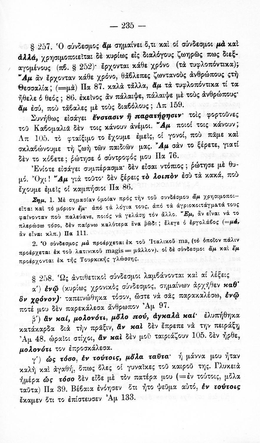 Σχολικό εγχειρίδιο Αρχαίων Ελληνικών για τους μαθητές των Ελληνικών Σχολείων και Παρθεναγωγείων που περιέχει τους συντακτικούς κανόνες.