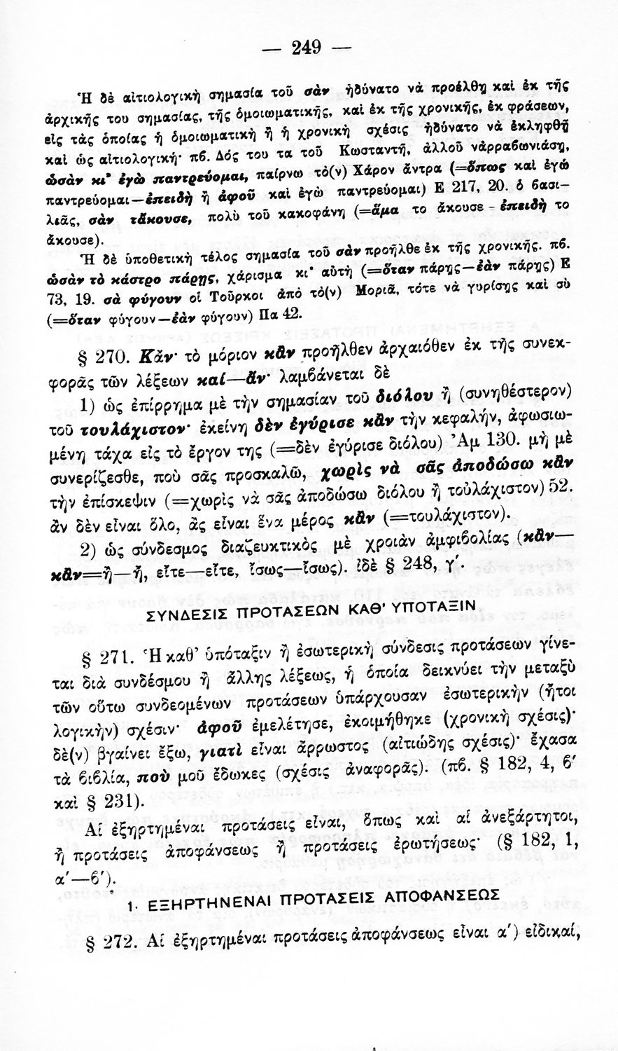 Σχολικό εγχειρίδιο Αρχαίων Ελληνικών για τους μαθητές των Ελληνικών Σχολείων και Παρθεναγωγείων που περιέχει τους συντακτικούς κανόνες.