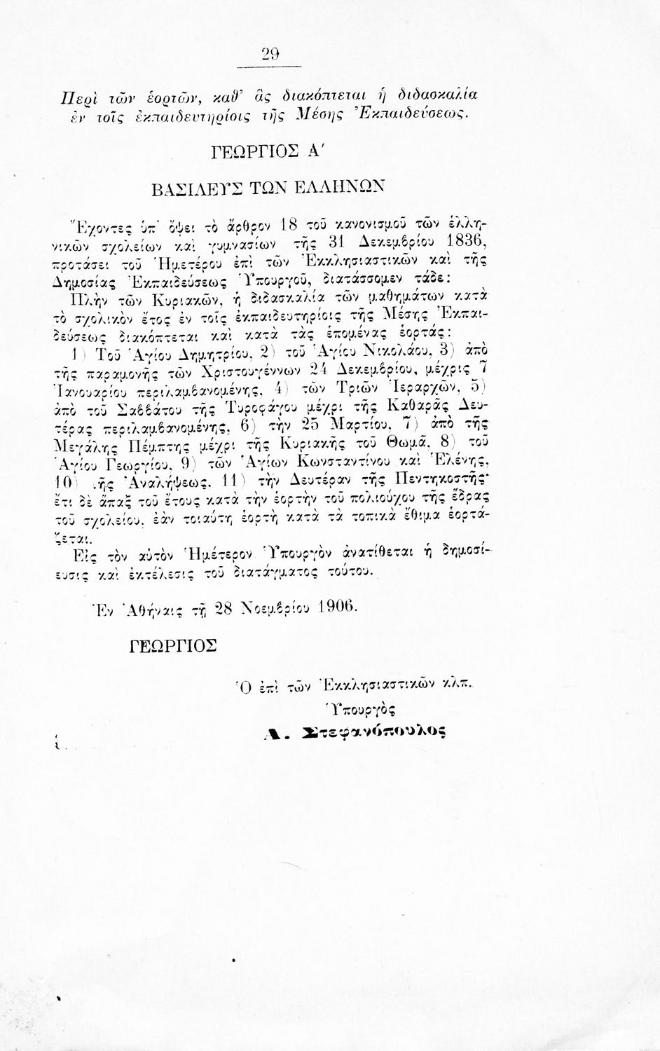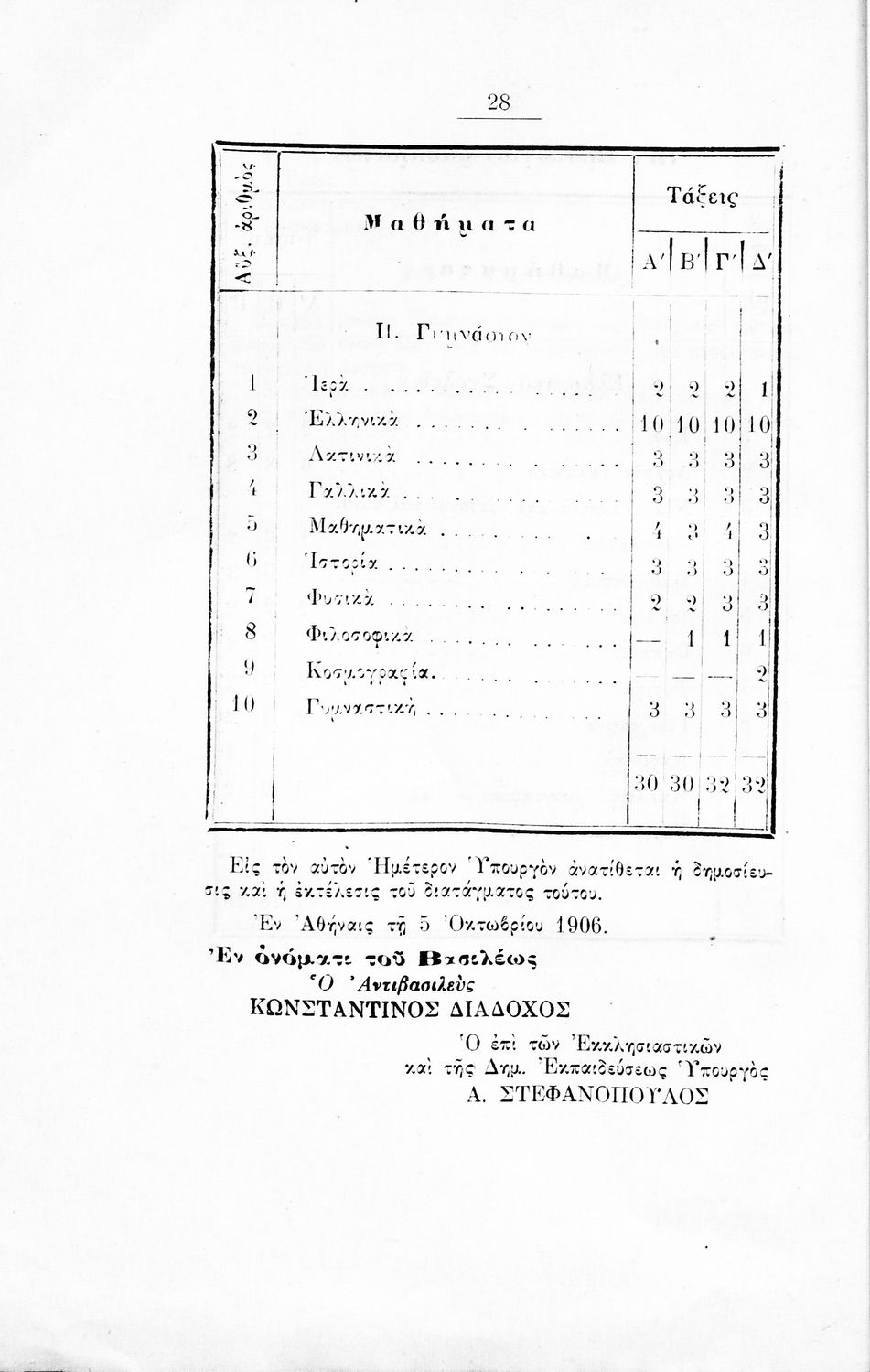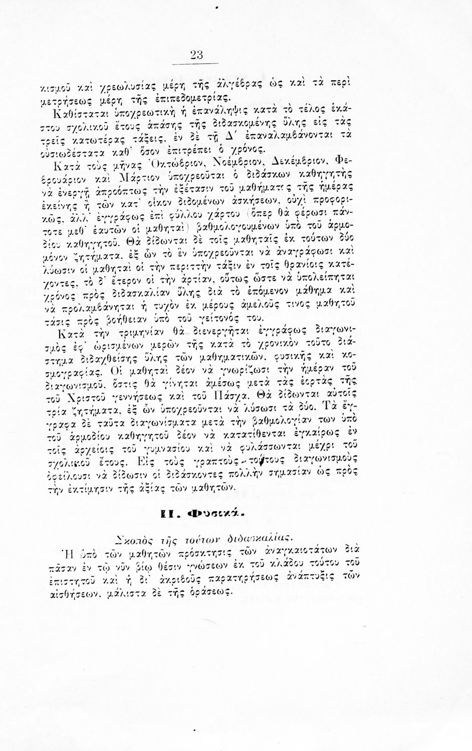 Αναλυτικό πρόγραμμα που εκδόθηκε με εντολή του Υπουργείου των Εκκλησιαστικών και της Δημόσιας Εκπαιδεύσεως από το τμήμα Δ΄, Μέσης Εκπαίδευσης, Γυμναστικής και Σκοποβολής. Στο εξώφυλλο υπάρχει το βασιλικό σήμα.