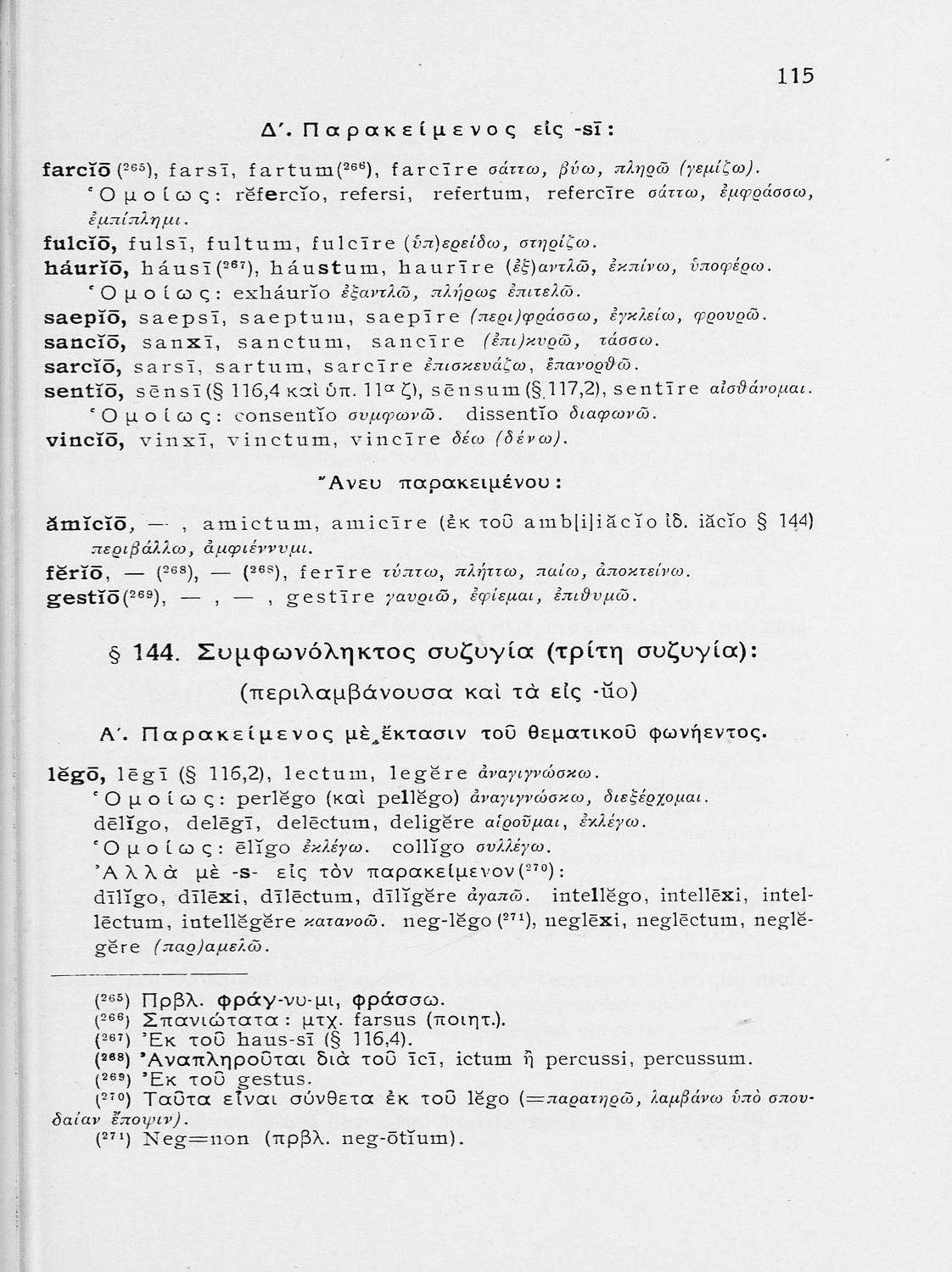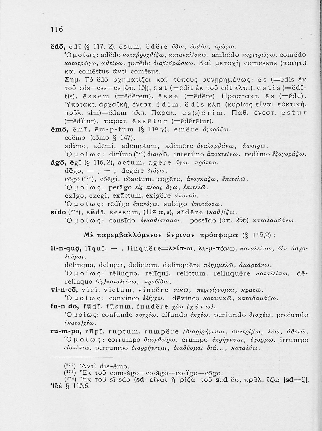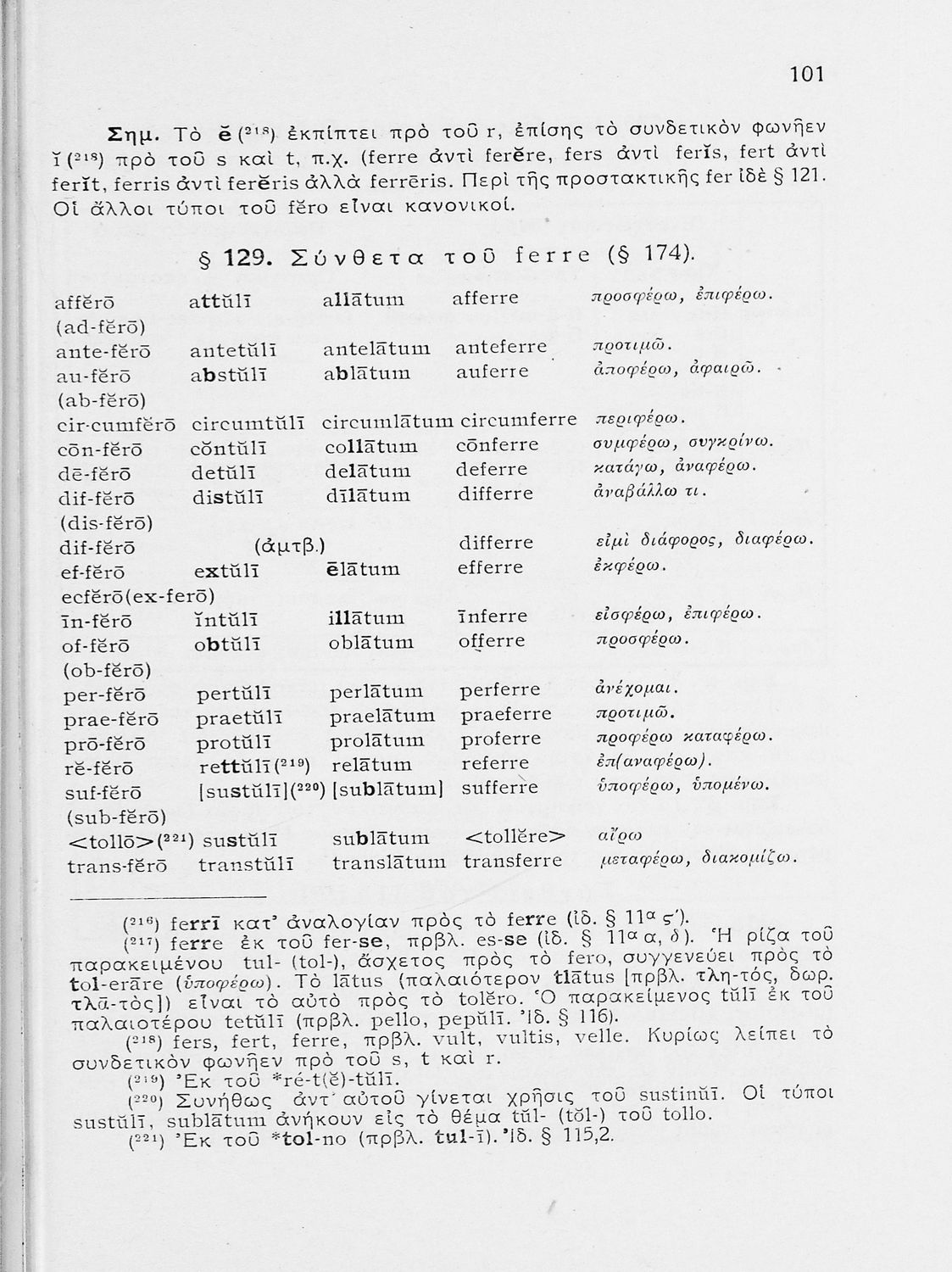 Σχολικό εγχειρίδιο Λατινικών Γυμνασίου που περιλαμβάνει γραμματική και συντακτικό και είναι χωρισμένο σε φθογγολογικό, τυπολογικό και ετυμολογικό μέρος.