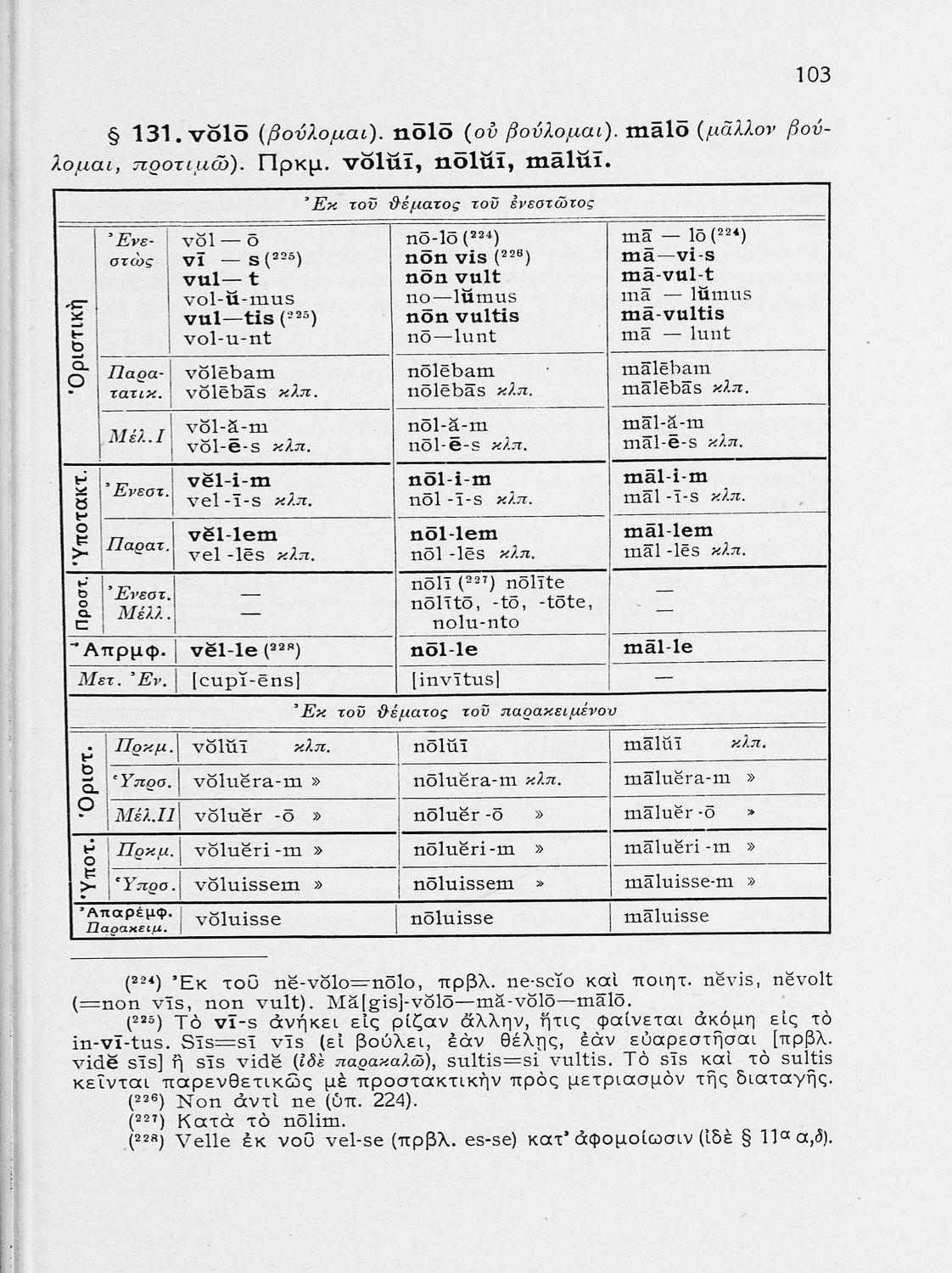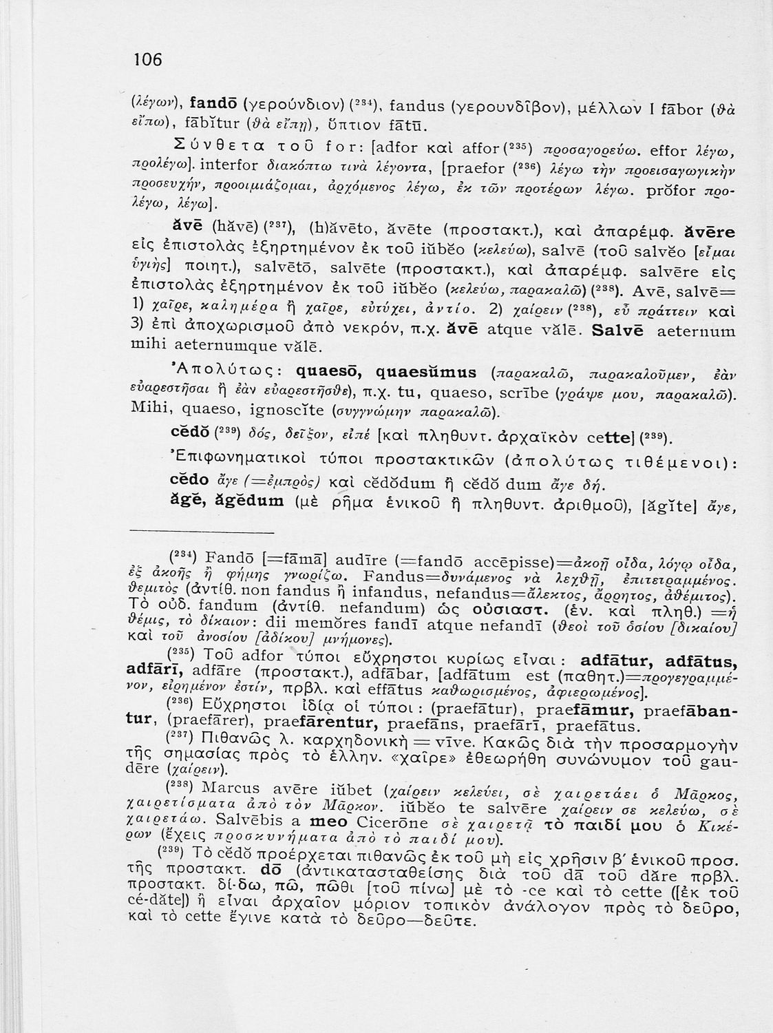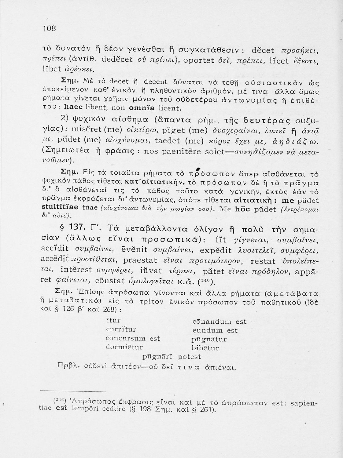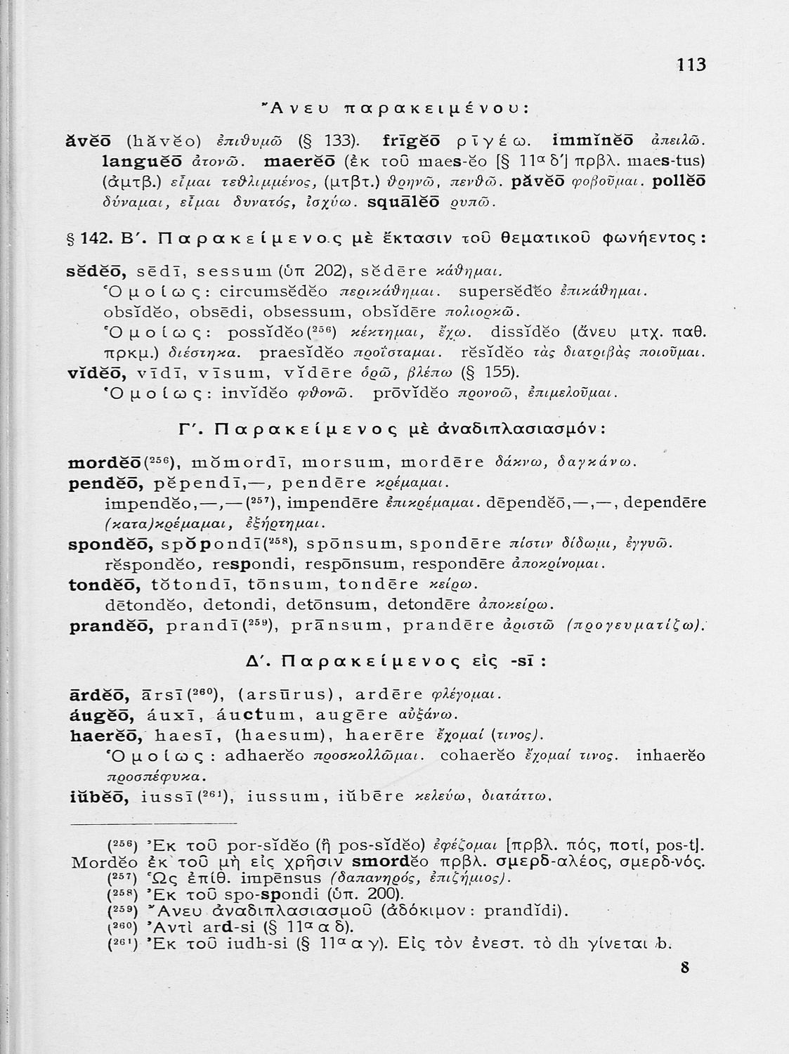 Σχολικό εγχειρίδιο Λατινικών Γυμνασίου που περιλαμβάνει γραμματική και συντακτικό και είναι χωρισμένο σε φθογγολογικό, τυπολογικό και ετυμολογικό μέρος.