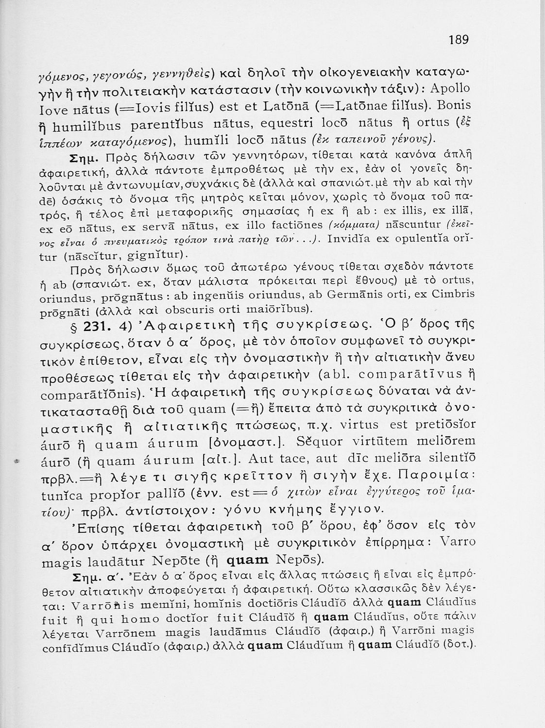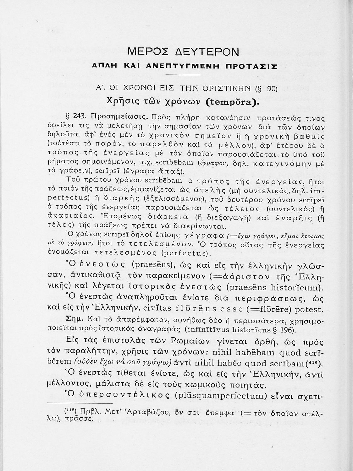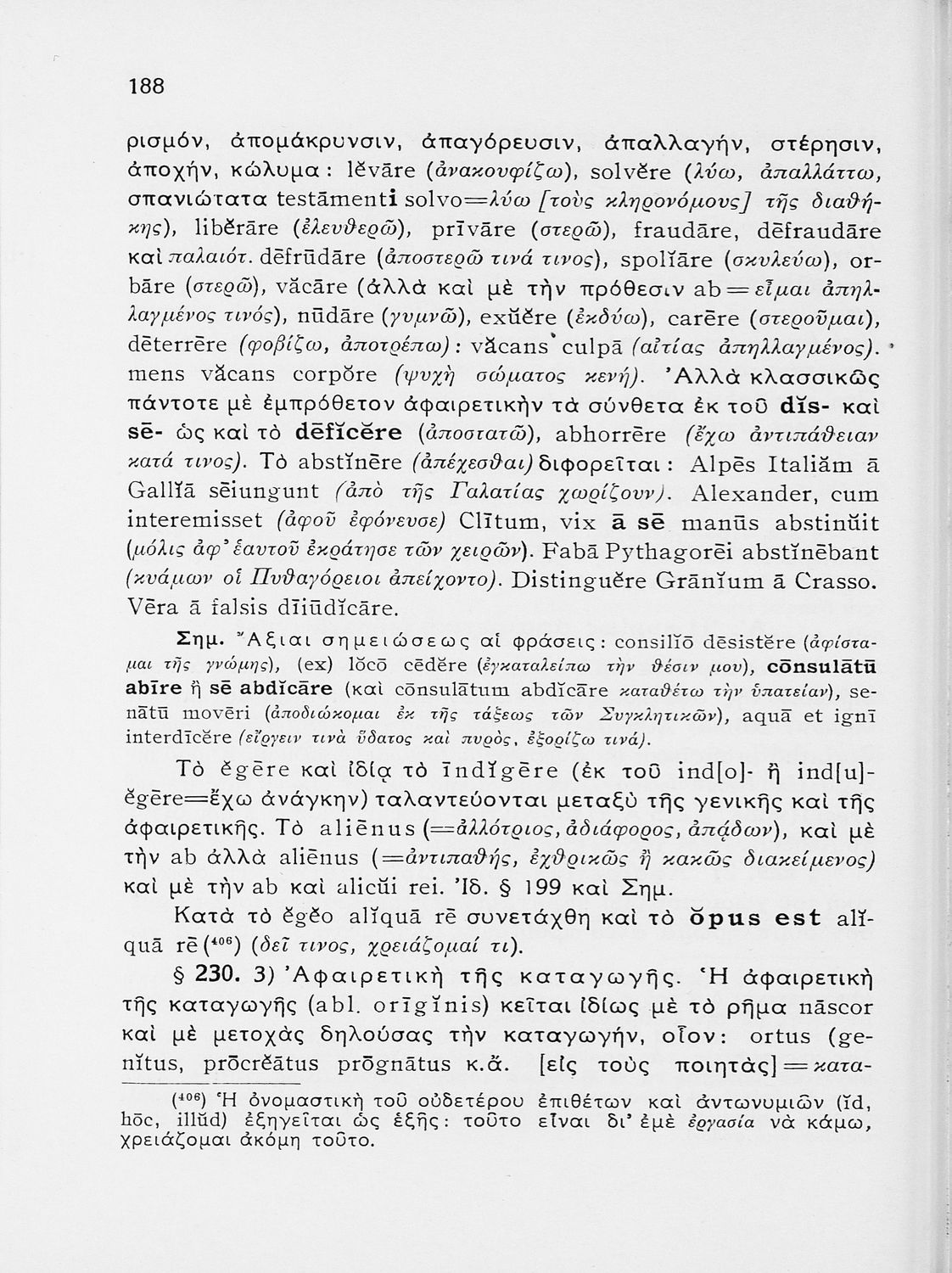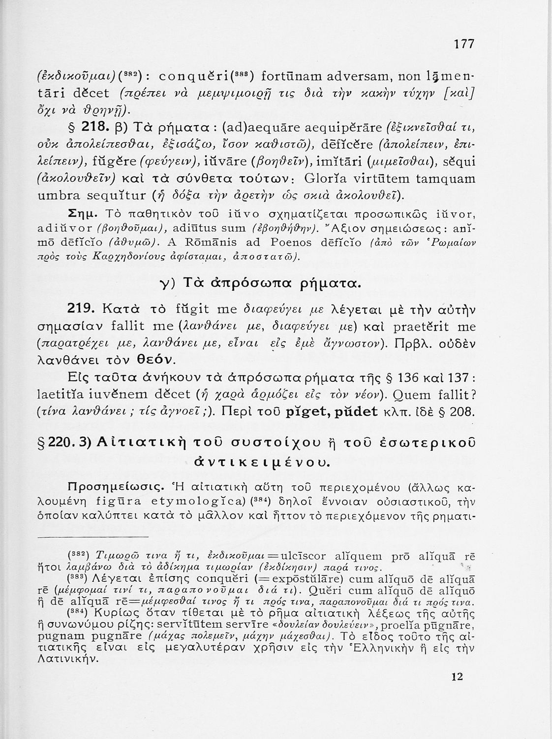 Σχολικό εγχειρίδιο Λατινικών Γυμνασίου που περιλαμβάνει γραμματική και συντακτικό και είναι χωρισμένο σε φθογγολογικό, τυπολογικό και ετυμολογικό μέρος.