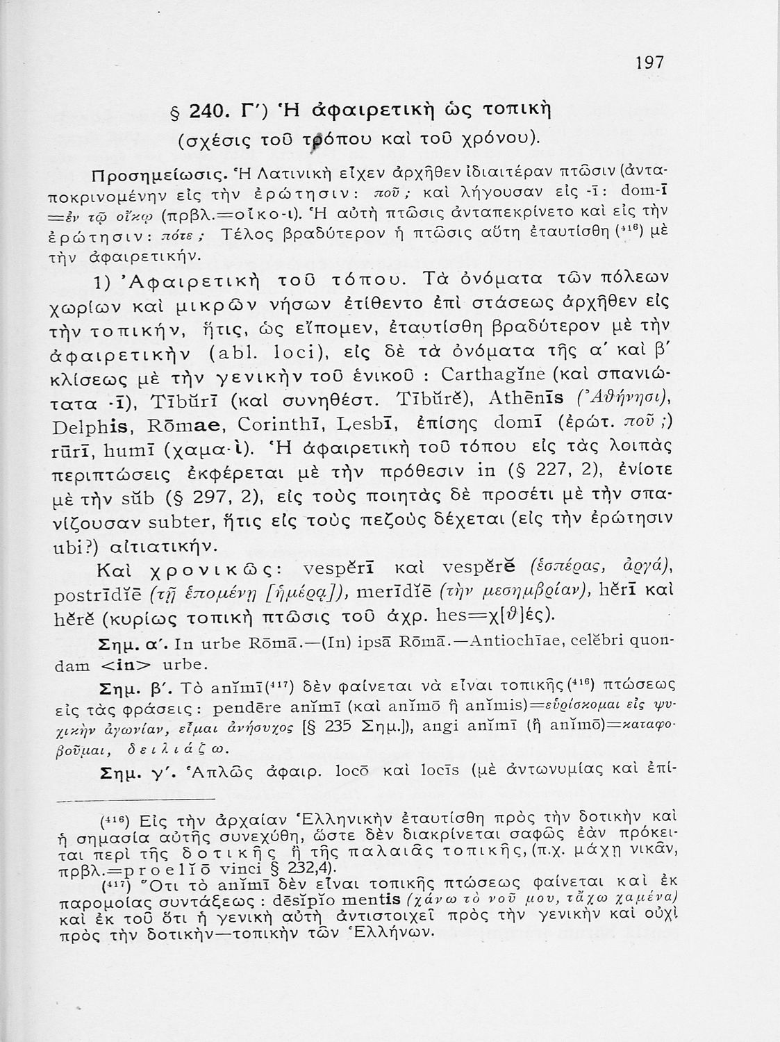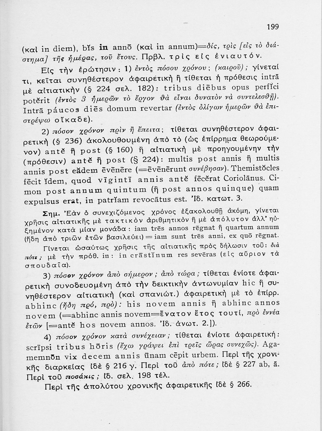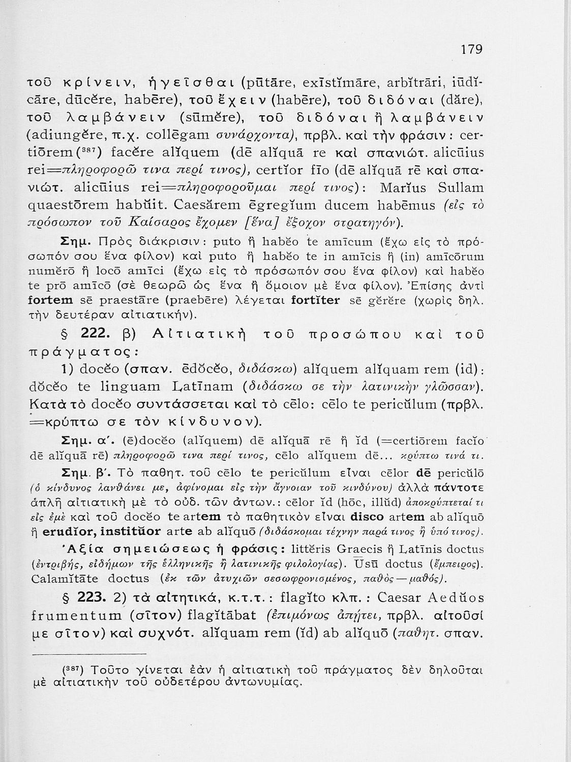 Σχολικό εγχειρίδιο Λατινικών Γυμνασίου που περιλαμβάνει γραμματική και συντακτικό και είναι χωρισμένο σε φθογγολογικό, τυπολογικό και ετυμολογικό μέρος.