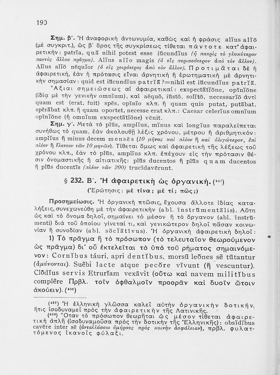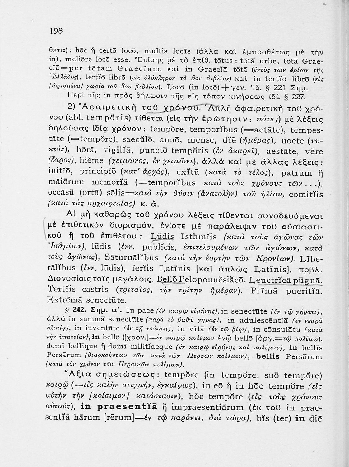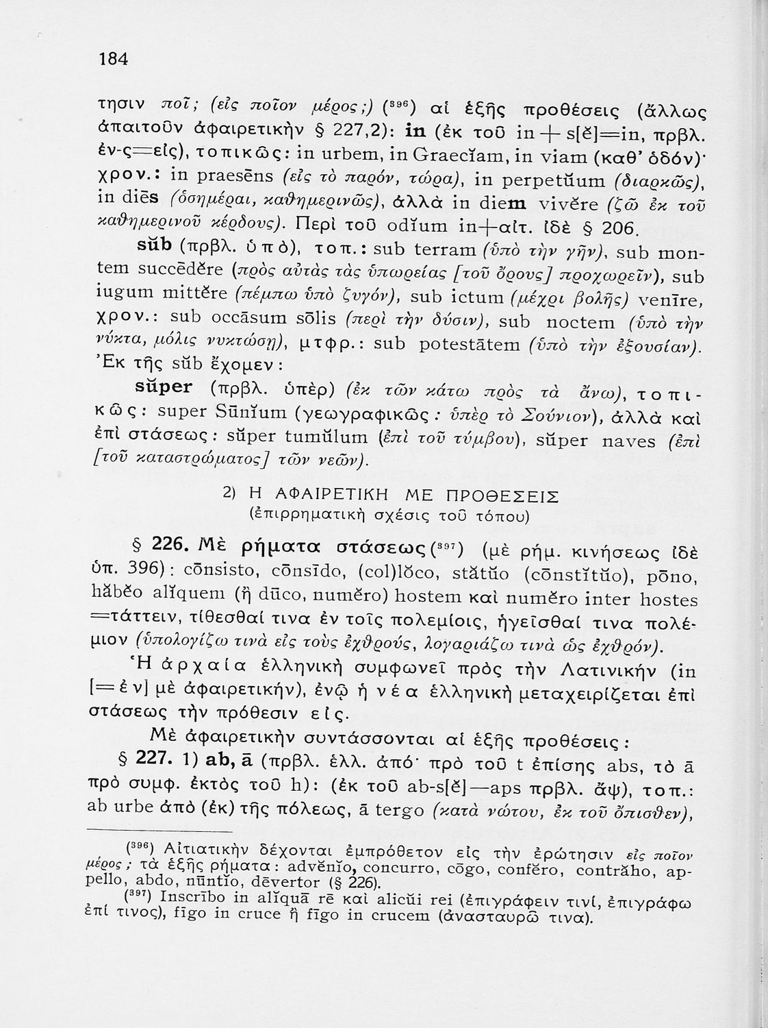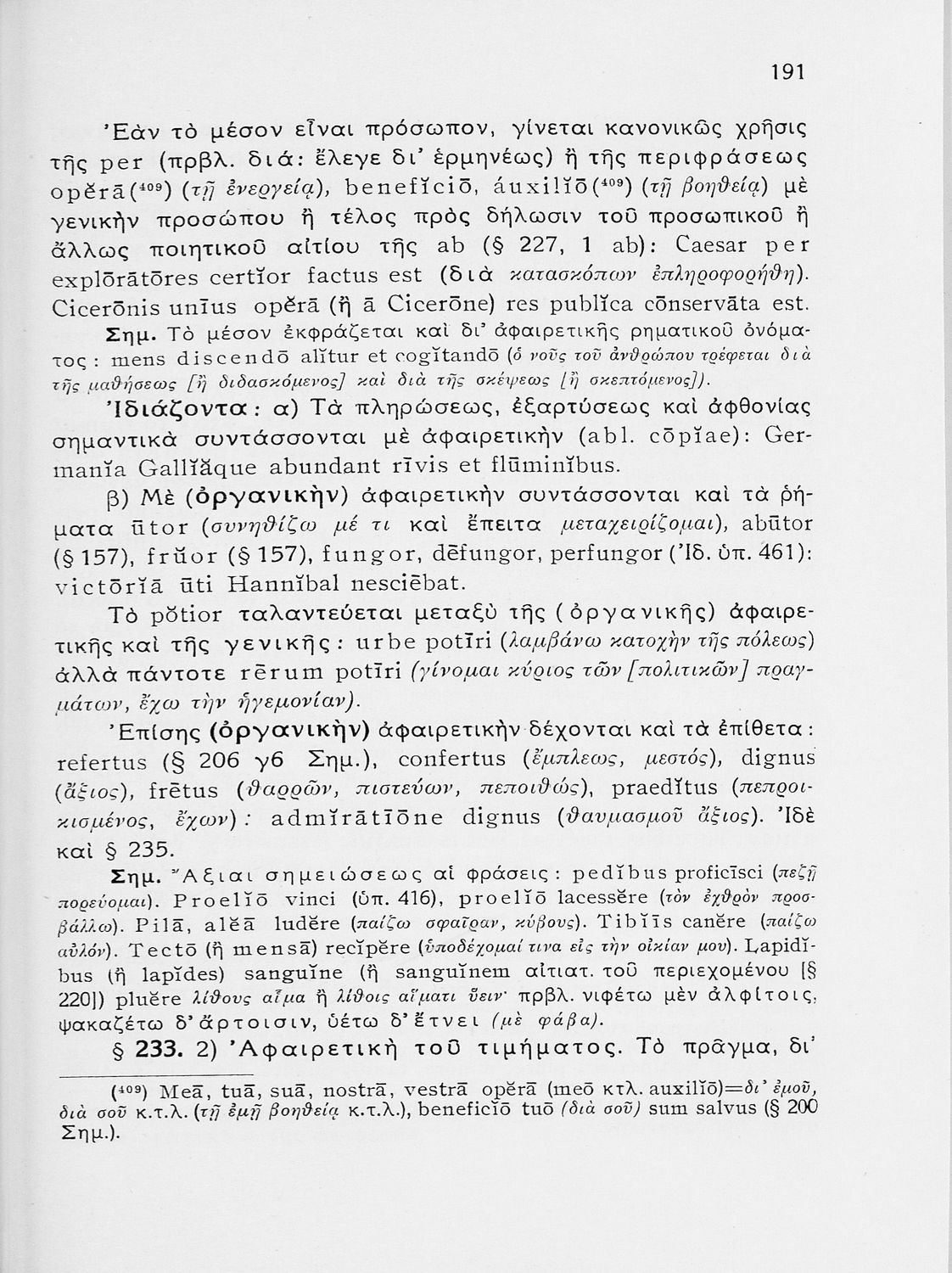 Σχολικό εγχειρίδιο Λατινικών Γυμνασίου που περιλαμβάνει γραμματική και συντακτικό και είναι χωρισμένο σε φθογγολογικό, τυπολογικό και ετυμολογικό μέρος.
