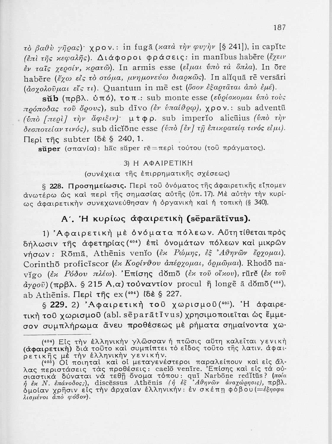 LDR 01144 2200181 4500 035 ## _a01-17915 040 ## _aΙνστιτούτο Εκπαιδευτικής Πολιτικής 041 ## _ael 100 ## _aΕρρίκος Α. Σκάσσης 110 ## _a17915 245 0# _aΓραμματική της λατινικής γλώσσης δια τας ανωτέρας τάξεις των Γυμνασίων νέου τύπου 260 ## _aΑθήνα _bΟργανισμός Εκδόσεως Σχολικών Βιβλίων _c1940 300 ## _a278 _c20 520 ## _aΣχολικό εγχειρίδιο Λατινικών Γυμνασίου που περιλαμβάνει γραμματική και συντακτικό και είναι χωρισμένο σε φθογγολογικό, τυπολογικό και ετυμολογικό μέρος. 522 ## _aΕλλάδα 546 ## _aΑπλή καθαρεύουσα 563 ## _aΣκληρό Εξώφυλλο 650 #4 _aΑνώμαλα ρήματα _aΕνεργητική και παθητική φωνή _aΜέρη του λόγου _aΠροθέσεις _aΣυζυγίες _aΥποθετικοί λόγοι