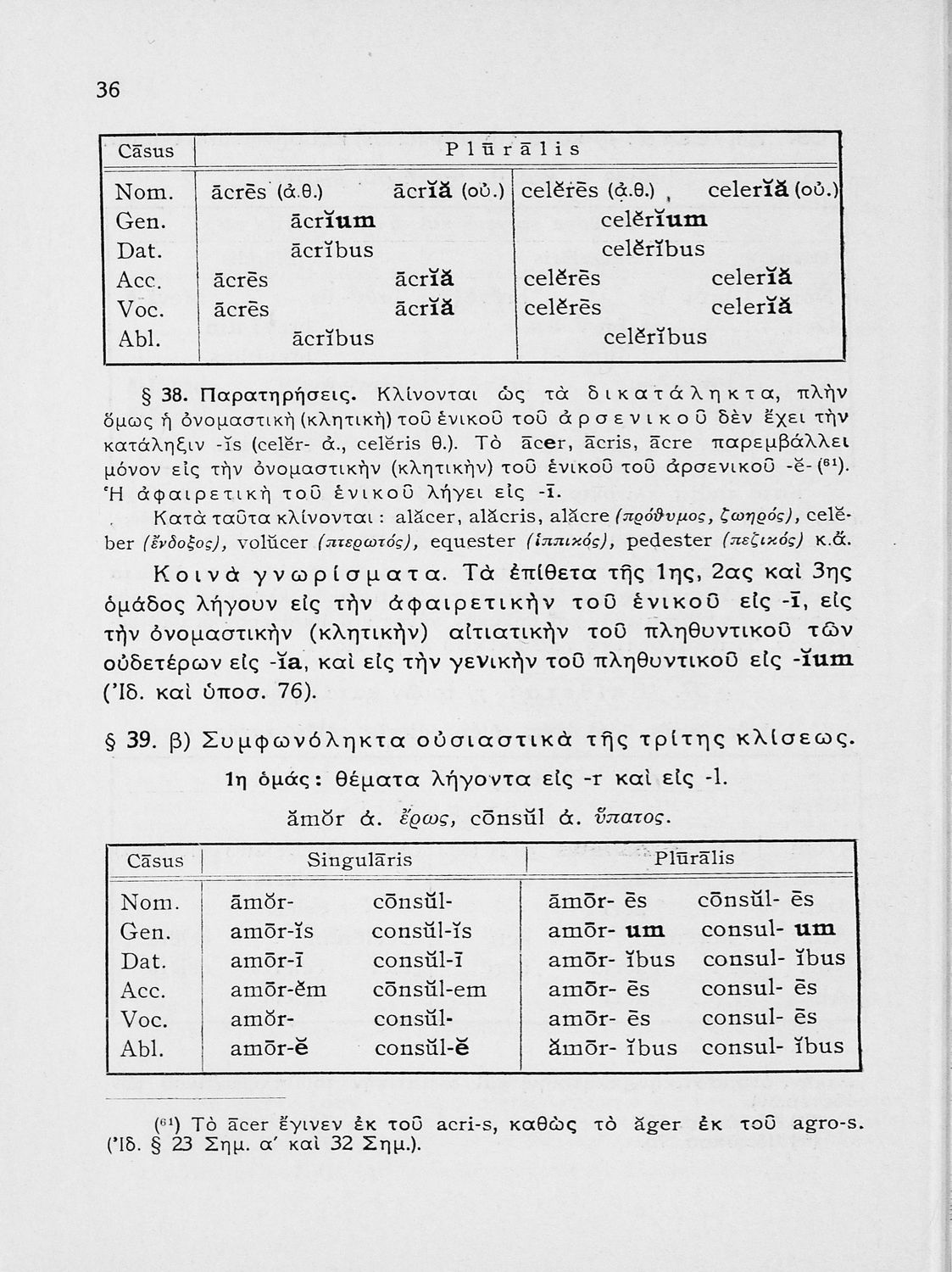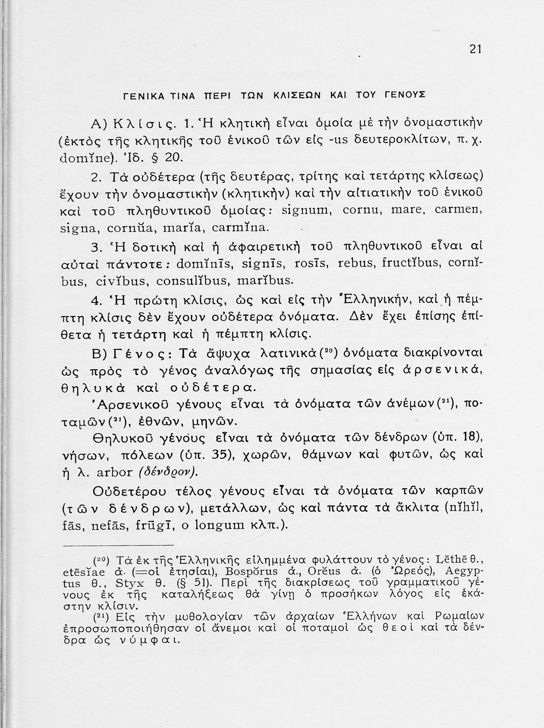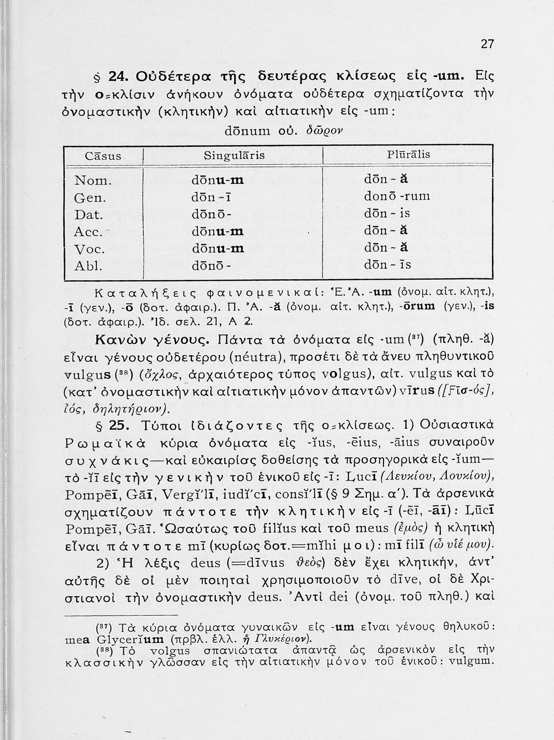 Σχολικό εγχειρίδιο Λατινικών Γυμνασίου που περιλαμβάνει γραμματική και συντακτικό και είναι χωρισμένο σε φθογγολογικό, τυπολογικό και ετυμολογικό μέρος.