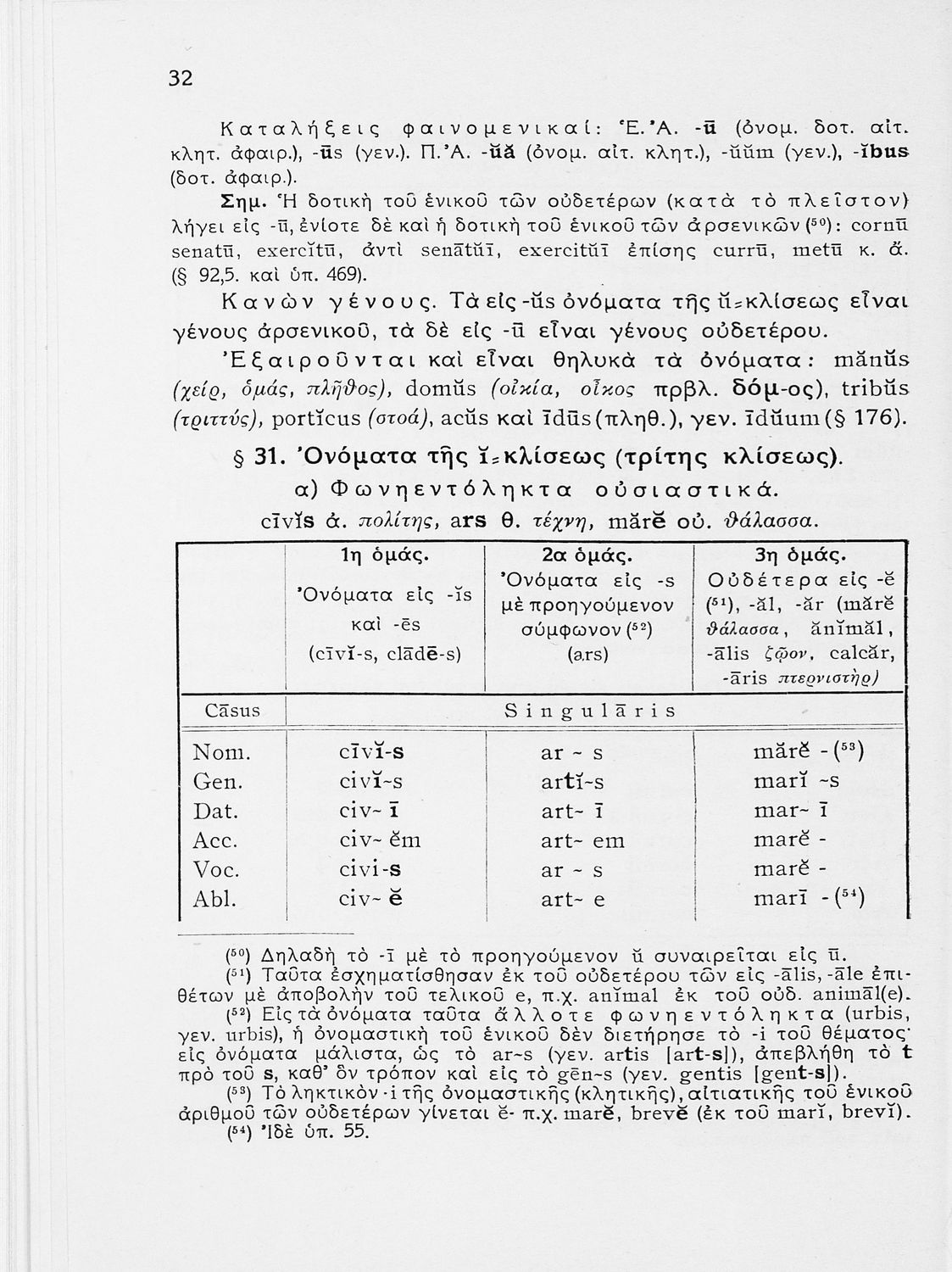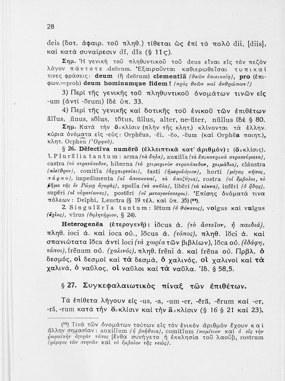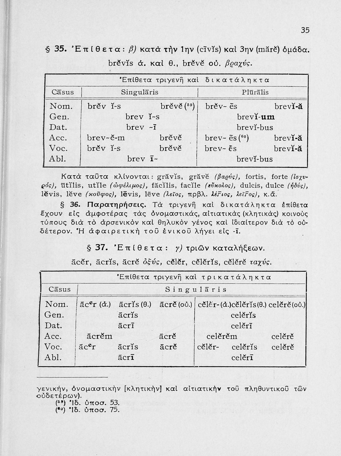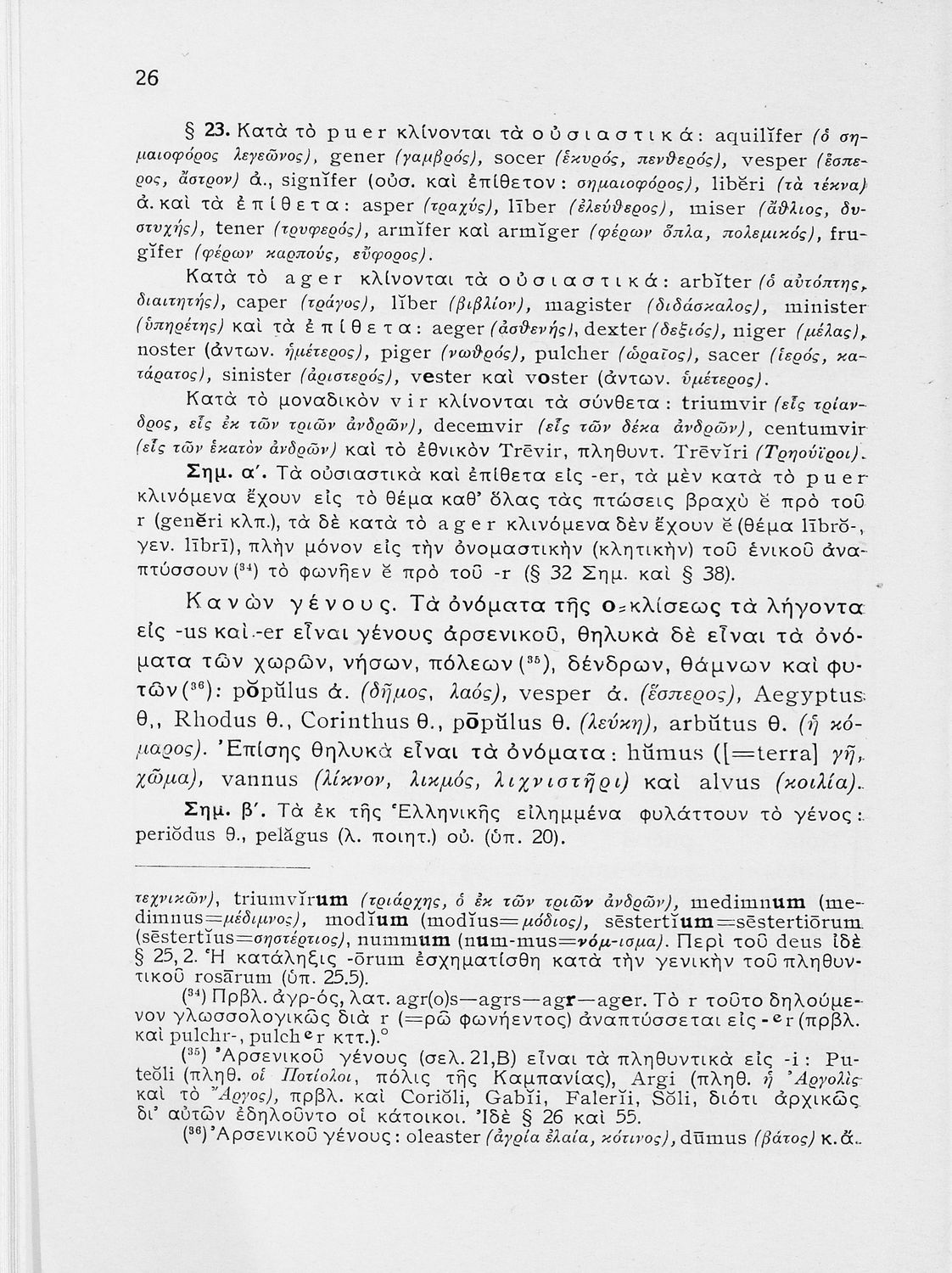 Σχολικό εγχειρίδιο Λατινικών Γυμνασίου που περιλαμβάνει γραμματική και συντακτικό και είναι χωρισμένο σε φθογγολογικό, τυπολογικό και ετυμολογικό μέρος.