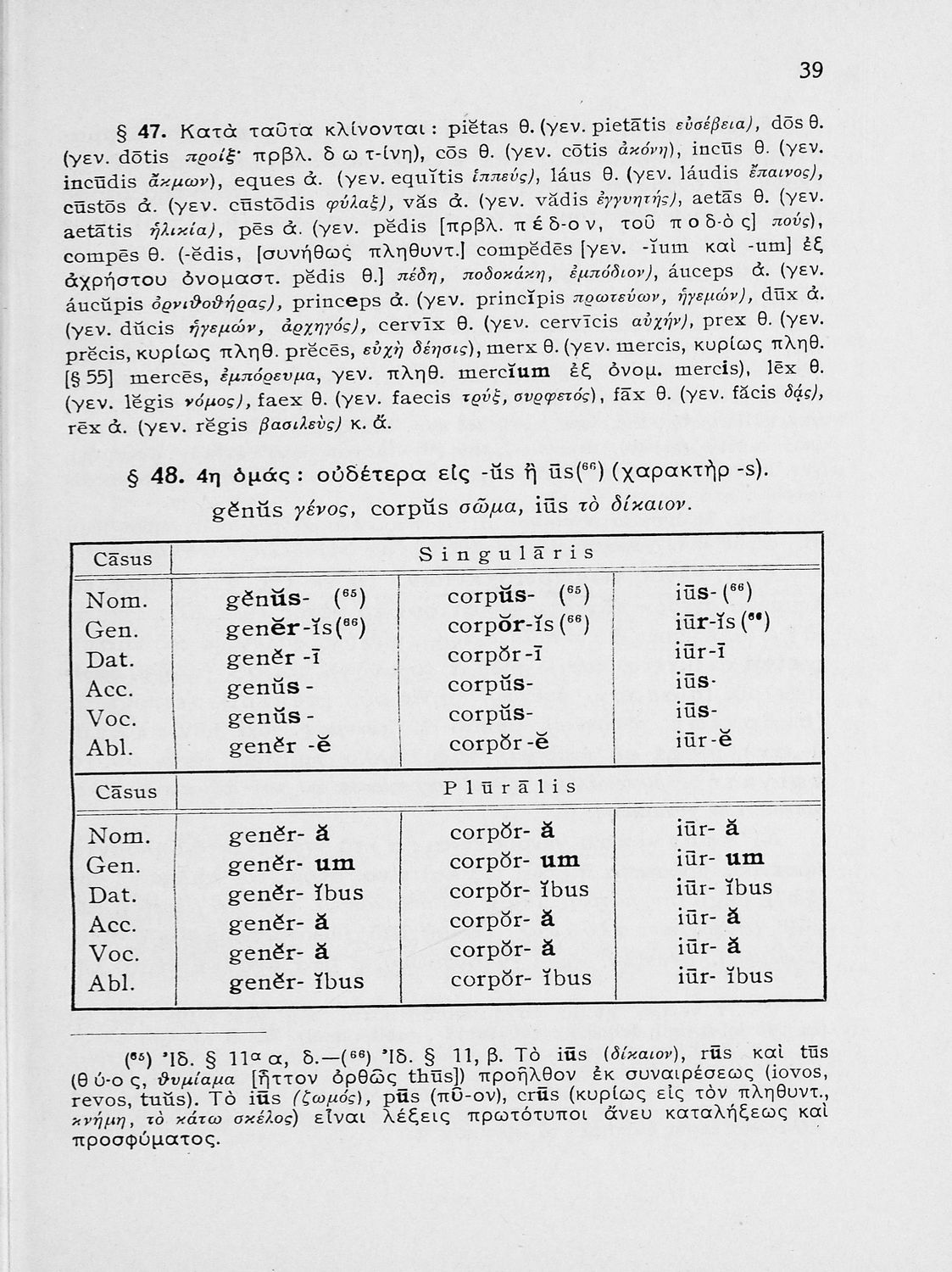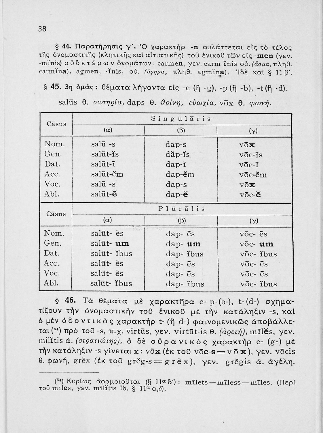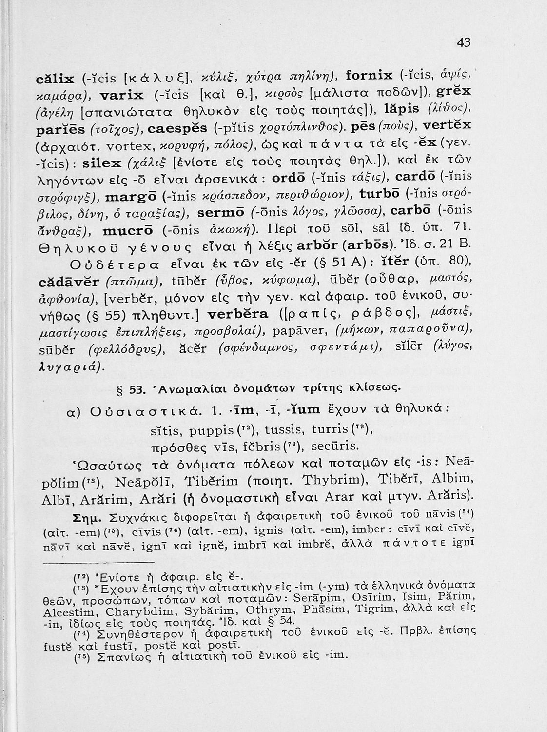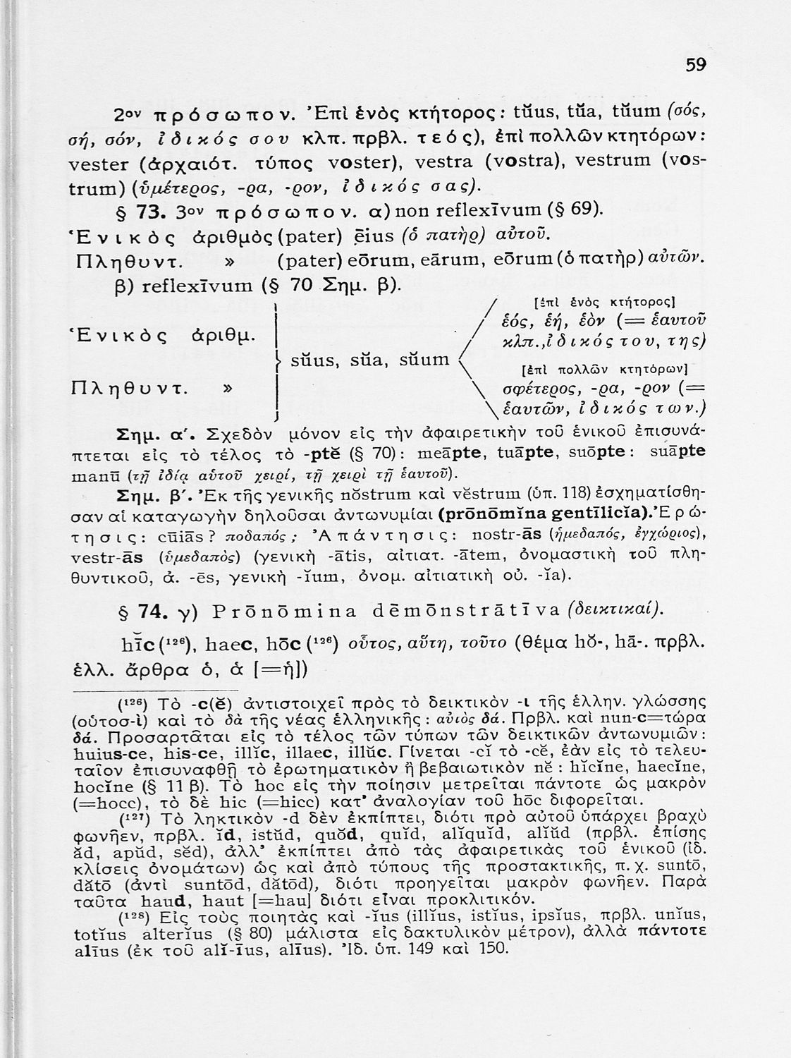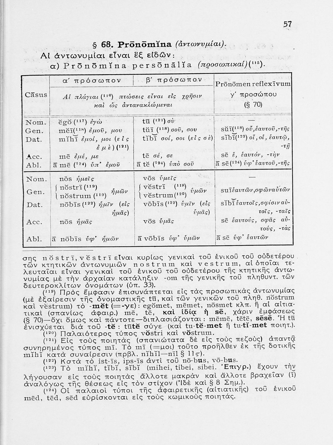 Σχολικό εγχειρίδιο Λατινικών Γυμνασίου που περιλαμβάνει γραμματική και συντακτικό και είναι χωρισμένο σε φθογγολογικό, τυπολογικό και ετυμολογικό μέρος.