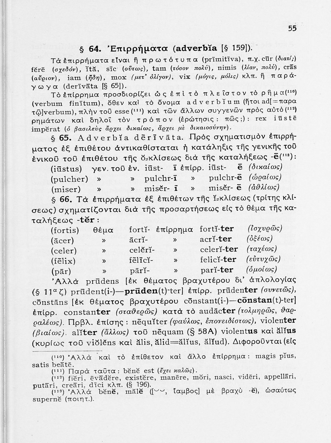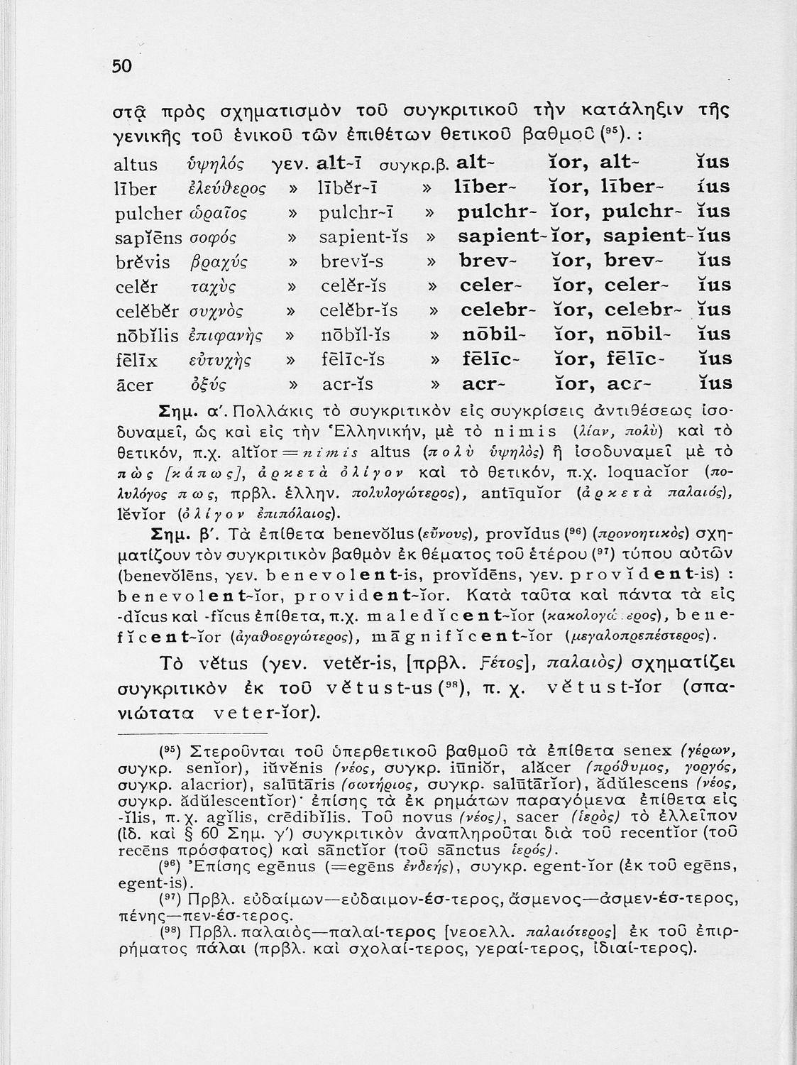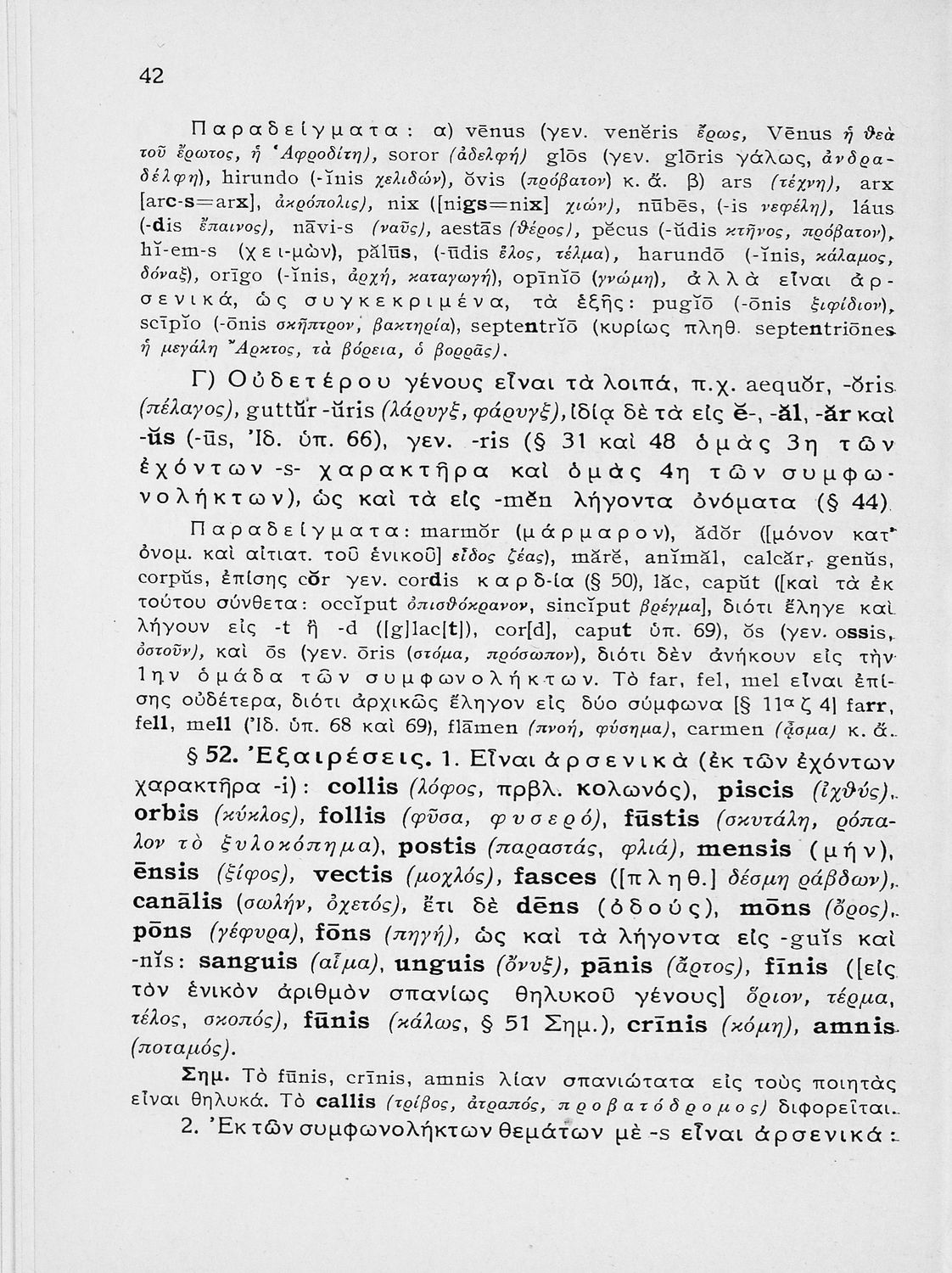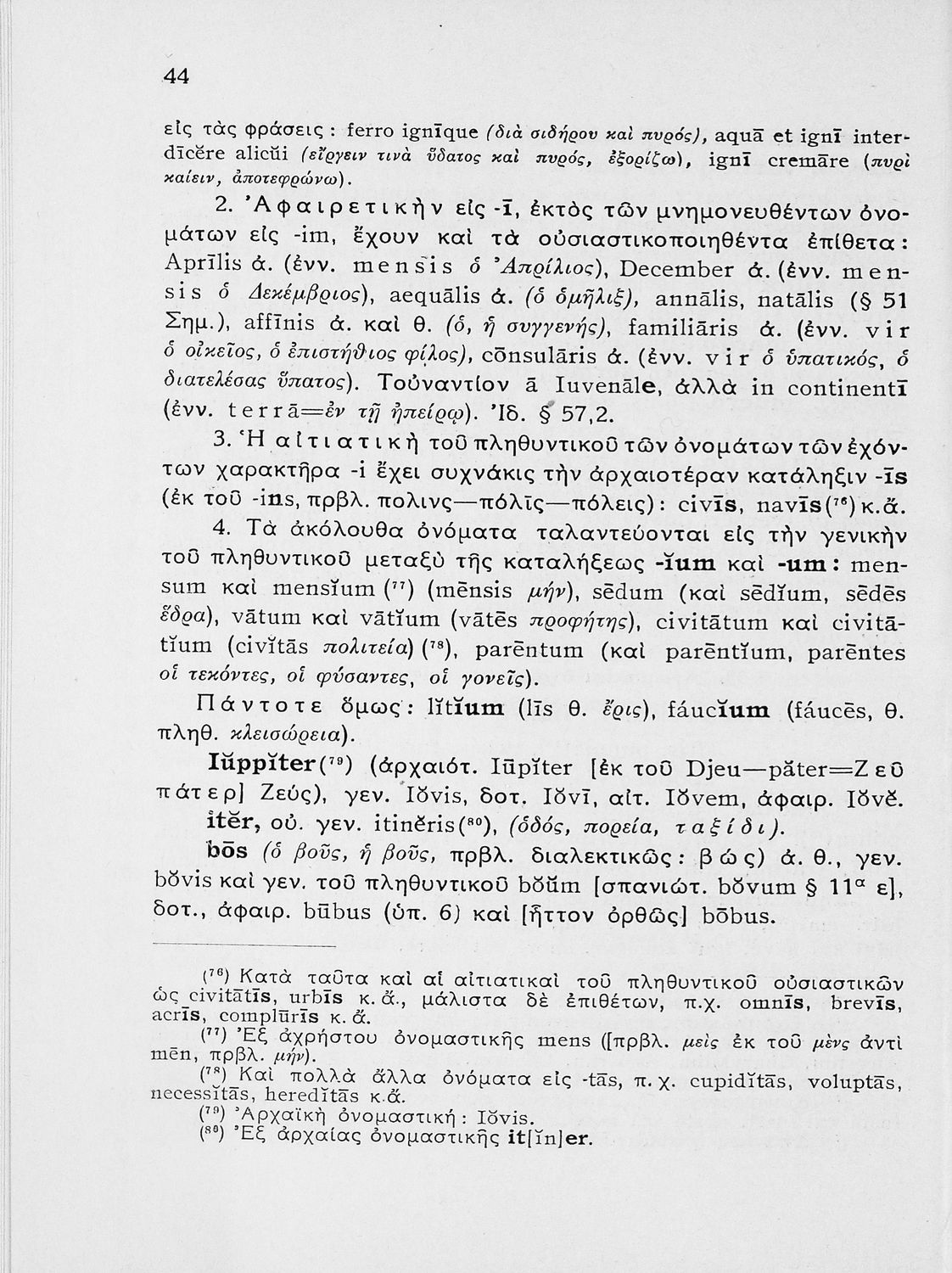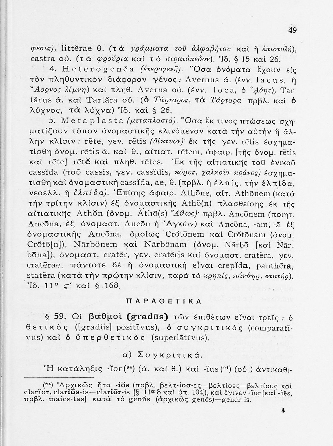 Σχολικό εγχειρίδιο Λατινικών Γυμνασίου που περιλαμβάνει γραμματική και συντακτικό και είναι χωρισμένο σε φθογγολογικό, τυπολογικό και ετυμολογικό μέρος.