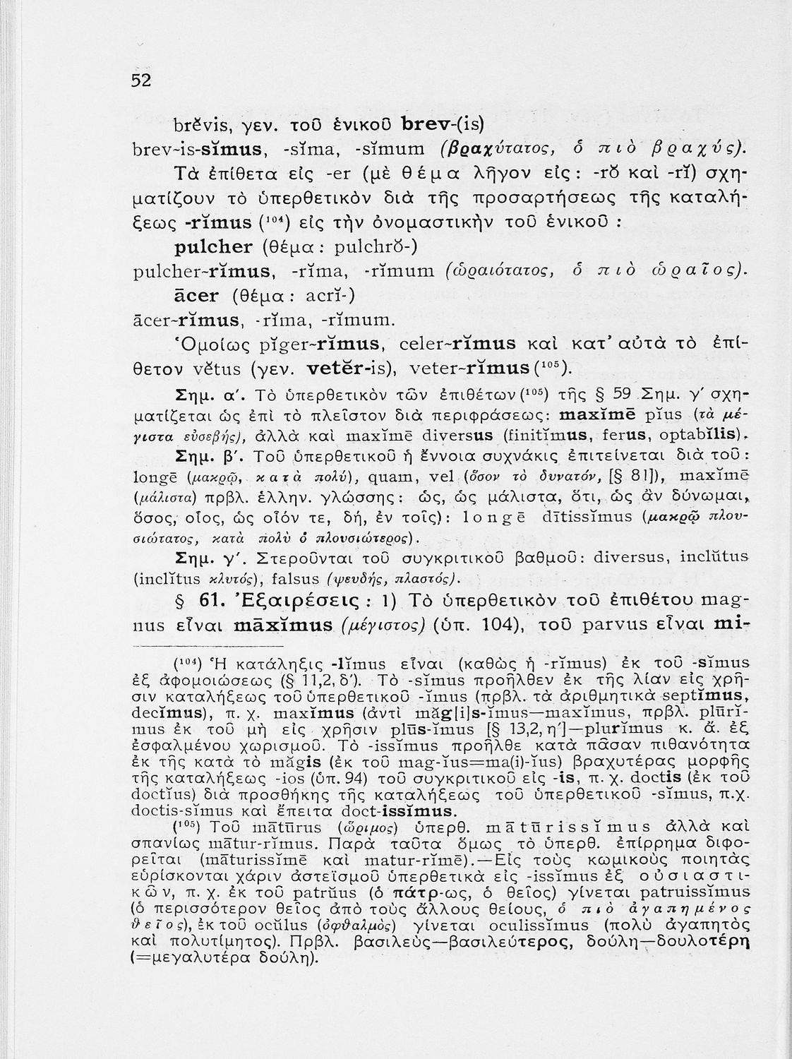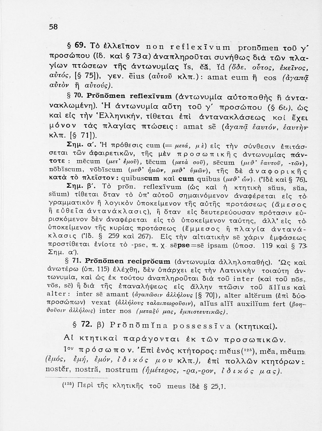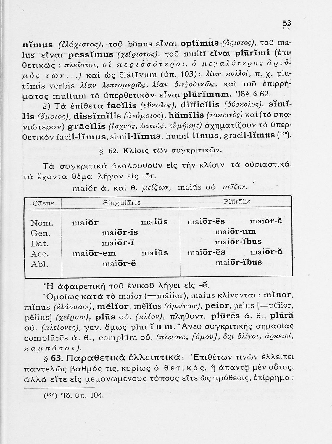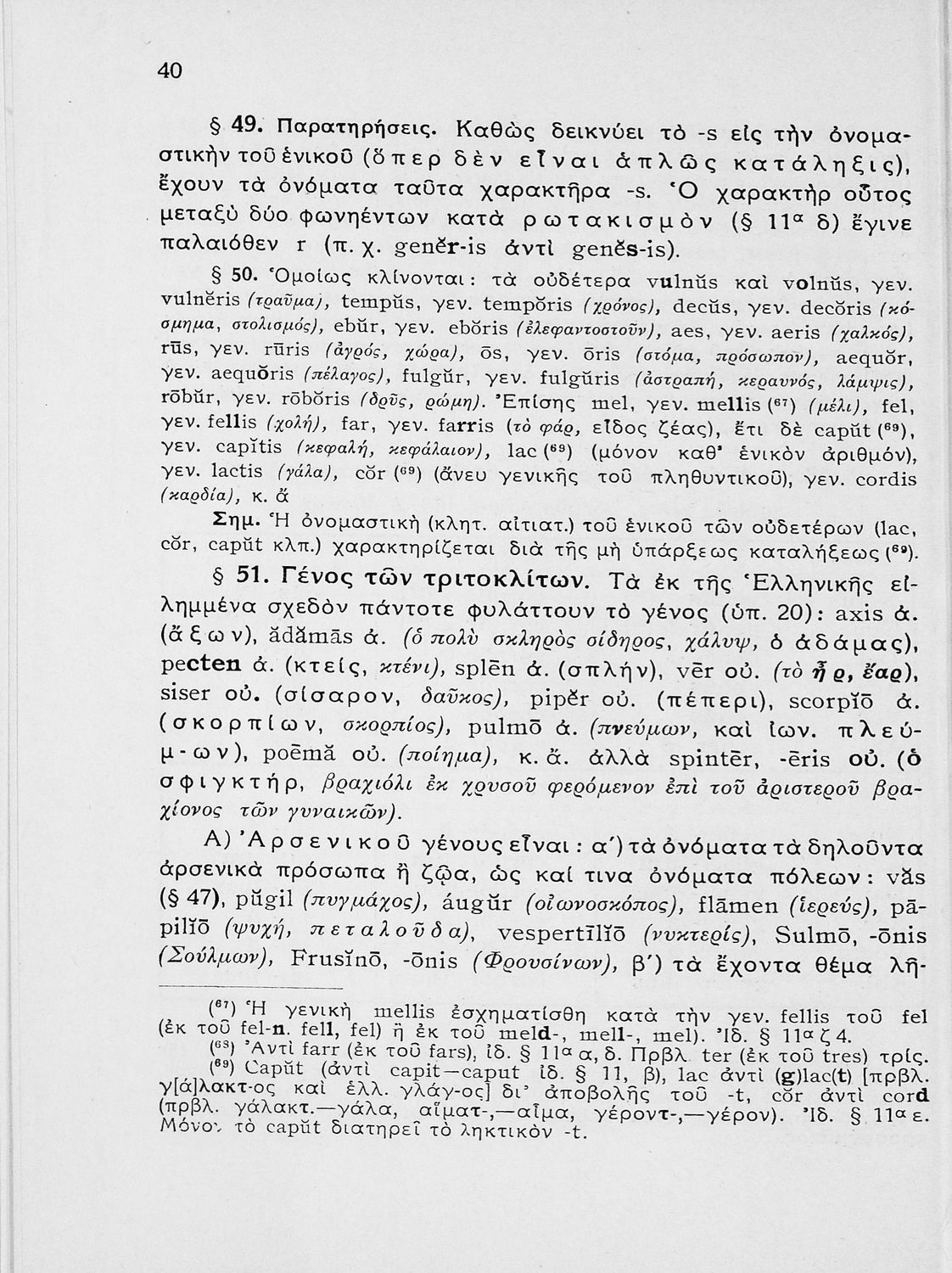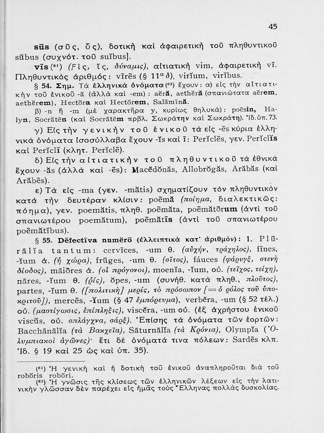 Σχολικό εγχειρίδιο Λατινικών Γυμνασίου που περιλαμβάνει γραμματική και συντακτικό και είναι χωρισμένο σε φθογγολογικό, τυπολογικό και ετυμολογικό μέρος.