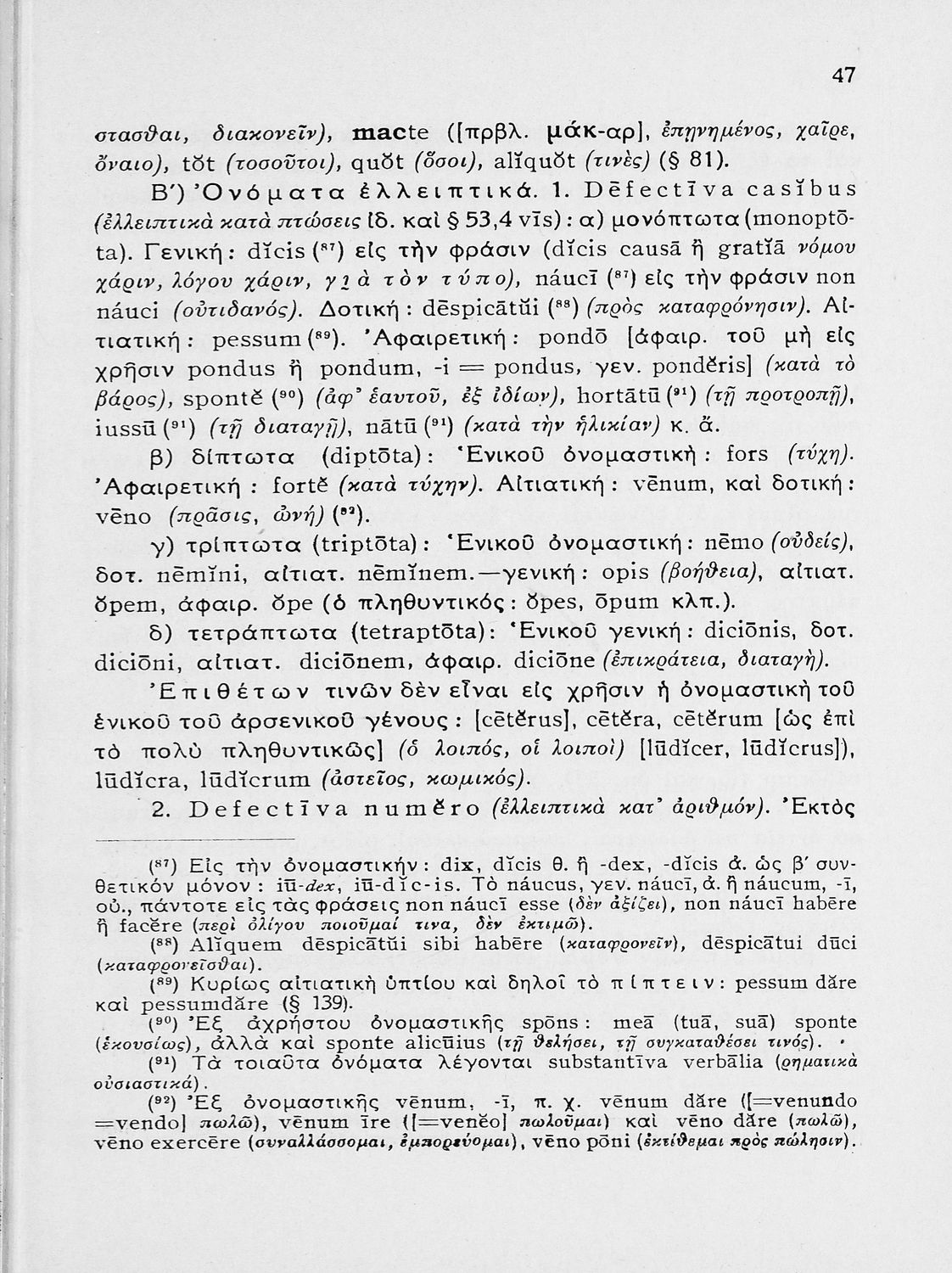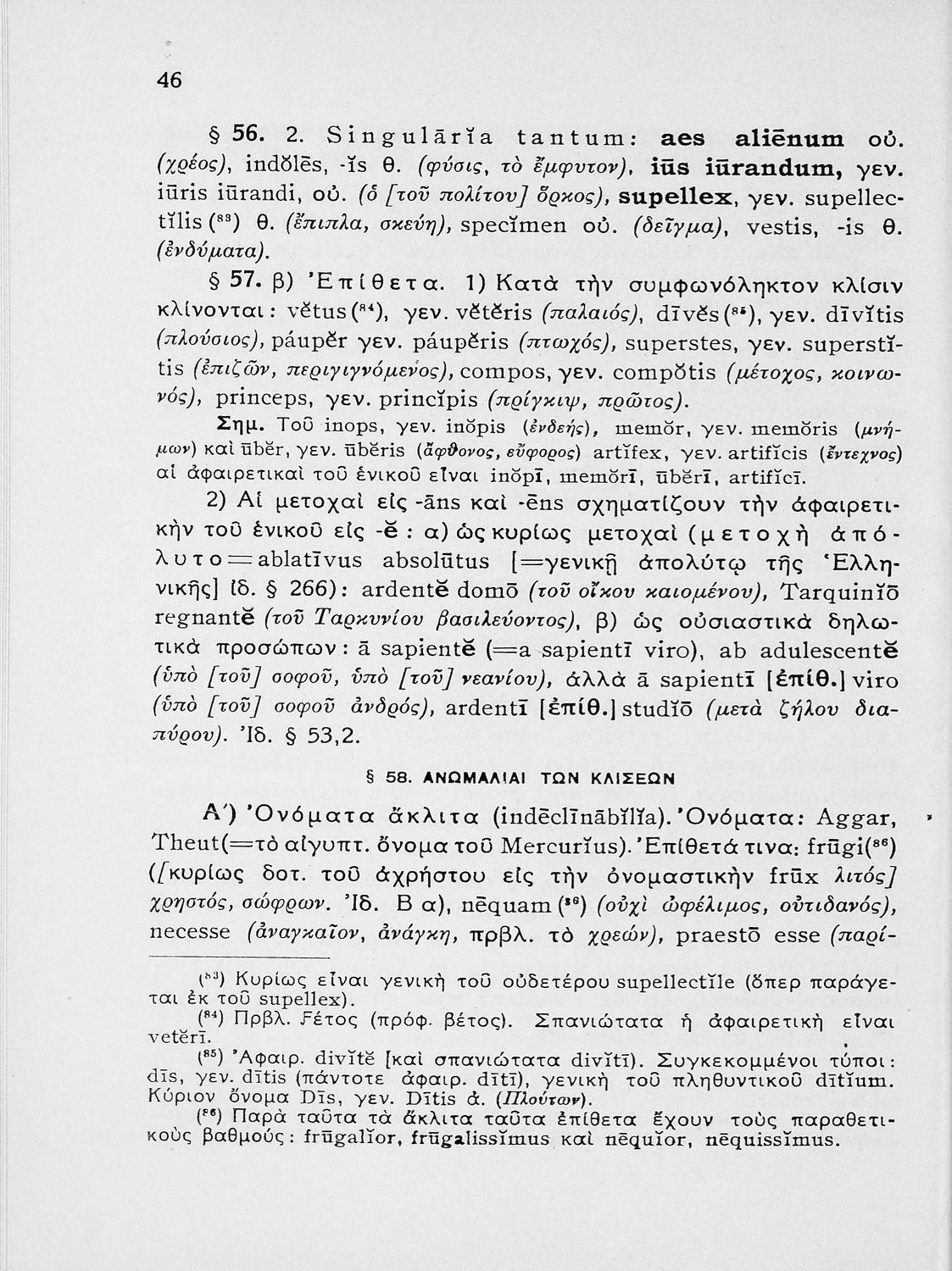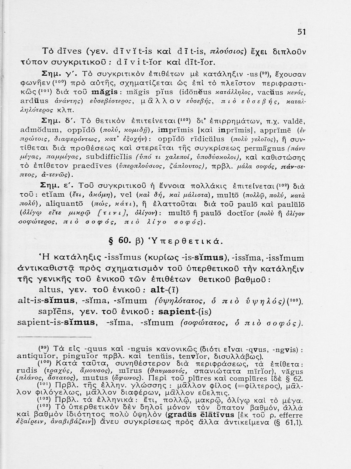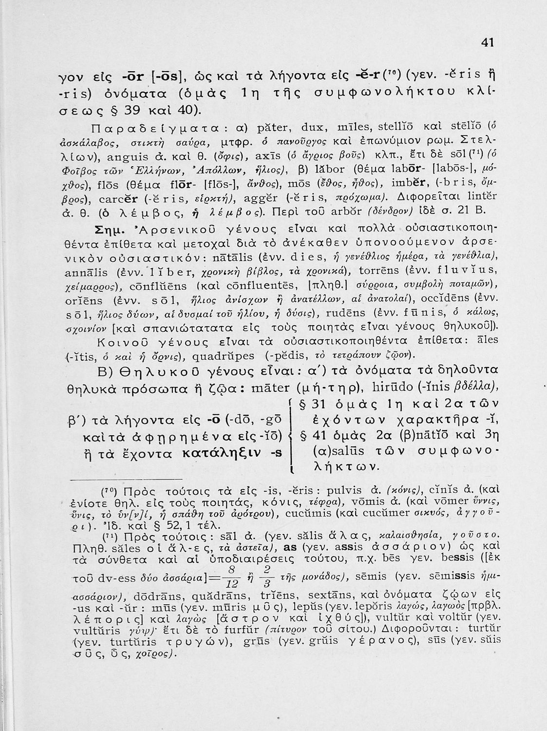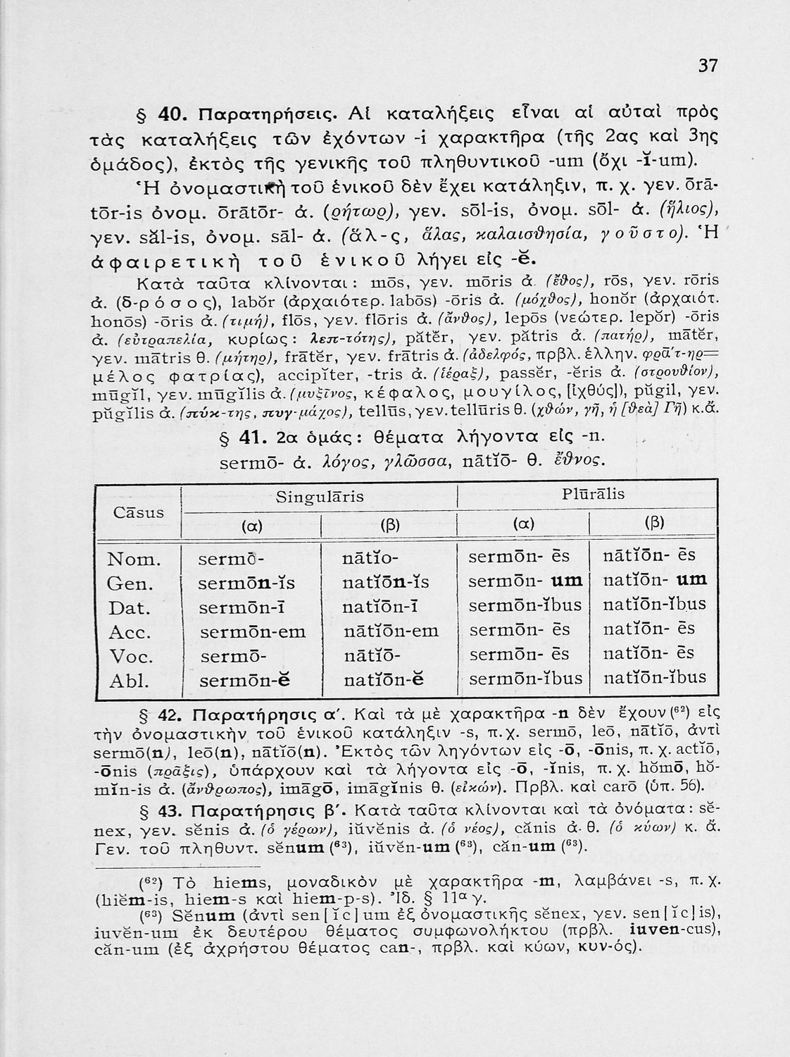 Σχολικό εγχειρίδιο Λατινικών Γυμνασίου που περιλαμβάνει γραμματική και συντακτικό και είναι χωρισμένο σε φθογγολογικό, τυπολογικό και ετυμολογικό μέρος.