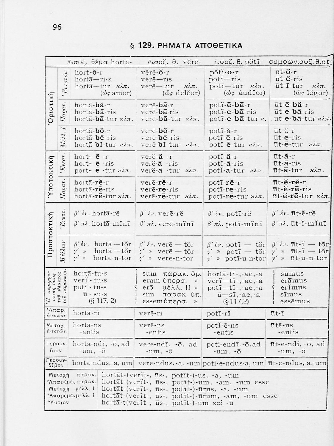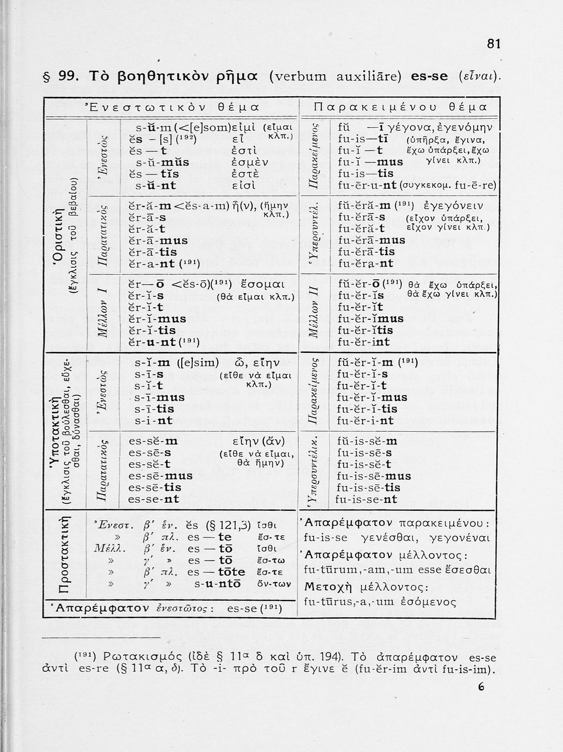 Σχολικό εγχειρίδιο Λατινικών Γυμνασίου που περιλαμβάνει γραμματική και συντακτικό και είναι χωρισμένο σε φθογγολογικό, τυπολογικό και ετυμολογικό μέρος.