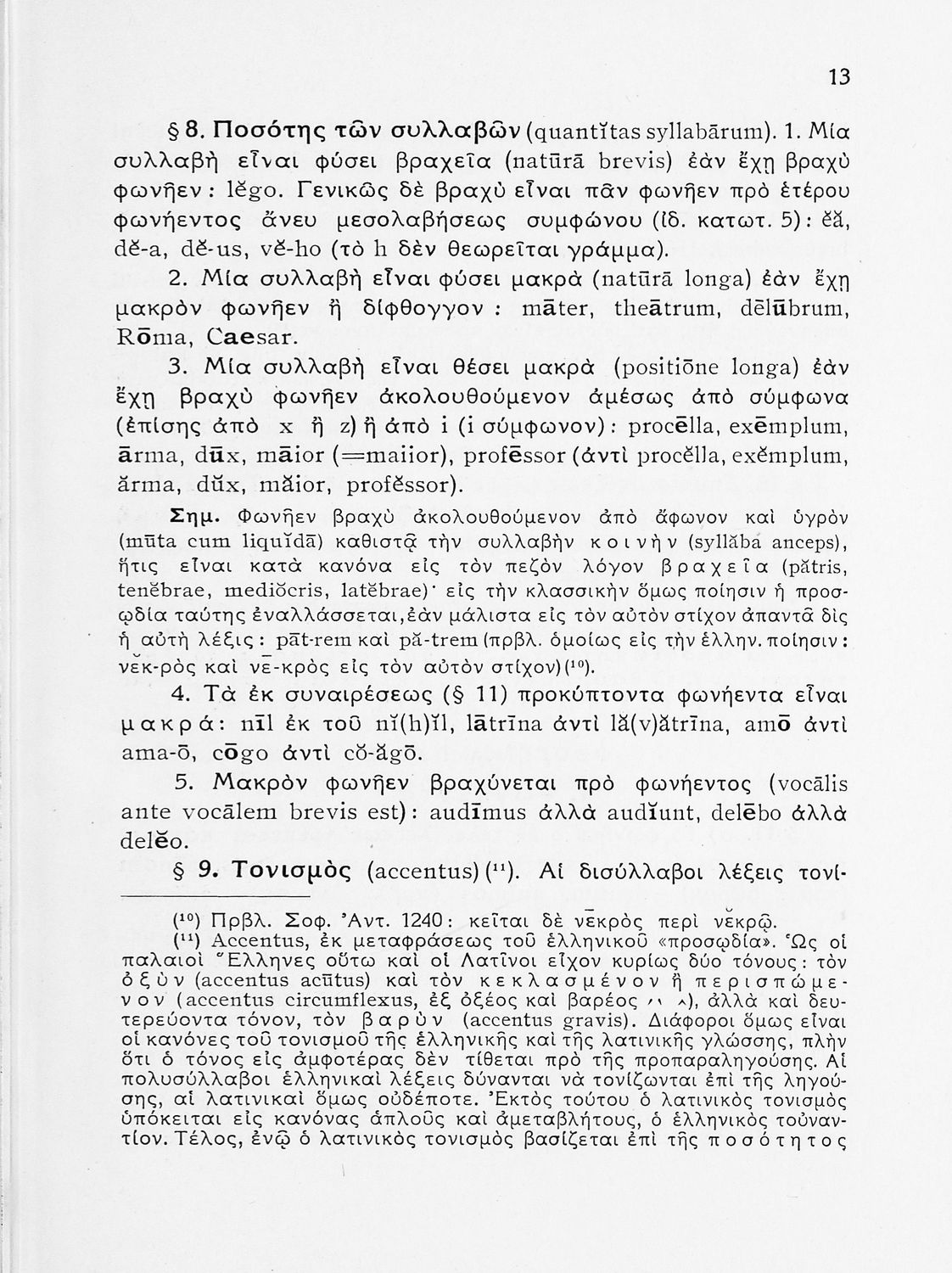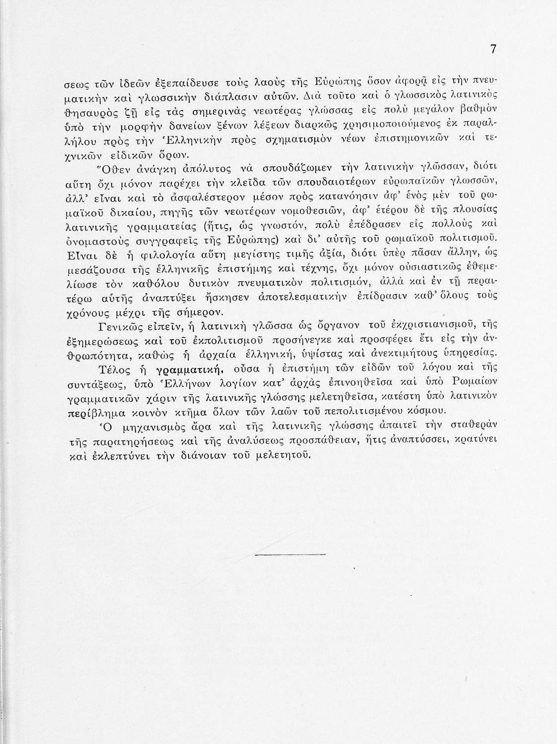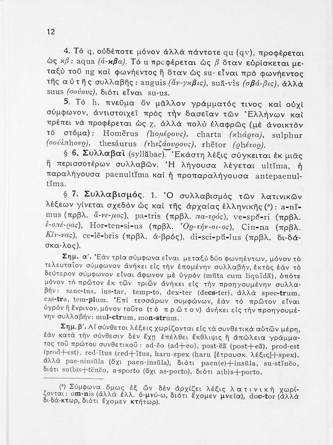 Σχολικό εγχειρίδιο Λατινικών Γυμνασίου που περιλαμβάνει γραμματική και συντακτικό και είναι χωρισμένο σε φθογγολογικό, τυπολογικό και ετυμολογικό μέρος.