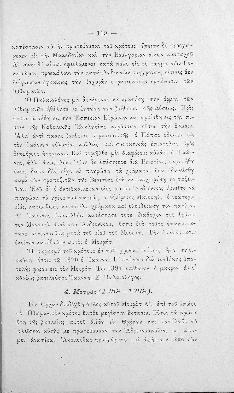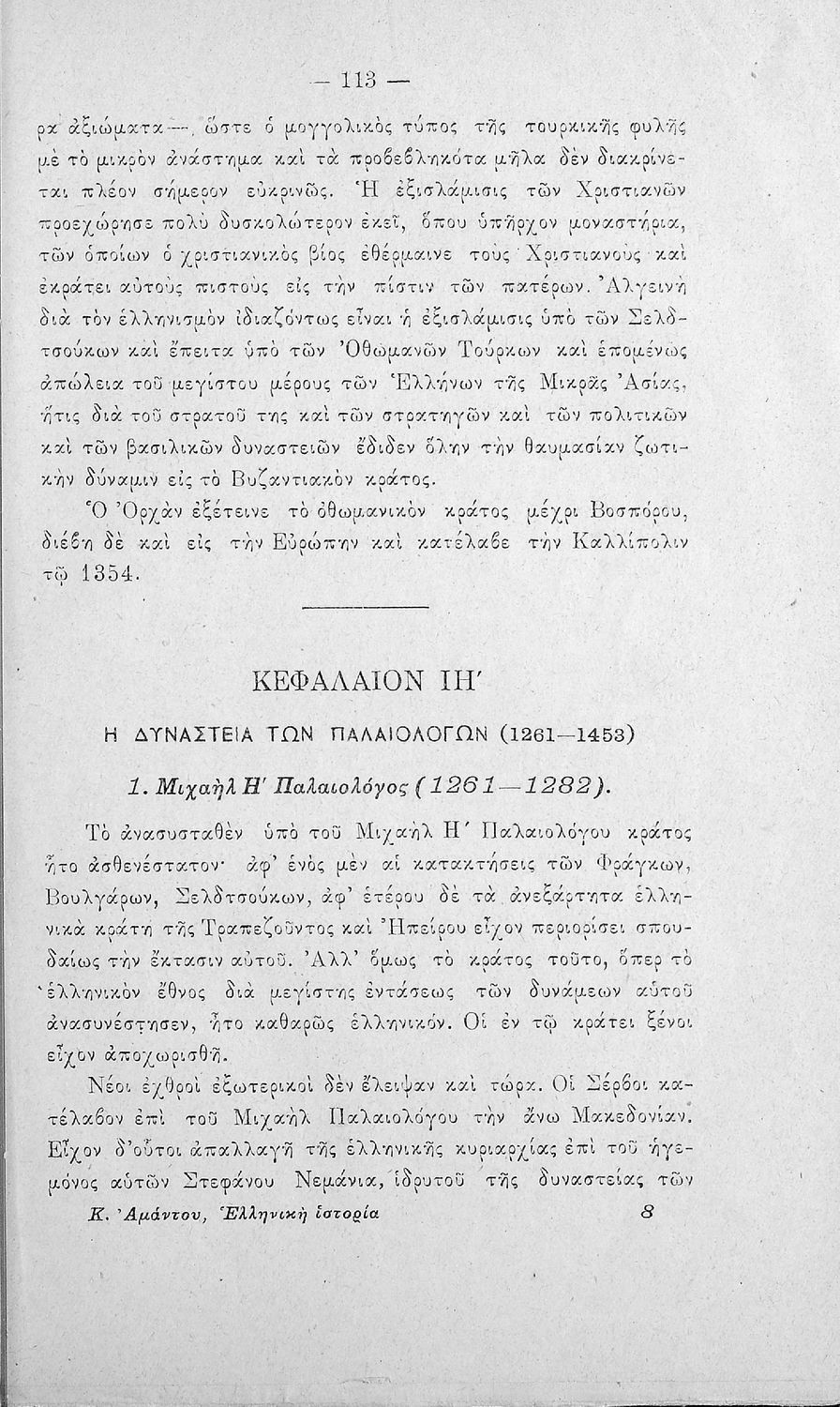 LDR 01399 2200217 4500 035 ## _a01-17917 040 ## _aΙνστιτούτο Εκπαιδευτικής Πολιτικής 041 ## _ael 100 ## _aΚωνσταντίνος Ι. Άμαντος 110 ## _a17917 245 0# _aΕλληνική Ιστορία από του 395μ.Χ μέχρι υπό των Τούρκων Αλώσεως της Κωνσταντινουπόλεως. Δια την Γ΄ Τάξιν του Γυμνασίου 250 ## _a1η Έκδοση 260 ## _aΑθήνα _bΙωάννης Δ. Κολλάρος, Βιβλιοπωλείο της "Εστίας" _c1918 300 ## _a144 520 ## _aΣχολικό εγχειρίδιο Ιστορίας Γ΄ Γυμνασίου που καλύπτει την περίοδο από την ίδρυση της Ρώμης μέχρι την άλωση της Κωνσταντινούπολης. 521 ## _aΓ' Γυμνασίου 522 ## _aΕλλάδα 546 ## _aΑπλή καθαρεύουσα 563 ## _aΜαλακό Εξώφυλλο 583 ## _a31607/20-8-1918 _c1918 650 #4 _aΒασίλειος Β΄ Βουλγαροκτόνος _aΗράκλειος _aΘεοδόσιος _aΙουστινιανός _aΚομνηνοί _aΜ Κωνσταντίνος _aΜωάμεθ ο Β΄ _aΠαλαιολόγοι _aΣελτζούκοι _aΣταυροφορίες _aΣχίσμα _aΦωκάς
