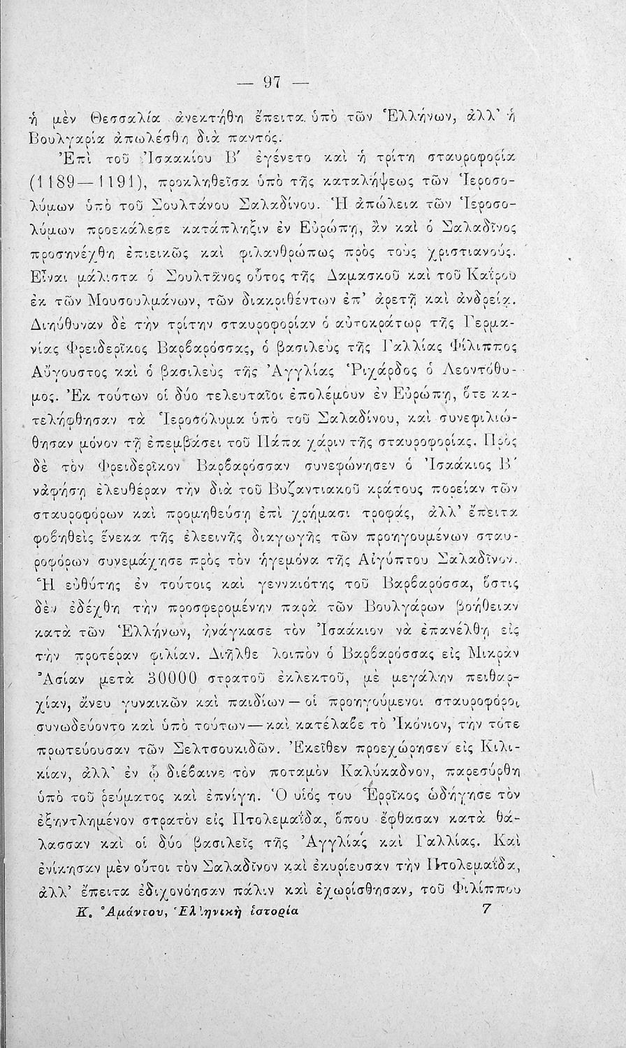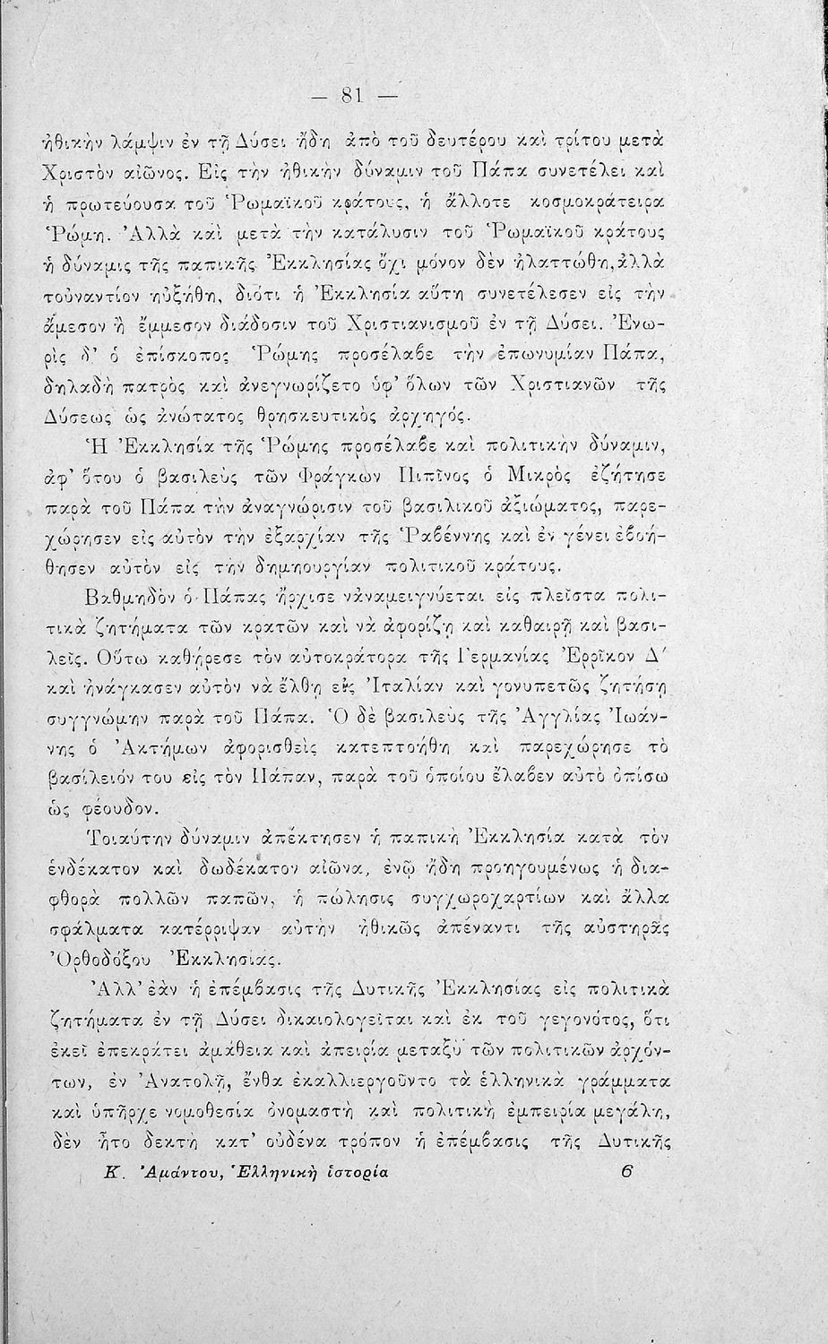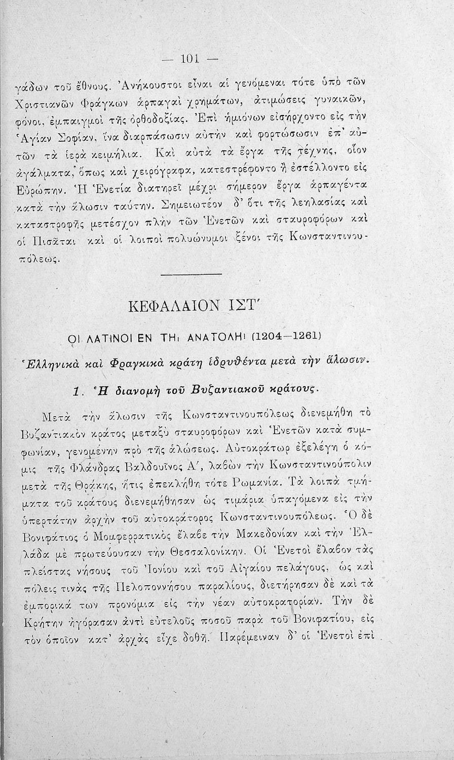 LDR 01399 2200217 4500 035 ## _a01-17917 040 ## _aΙνστιτούτο Εκπαιδευτικής Πολιτικής 041 ## _ael 100 ## _aΚωνσταντίνος Ι. Άμαντος 110 ## _a17917 245 0# _aΕλληνική Ιστορία από του 395μ.Χ μέχρι υπό των Τούρκων Αλώσεως της Κωνσταντινουπόλεως. Δια την Γ΄ Τάξιν του Γυμνασίου 250 ## _a1η Έκδοση 260 ## _aΑθήνα _bΙωάννης Δ. Κολλάρος, Βιβλιοπωλείο της "Εστίας" _c1918 300 ## _a144 520 ## _aΣχολικό εγχειρίδιο Ιστορίας Γ΄ Γυμνασίου που καλύπτει την περίοδο από την ίδρυση της Ρώμης μέχρι την άλωση της Κωνσταντινούπολης. 521 ## _aΓ' Γυμνασίου 522 ## _aΕλλάδα 546 ## _aΑπλή καθαρεύουσα 563 ## _aΜαλακό Εξώφυλλο 583 ## _a31607/20-8-1918 _c1918 650 #4 _aΒασίλειος Β΄ Βουλγαροκτόνος _aΗράκλειος _aΘεοδόσιος _aΙουστινιανός _aΚομνηνοί _aΜ Κωνσταντίνος _aΜωάμεθ ο Β΄ _aΠαλαιολόγοι _aΣελτζούκοι _aΣταυροφορίες _aΣχίσμα _aΦωκάς