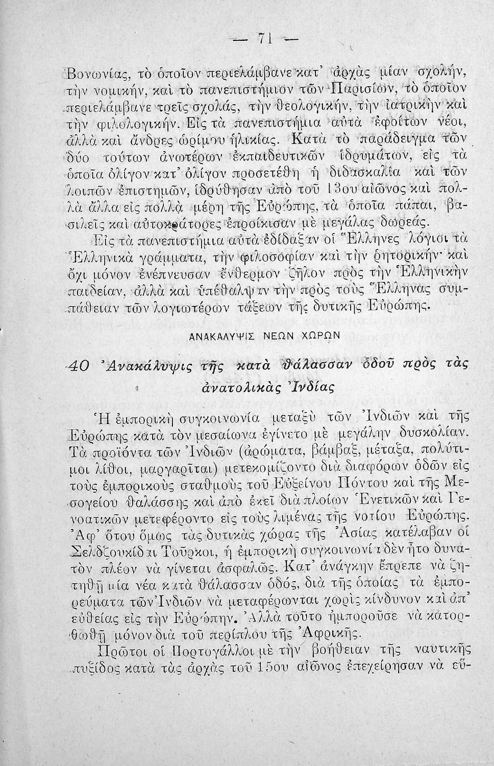 Μαθητικό βοήθημα Ιστορίας Ε΄ Δημοτικού που καλύπτει την περίοδο από την ίδρυση της Ρωμαϊκής Αυτοκρατορίας ως την ανακάλυψη της Αμερικής και τη θρησκευτική μεταρρύθμιση. Το βιβλίο είχε υποβληθεί στο εκπαιδευτικό συμβούλιο για έγκριση αλλά είχε απορριφτεί γιατί δεν ήταν γραμμένο στη Δημοτική.