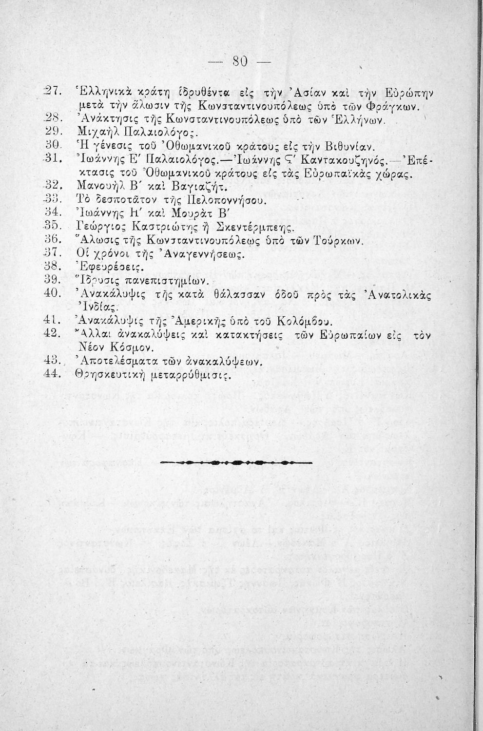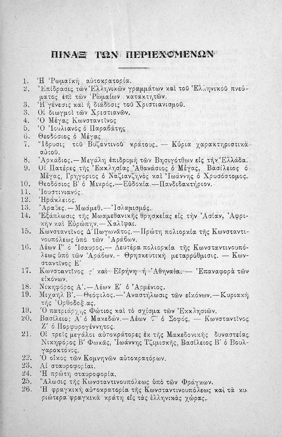 Μαθητικό βοήθημα Ιστορίας Ε΄ Δημοτικού που καλύπτει την περίοδο από την ίδρυση της Ρωμαϊκής Αυτοκρατορίας ως την ανακάλυψη της Αμερικής και τη θρησκευτική μεταρρύθμιση. Το βιβλίο είχε υποβληθεί στο εκπαιδευτικό συμβούλιο για έγκριση αλλά είχε απορριφτεί γιατί δεν ήταν γραμμένο στη Δημοτική.