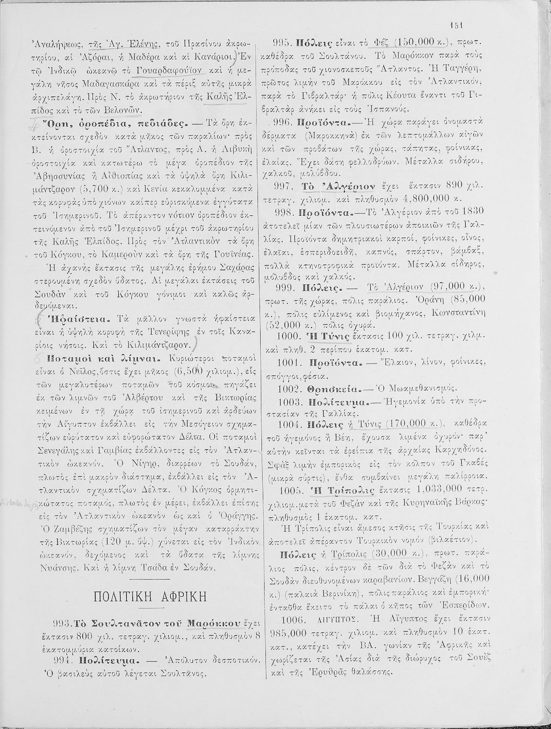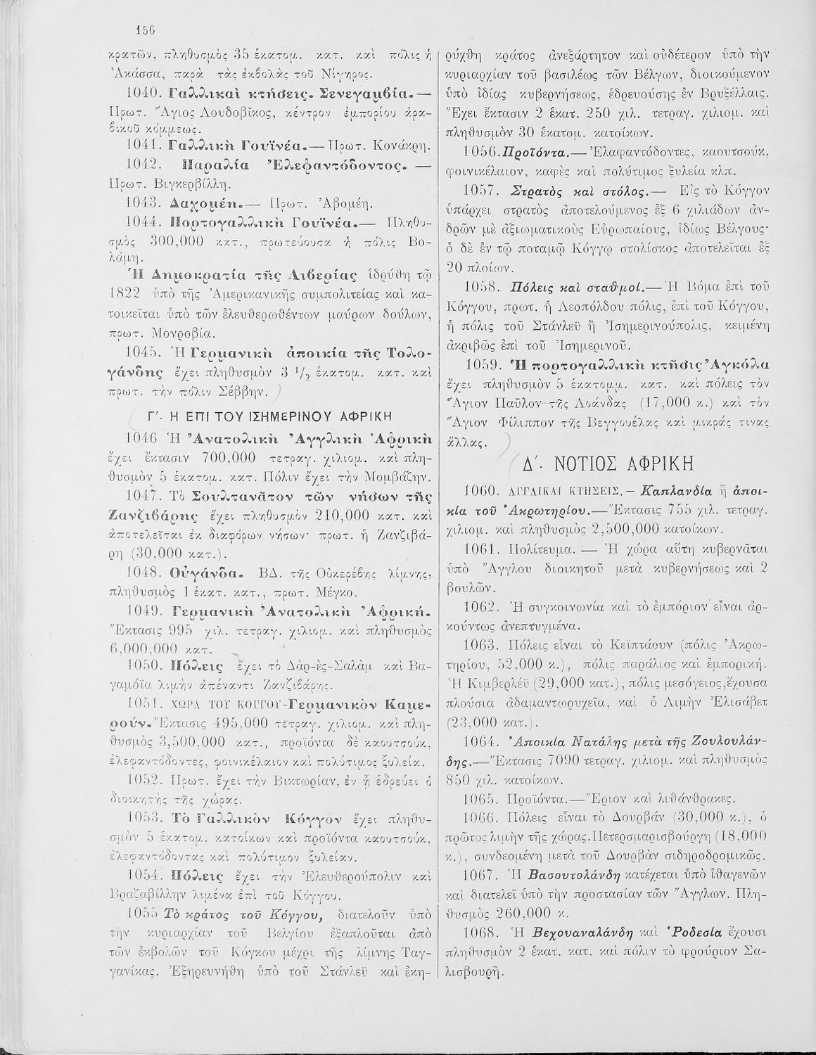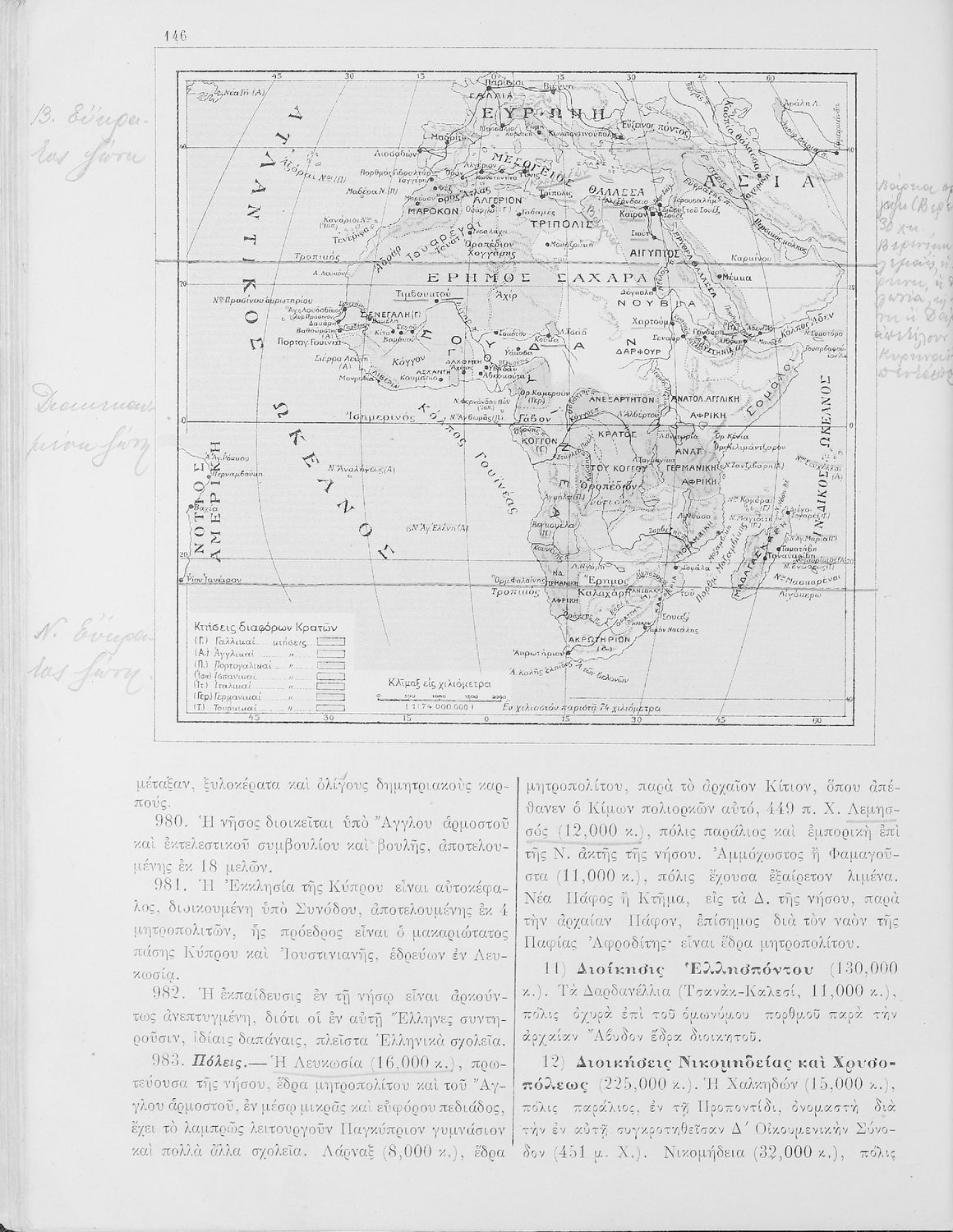Σχολικό εγχειρίδιο Γεωγραφίας για τις Δ΄, Ε΄, ΣΤ΄, Ζ΄ Δημοτικού, Παρθεναγωγείων και Αστικών Σχολείων. Πρόκειται για βιβλίο φυσικής και πολιτικής γεωγραφίας της Ελλάδας και των Ηπείρων. Η Ελλάδα εξετάζεται με βάση τη διοικητική διαίρεση του τότε Βασιλείου της Ελλάδας.
