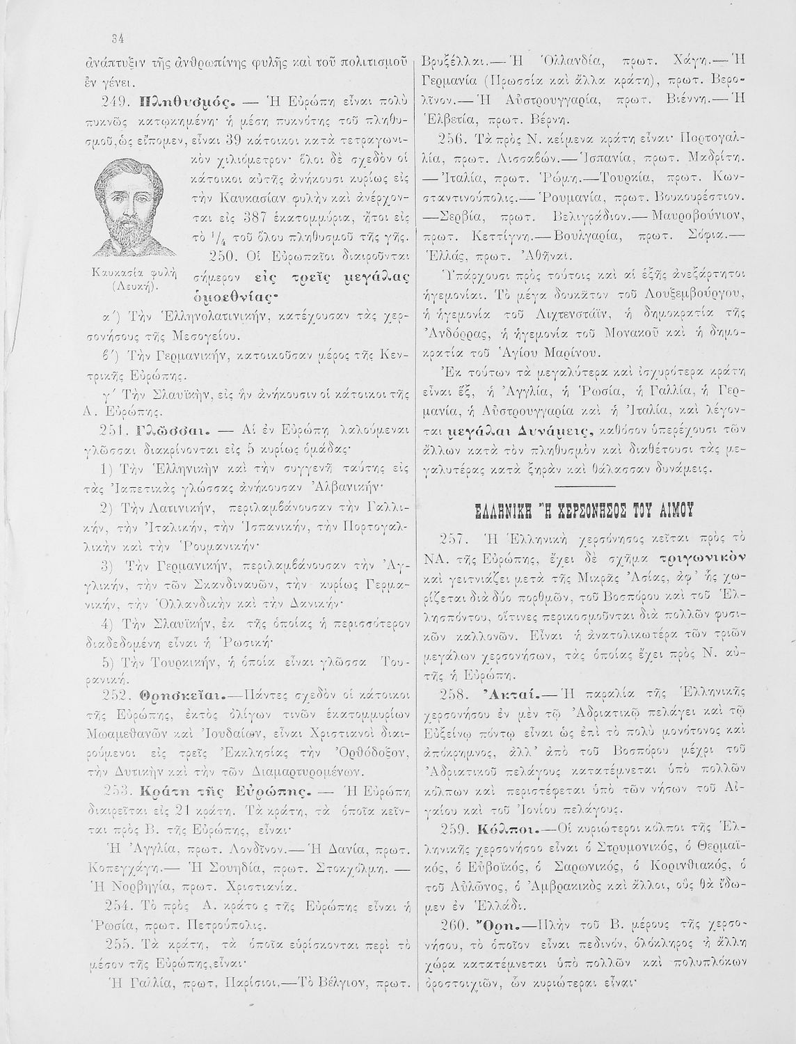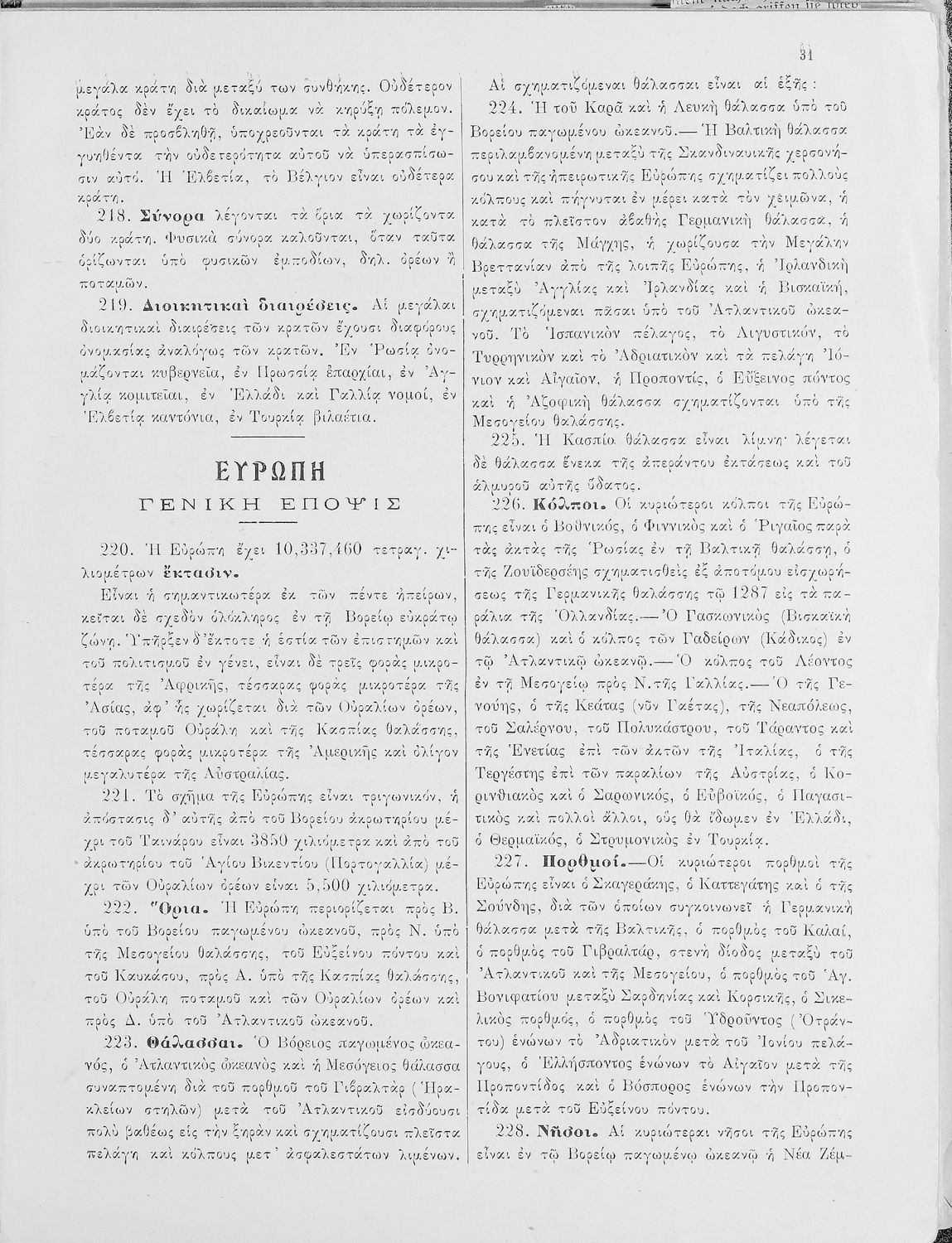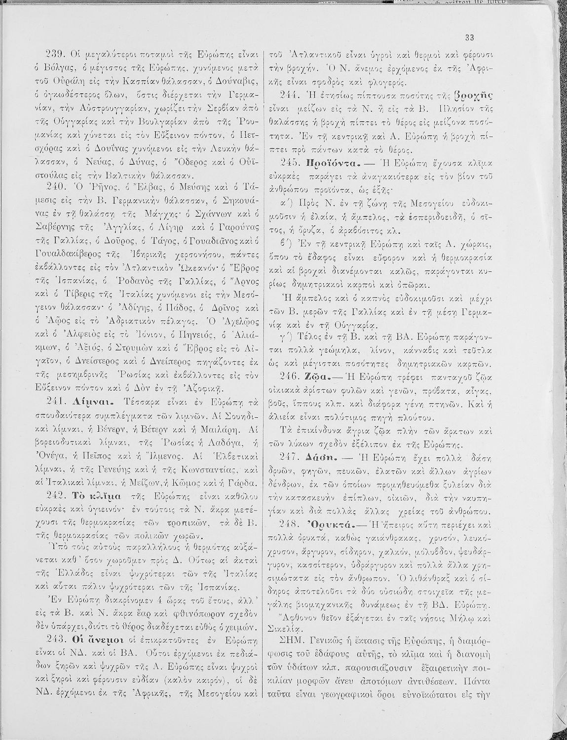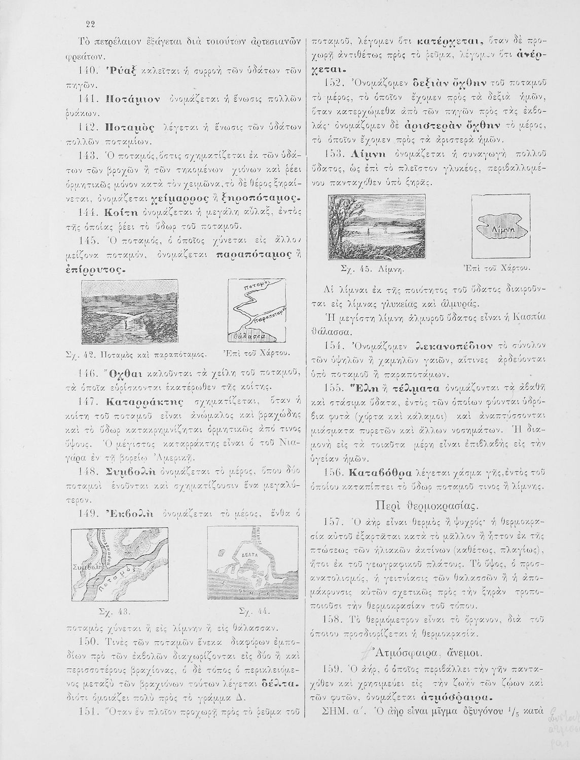 Σχολικό εγχειρίδιο Γεωγραφίας για τις Δ΄, Ε΄, ΣΤ΄, Ζ΄ Δημοτικού, Παρθεναγωγείων και Αστικών Σχολείων. Πρόκειται για βιβλίο φυσικής και πολιτικής γεωγραφίας της Ελλάδας και των Ηπείρων. Η Ελλάδα εξετάζεται με βάση τη διοικητική διαίρεση του τότε Βασιλείου της Ελλάδας.