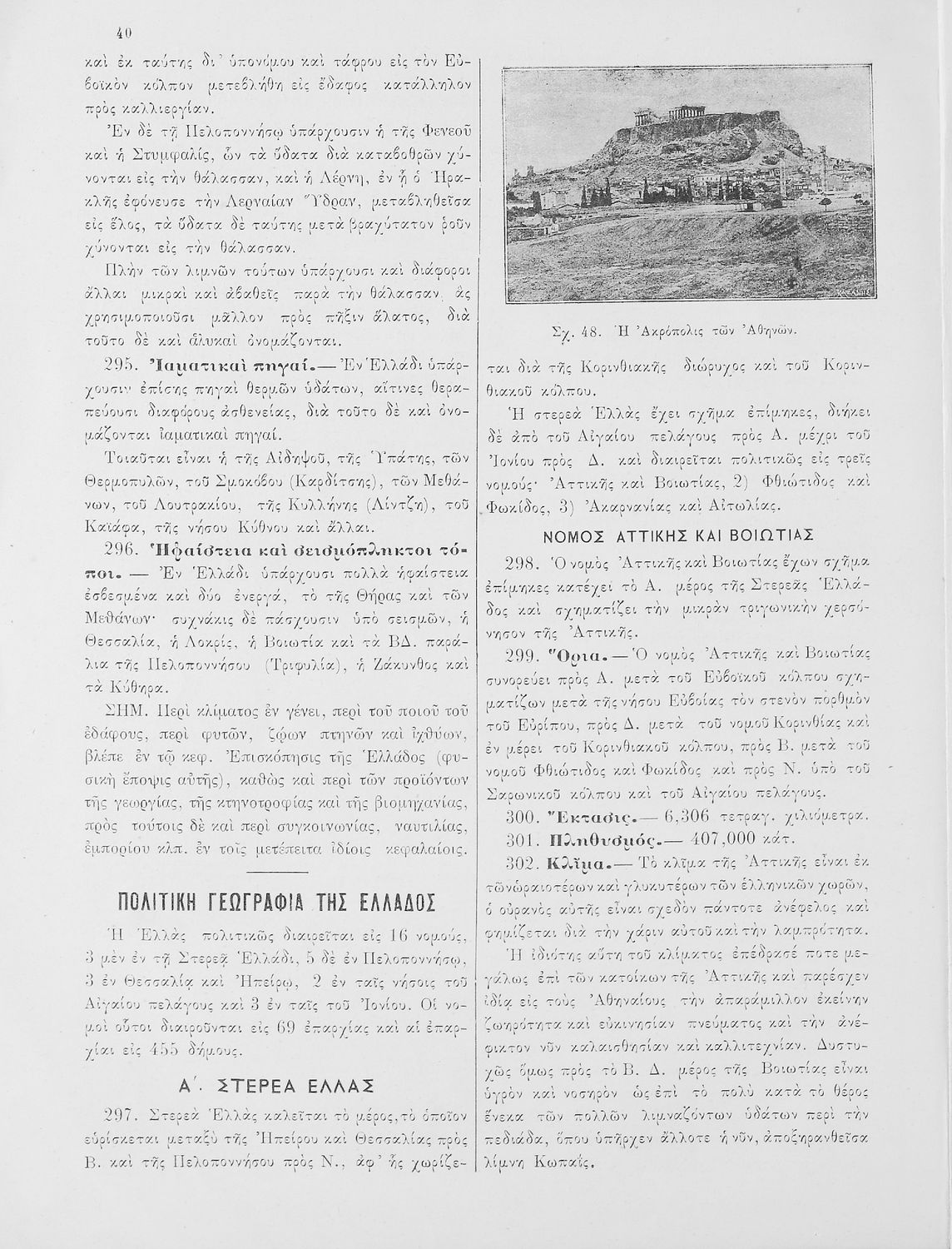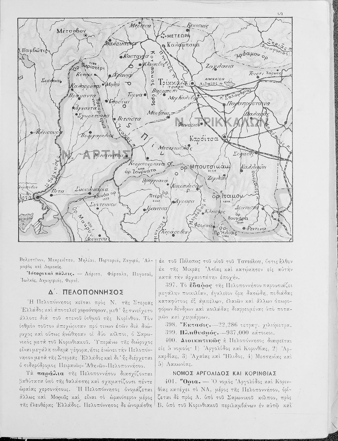 Παρουσίαση περιεχομένου: Σχολικό εγχειρίδιο Γεωγραφίας για τις Δ΄, Ε΄, ΣΤ΄, Ζ΄ Δημοτικού, Παρθεναγωγείων και Αστικών Σχολείων. Πρόκειται για βιβλίο φυσικής και πολιτικής γεωγραφίας της Ελλάδας και των Ηπείρων. Η Ελλάδα εξετάζεται με βάση τη διοικητική διαίρεση του τότε Βασιλείου της Ελλάδας.