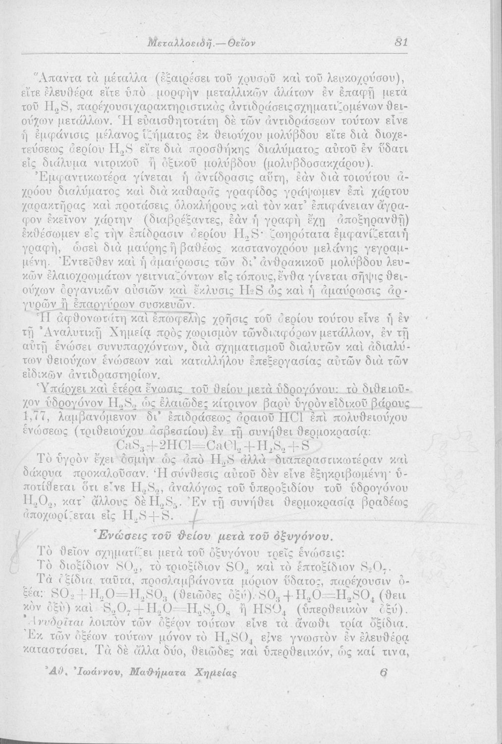 Μαθήματα Χημείας Ανοργάνου και Οργανικής επί τη βάσει των νεωτάτων ειδικών συγγραφών προς χρήσιν των μαθητών των Γυμνασίων