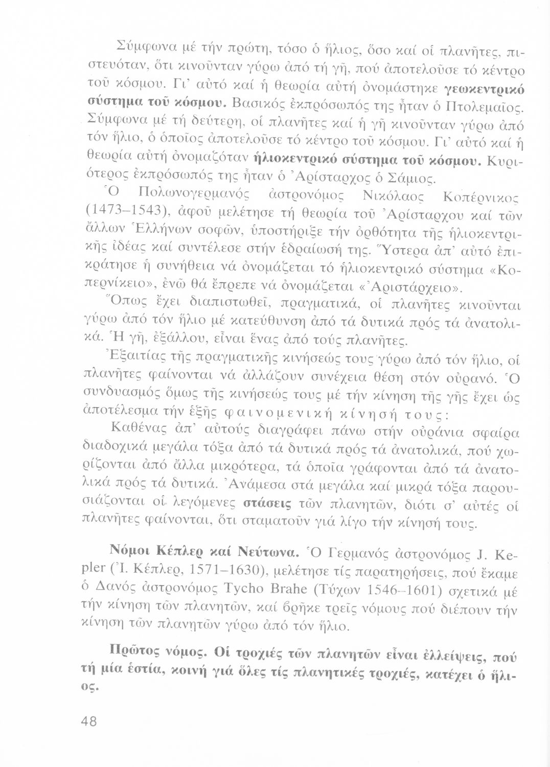 Σχολικό εγχειρίδιο Κοσμογραφίας Γ΄ Λυκείου που εστιάζει στην κίνηση των πλανητών και στον τρόπο υπολογισμού της τροχιάς τους.
