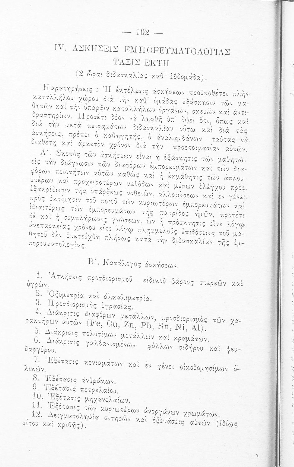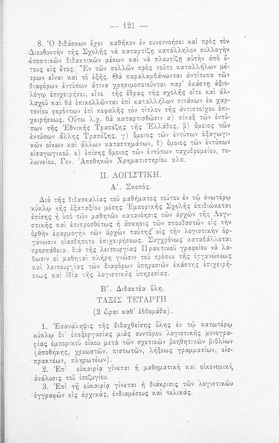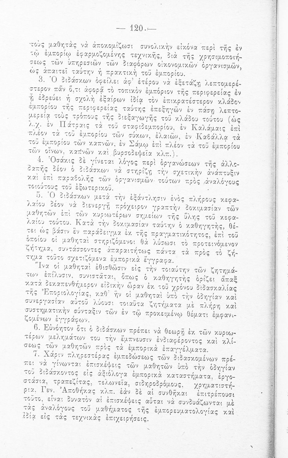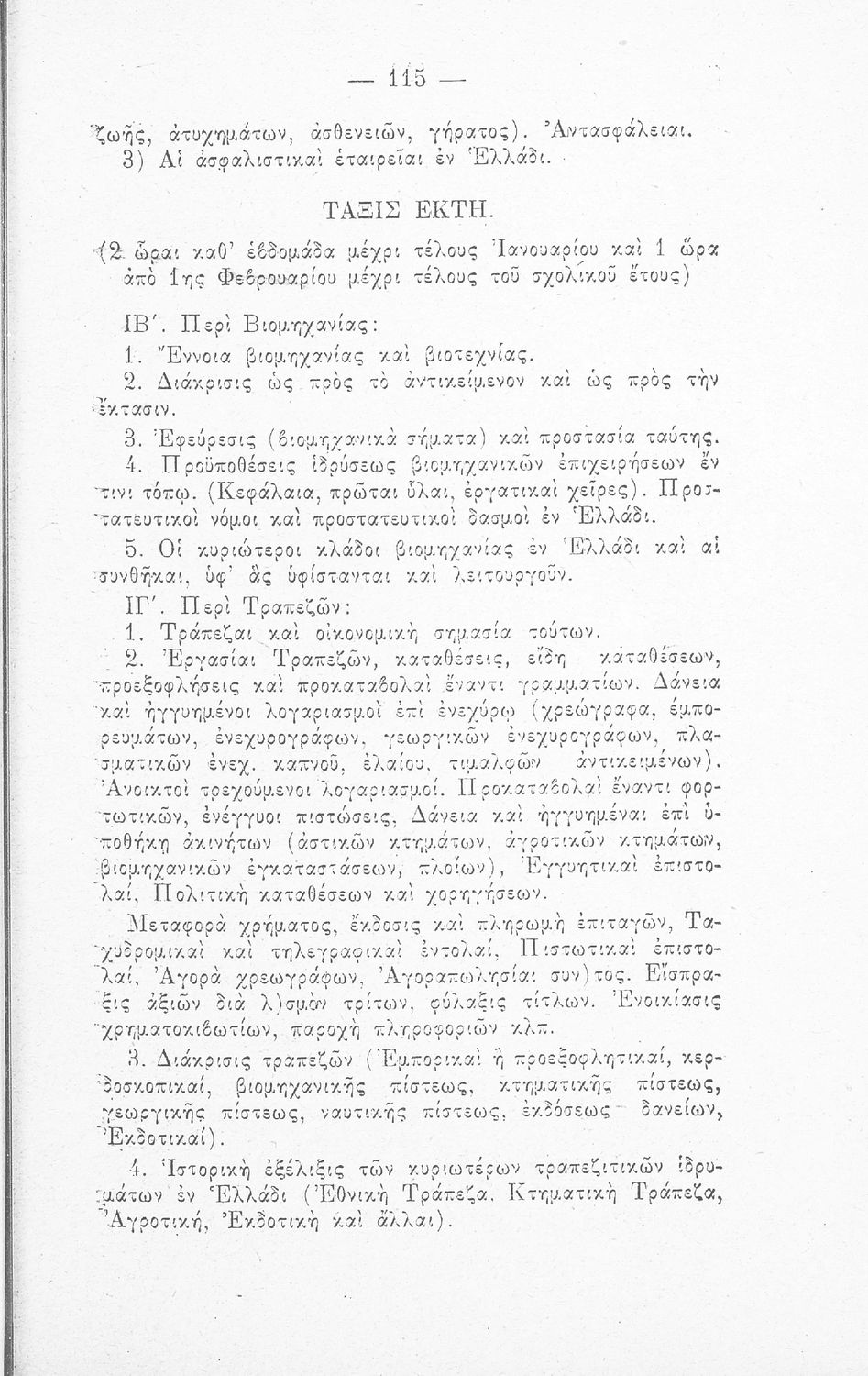 Αναλυτικόν Πρόγραμμα των Διδασκομένων Μαθημάτων εν ταις Μέσαις Εξαταξίοις Εμπορικαίς Σχολαίς.