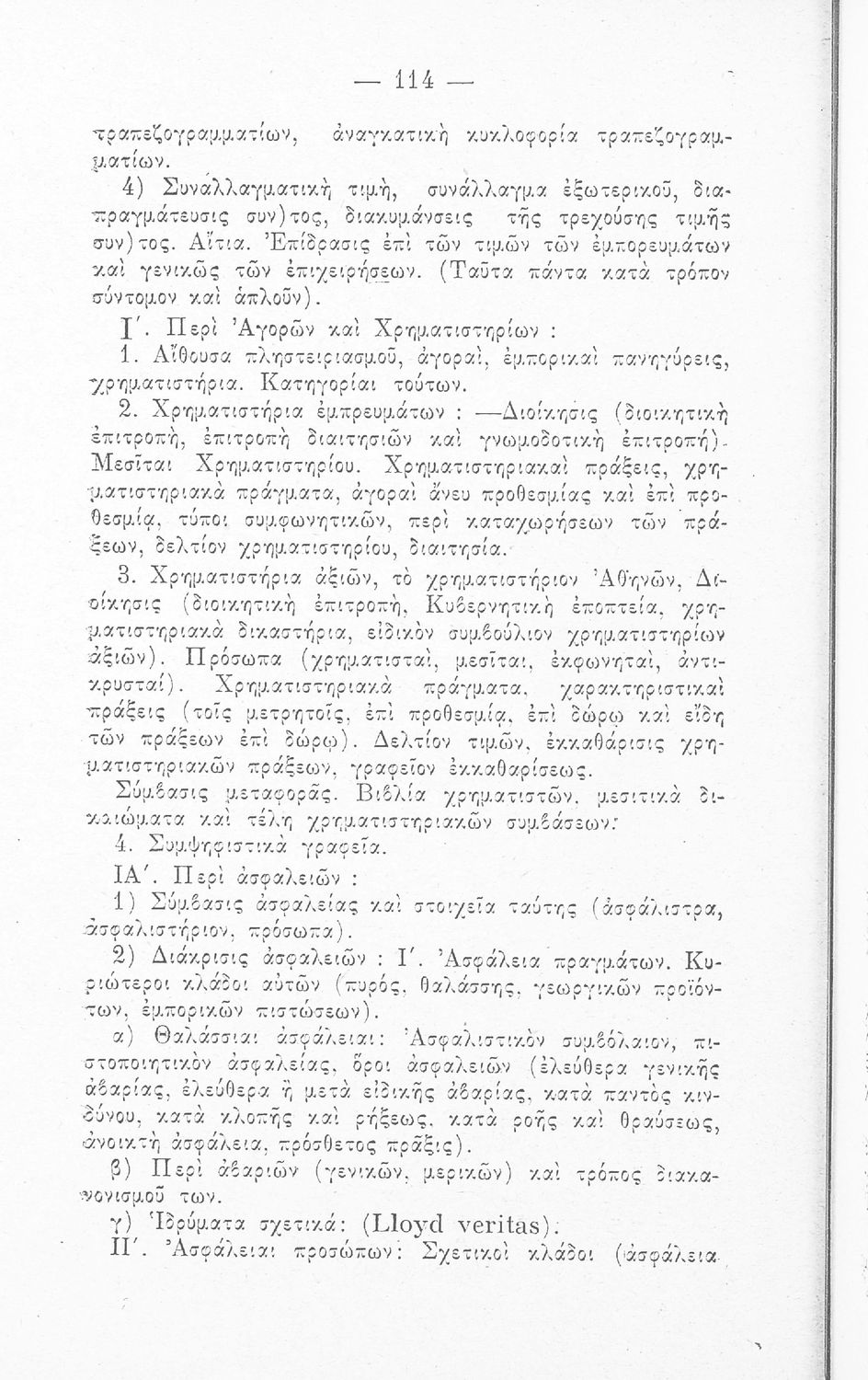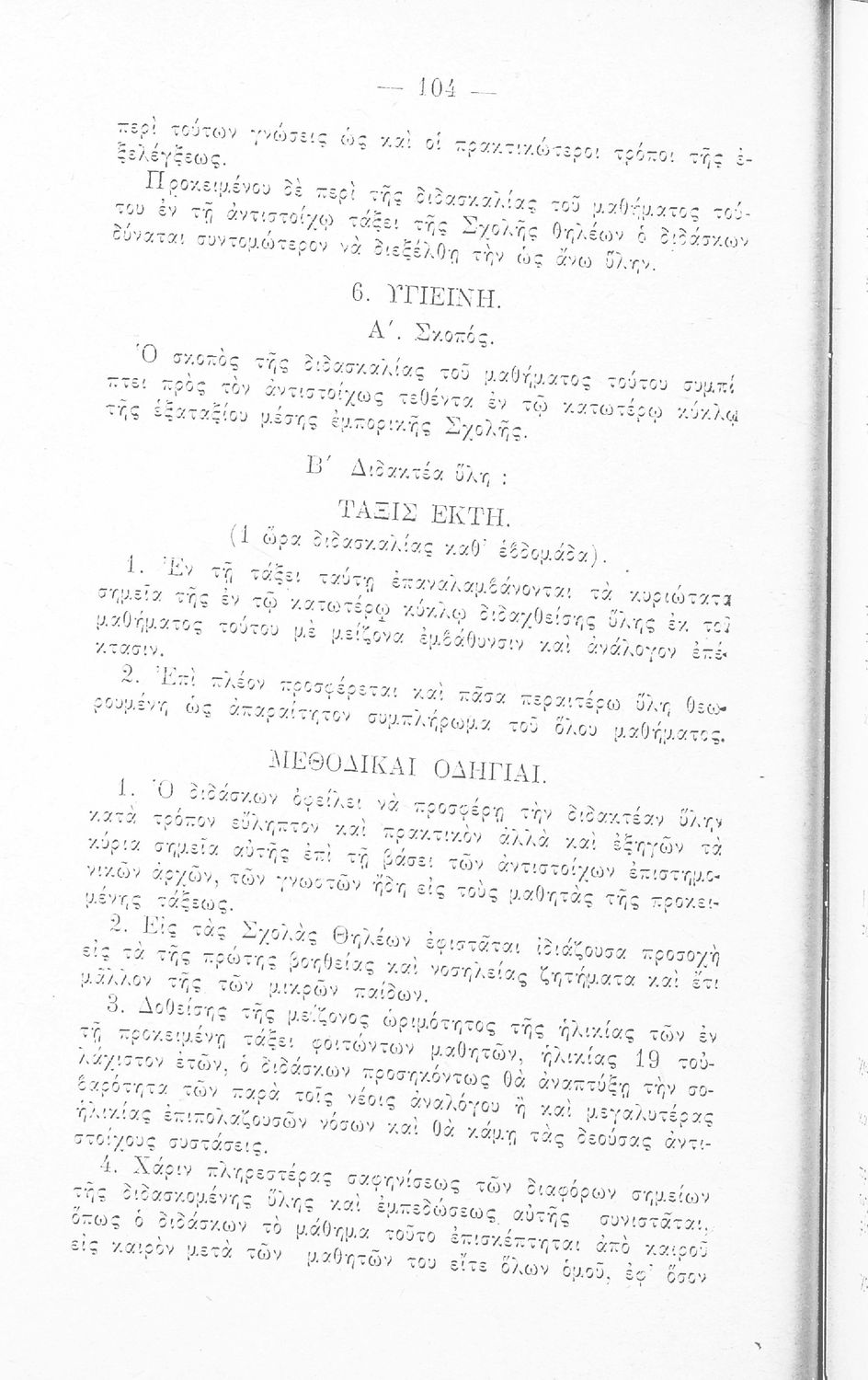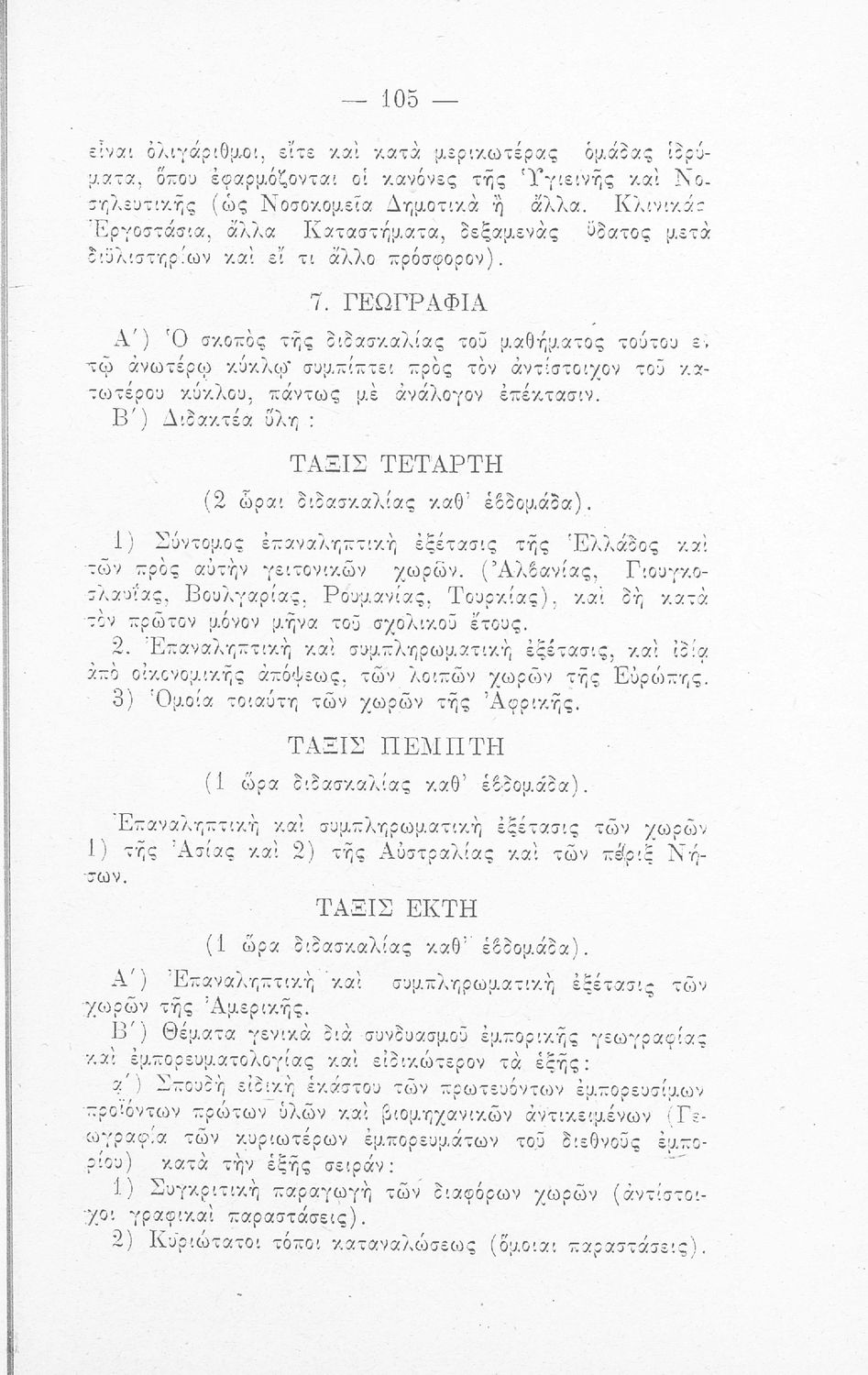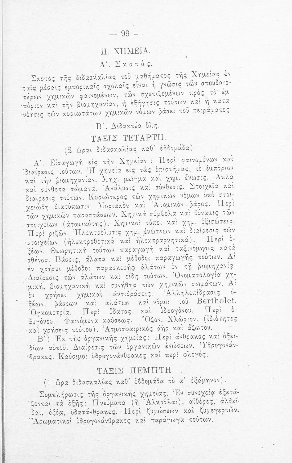 Αναλυτικόν Πρόγραμμα των Διδασκομένων Μαθημάτων εν ταις Μέσαις Εξαταξίοις Εμπορικαίς Σχολαίς.