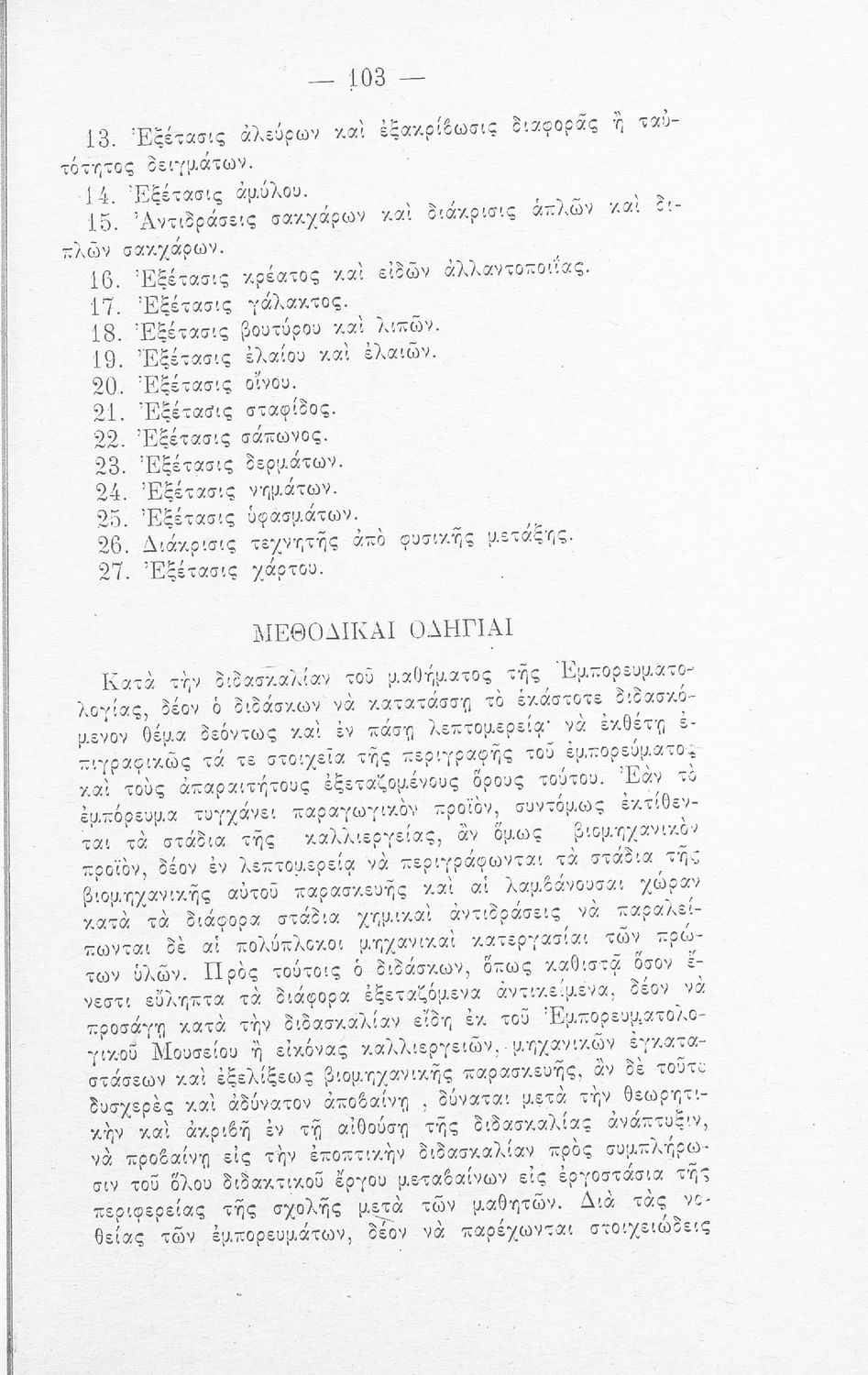 Έκδοση του Υπουργείου Εθνικής Οικονομίας που περιλαμβάνει το αναλυτικό πρόγραμμα των μαθημάτων που διδάσκονταν στις μεσαίες τάξεις των εμπορικών σχολών.