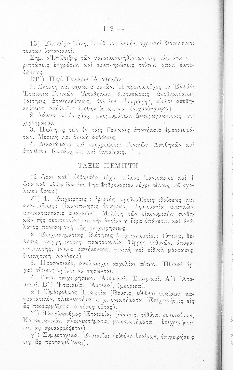 Τίτλος: Αναλυτικόν Πρόγραμμα των Διδασκομένων Μαθημάτων εν ταις Μέσαις Εξαταξίοις Εμπορικαίς Σχολαίς.