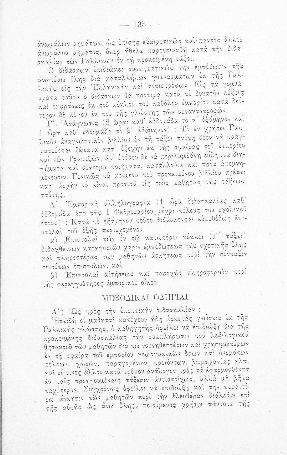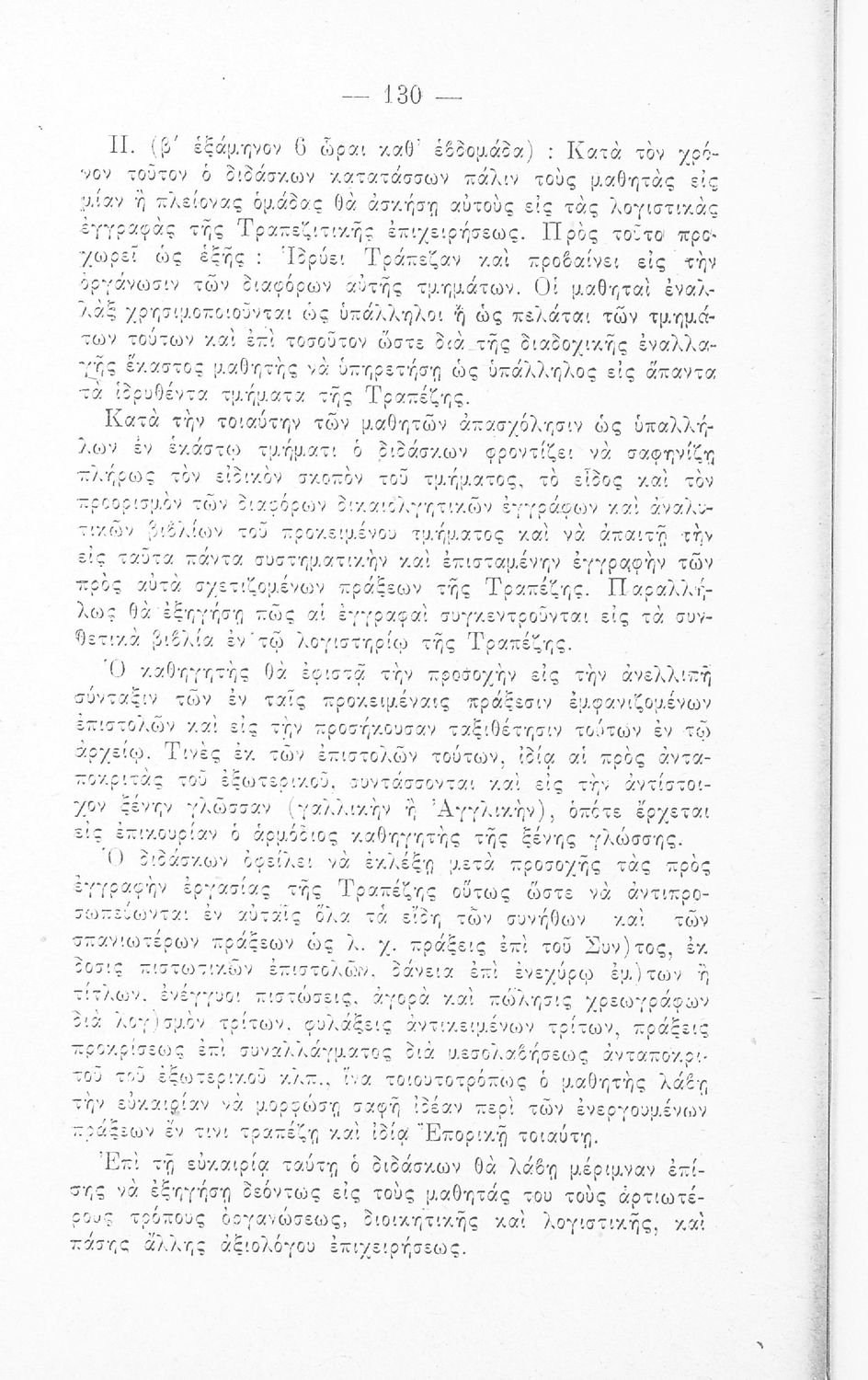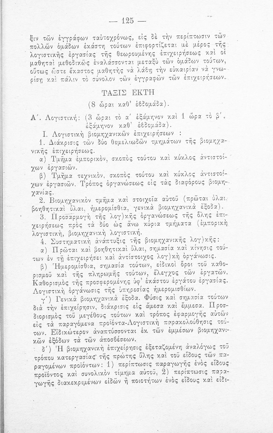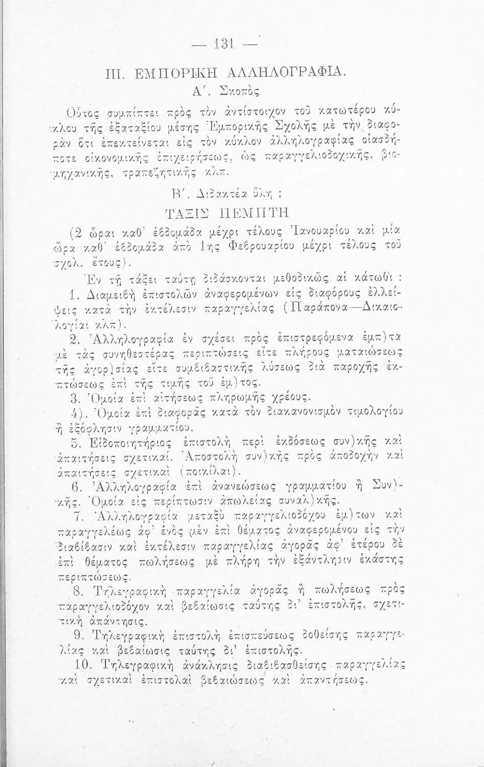 Αναλυτικόν Πρόγραμμα των Διδασκομένων Μαθημάτων εν ταις Μέσαις Εξαταξίοις Εμπορικαίς Σχολαίς.