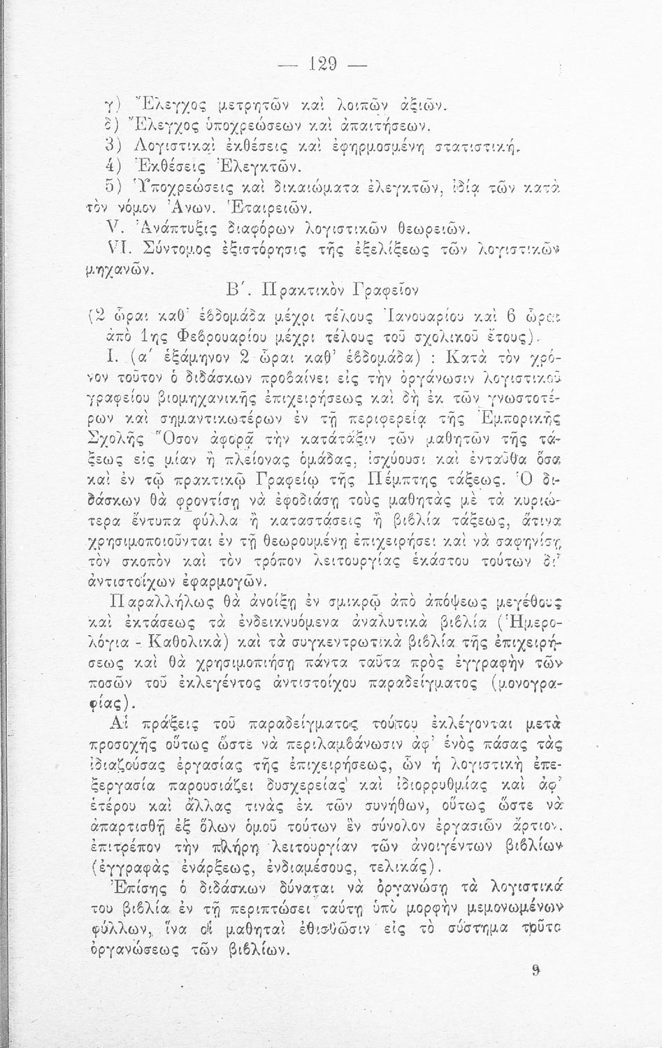 Έκδοση του Υπουργείου Εθνικής Οικονομίας που περιλαμβάνει το αναλυτικό πρόγραμμα των μαθημάτων που διδάσκονταν στις μεσαίες τάξεις των εμπορικών σχολών.