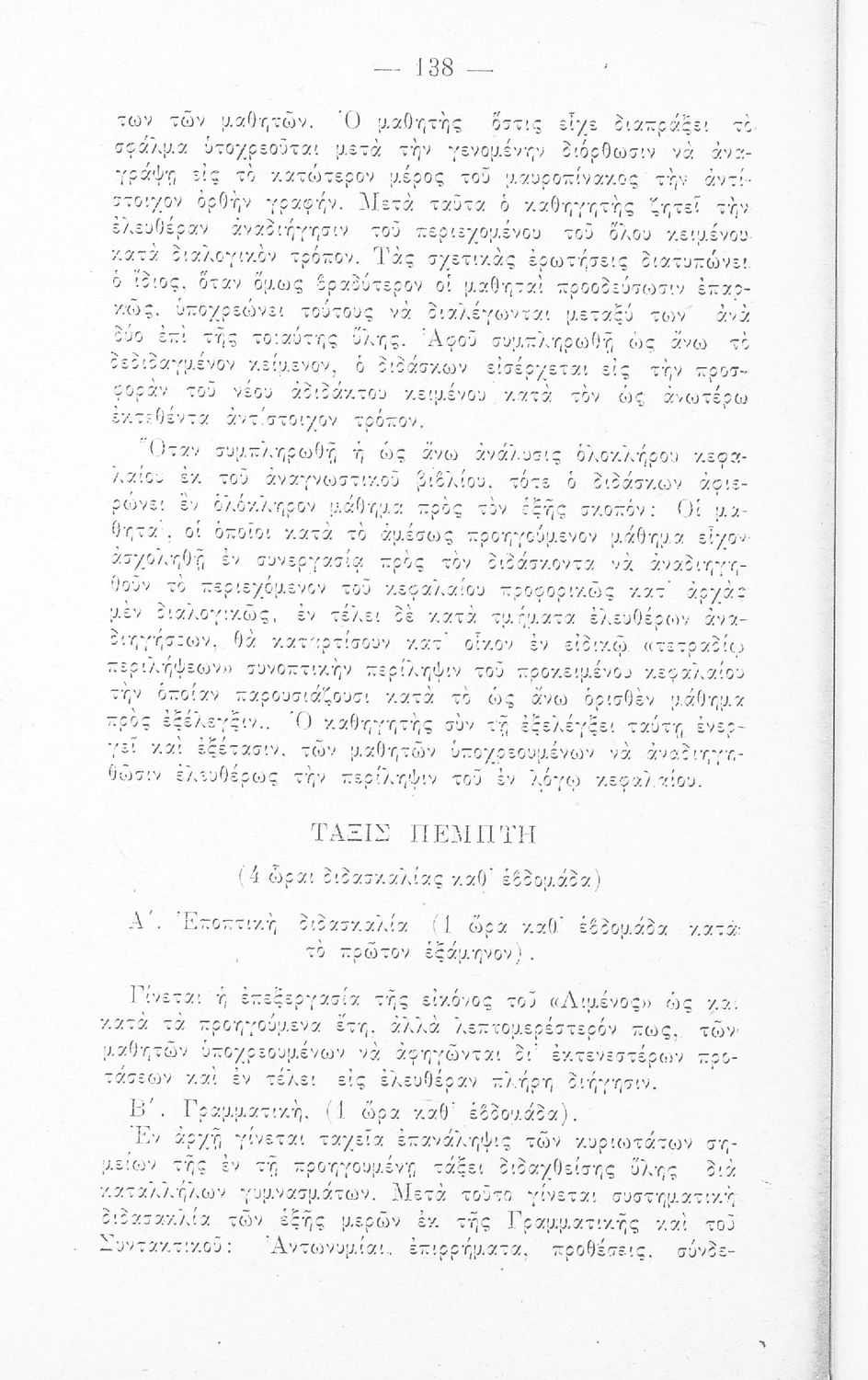 Τίτλος: Αναλυτικόν Πρόγραμμα των Διδασκομένων Μαθημάτων εν ταις Μέσαις Εξαταξίοις Εμπορικαίς Σχολαίς.