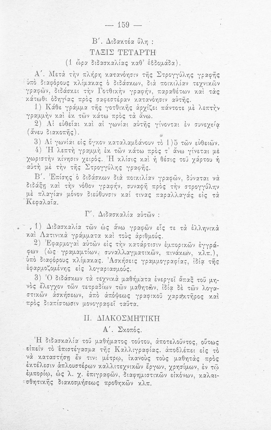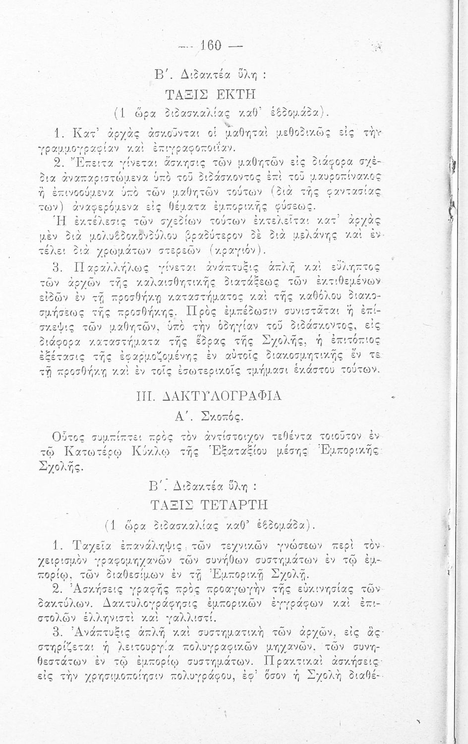 Αναλυτικόν Πρόγραμμα των Διδασκομένων Μαθημάτων εν ταις Μέσαις Εξαταξίοις Εμπορικαίς Σχολαίς.