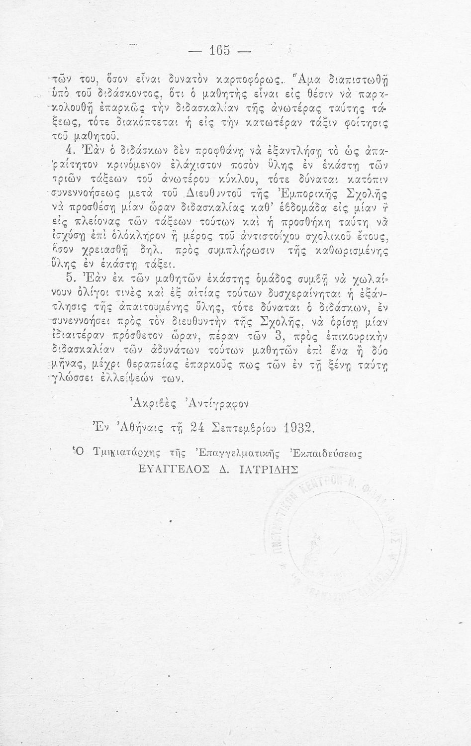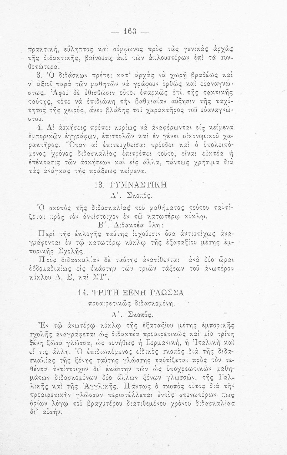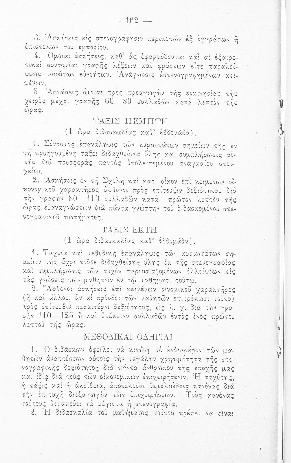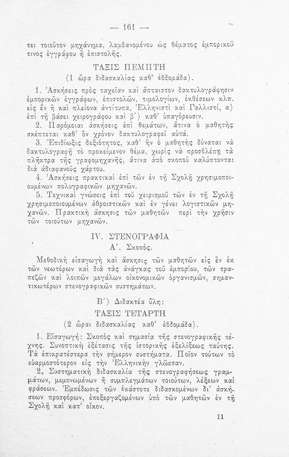 Έκδοση του Υπουργείου Εθνικής Οικονομίας που περιλαμβάνει το αναλυτικό πρόγραμμα των μαθημάτων που διδάσκονταν στις μεσαίες τάξεις των εμπορικών σχολών.
