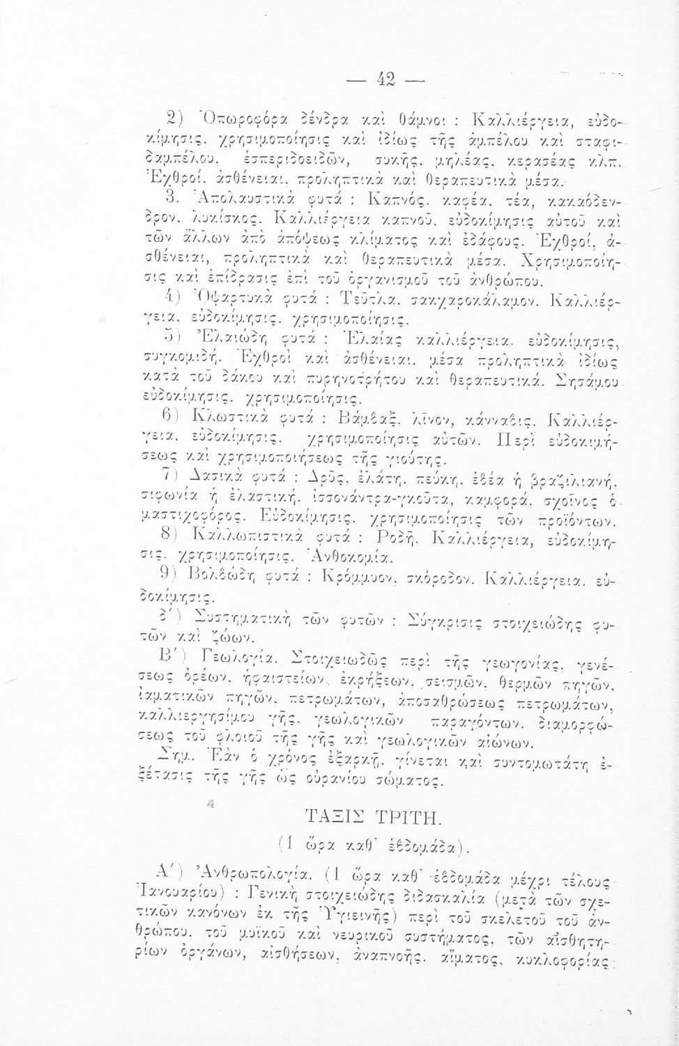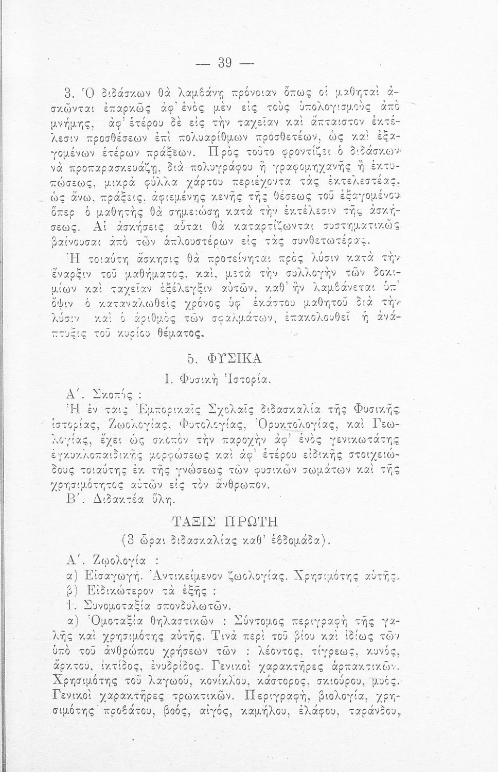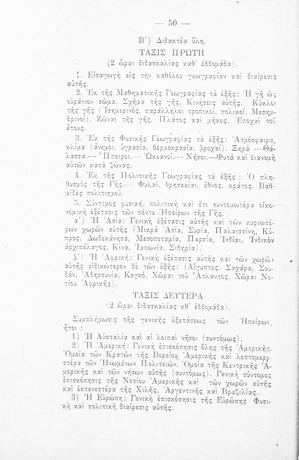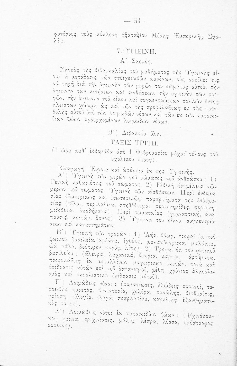 Αναλυτικόν Πρόγραμμα των Διδασκομένων Μαθημάτων εν ταις Μέσαις Εξαταξίοις Εμπορικαίς Σχολαίς.