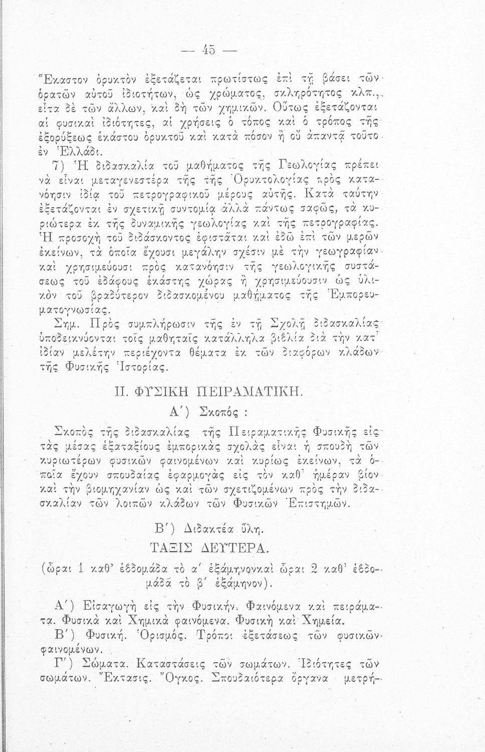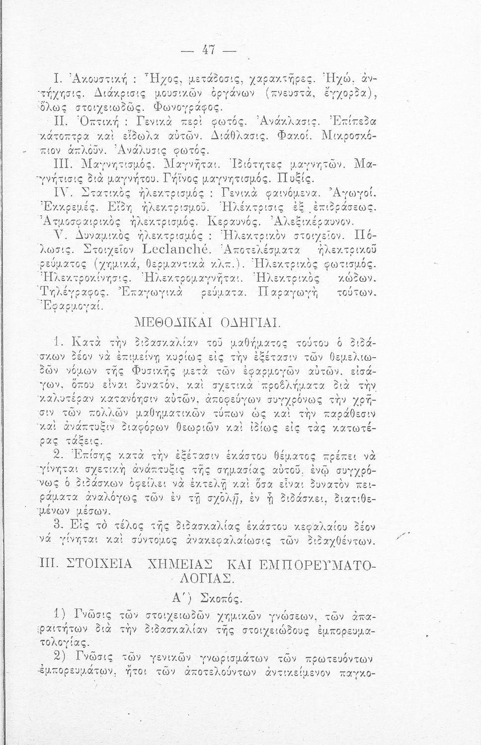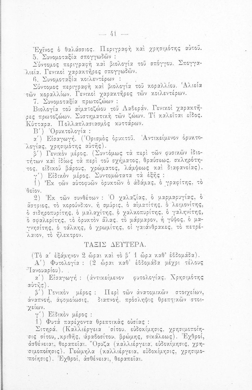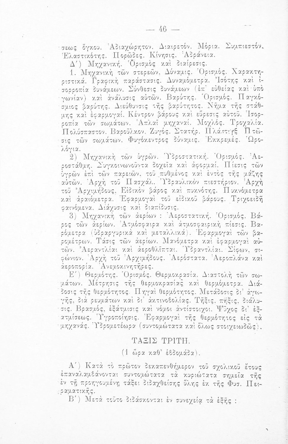 Αναλυτικόν Πρόγραμμα των Διδασκομένων Μαθημάτων εν ταις Μέσαις Εξαταξίοις Εμπορικαίς Σχολαίς.