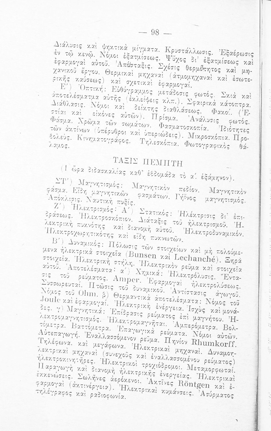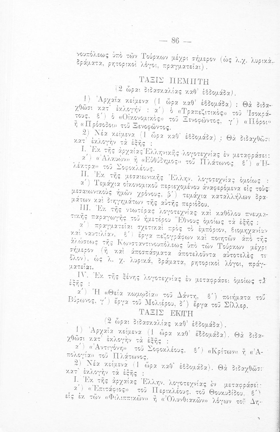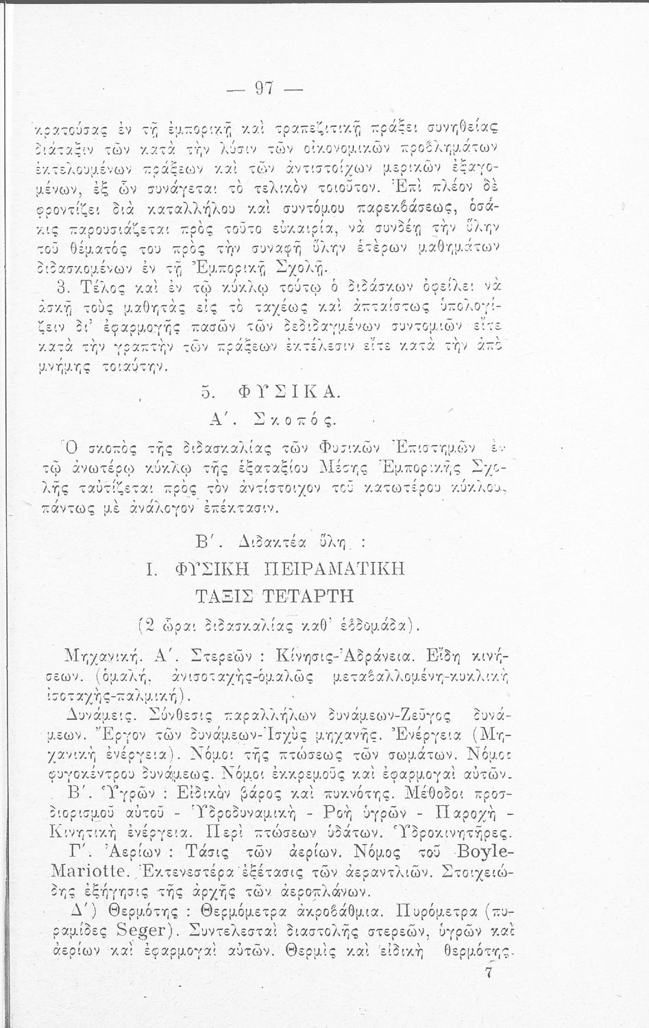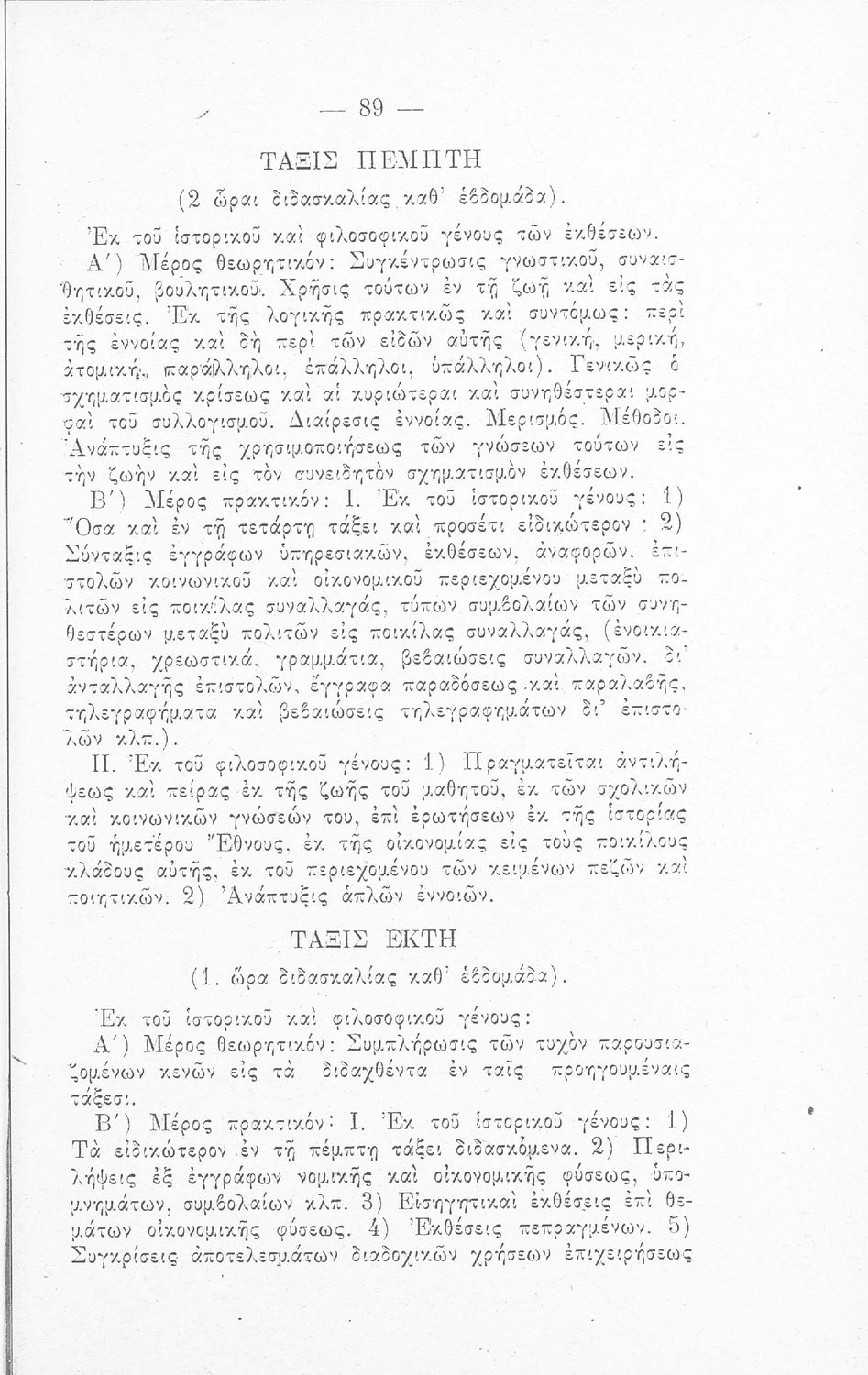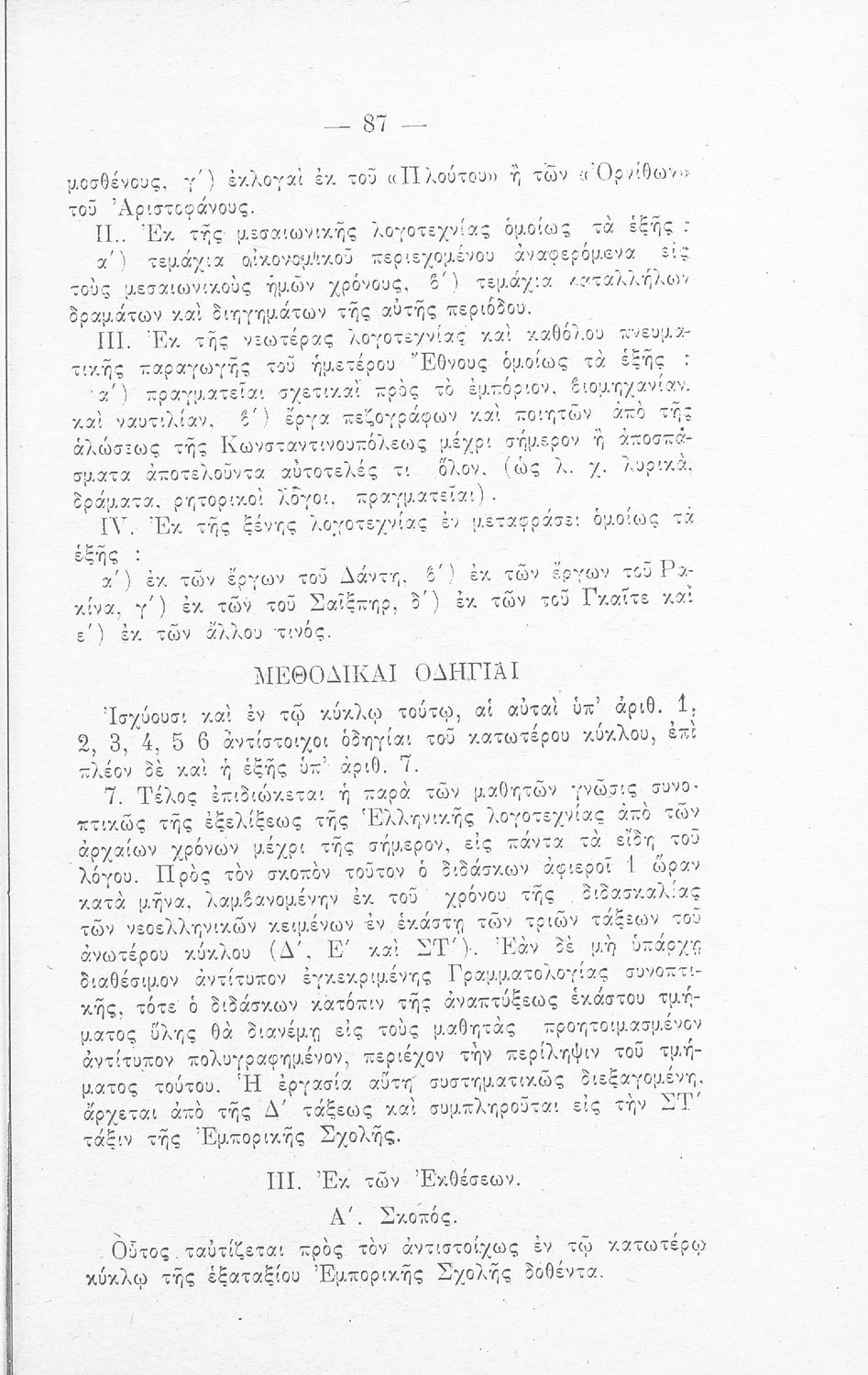 Αναλυτικόν Πρόγραμμα των Διδασκομένων Μαθημάτων εν ταις Μέσαις Εξαταξίοις Εμπορικαίς Σχολαίς.